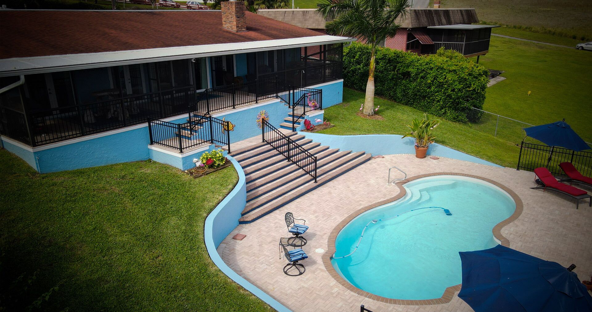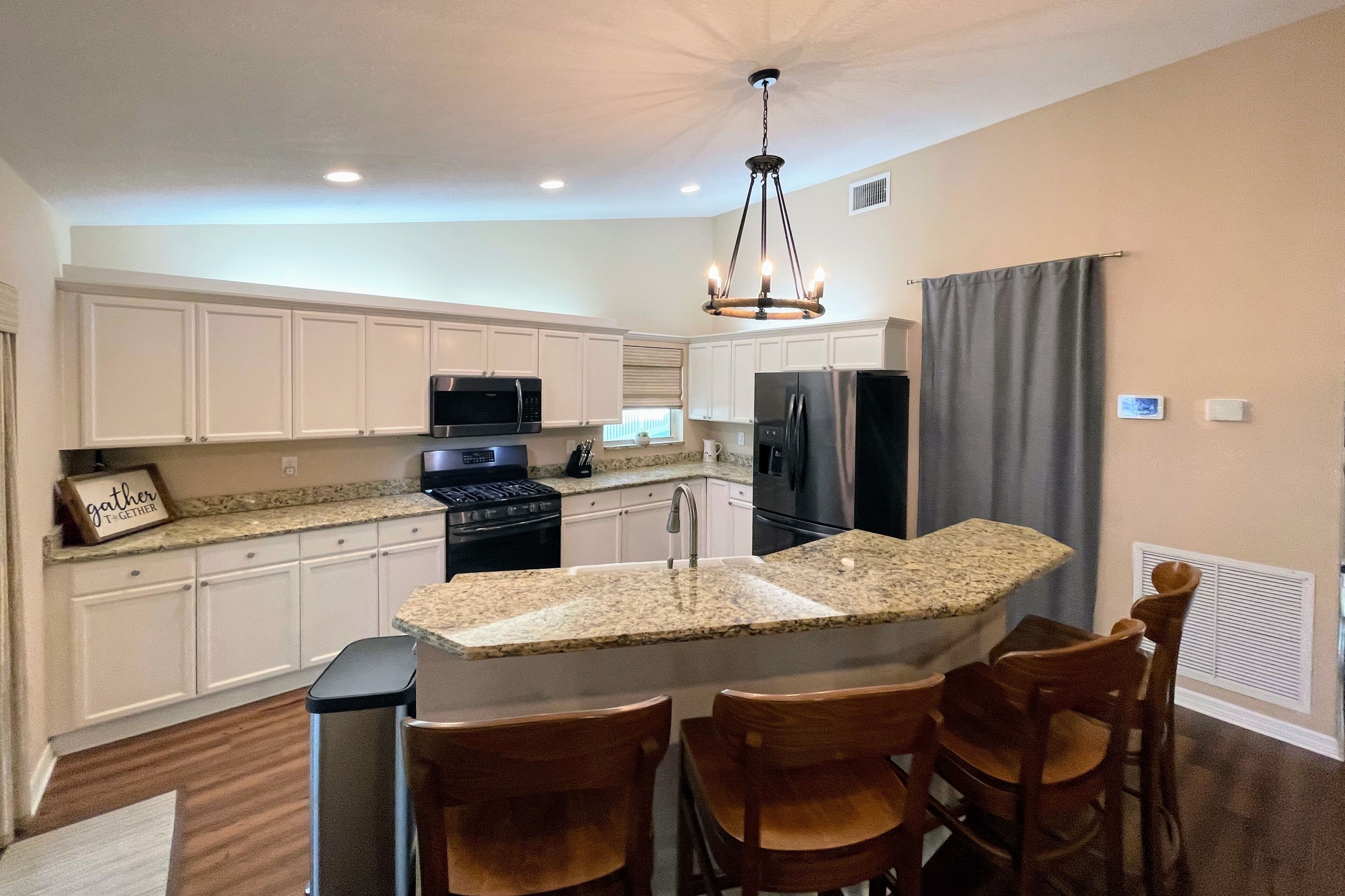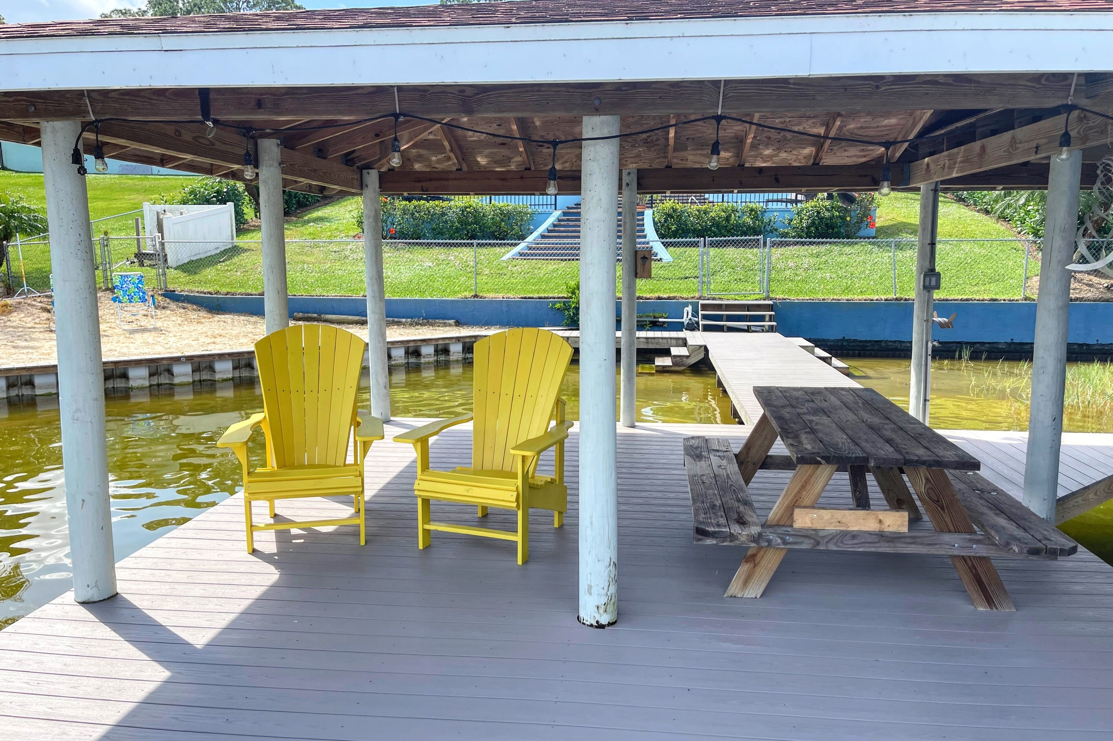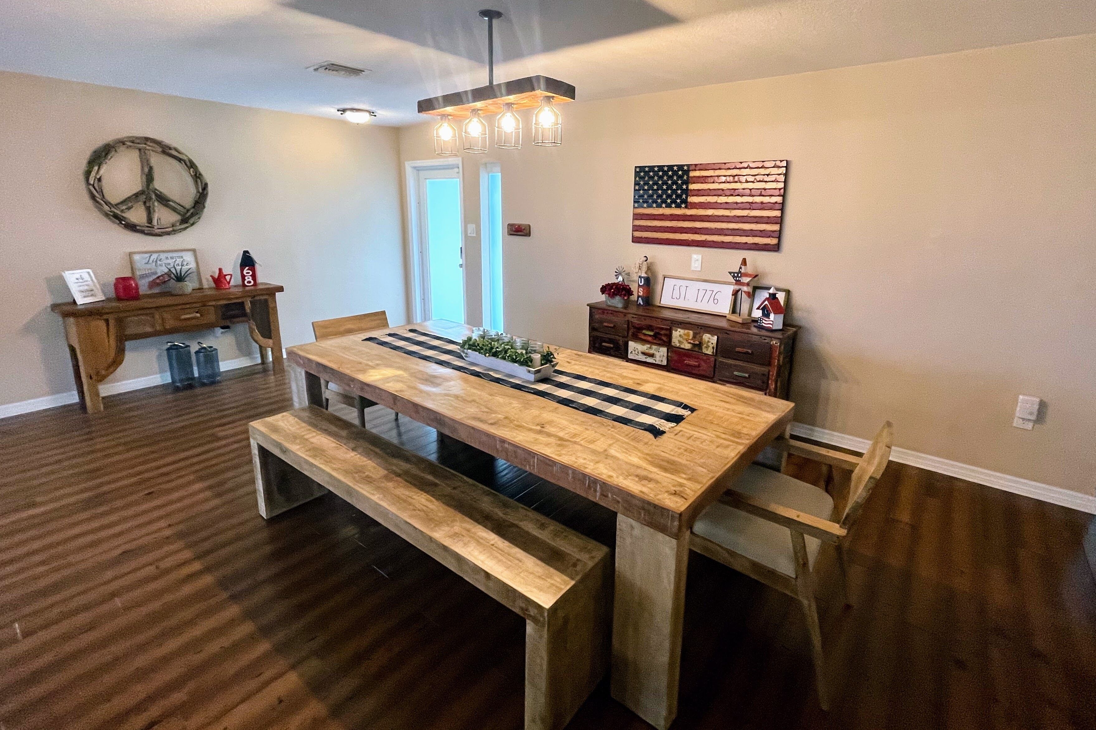 Lake Retreat for10 has Pool-Dock-4 Bedrooms-2 Bath Expansive Lakefront Views This Beautiful Property on Lake Clay is an unbeatable location for outdoor play. Bring your boat or jet-ski for unlimited memories with family & friends! There are Kayaks available onsite.Pet friendly for dogs under 30 lbsOUTDOOR SPACE:- Private pool- Dock (fishing allowed)- 3 screened porches - 2 Outdoor dining areas- Lounge chairs- Large Fenced yard- Gas grill- High speed internet LIVING AREA: Panoramic Views of Pool and Lake- Comfortable seating in living room with a super size TV- Large dining room table for 12 guests- Large open plan living room- Multiple Ceiling Fans KITCHEN: - Panoramic views of the pool and Lake Clay that opens out the the patio- Granite counter tops and deluxe gas stainless steel appliances.- Fully equipped for cooking and dining.- Also includes a Keurig coffee maker, toaster, blender, cooking basics & spices BEDROOMS: (4)- The Principle bedroom opens to the Patio, with a king bed and a connecting bathroom with a deluxe steam shower, and streaming TV.- 2nd Bedroom has a Queen size bed, streaming TV and queen size futon.- 3rd Bedroom has 3 twin beds and a streaming TV.- 4th bedroom has a queen-size bed and 2 roll-away beds.- Pac and Play crib with a bassinet and high chair are provided.- All linens are provided.BATHROOMS: (2)-All bathrooms are provided with a starter set of toiletries (TP, soap, and shampoo) and plush towels. A hairdryer is also available. PATIO: Screened in and furnished and opens out from every room, dining table with Weber Grill and piped in natural gas.GUEST ACCESS: -This fully fenced property is entirely yours for your private enjoyment.INTERNET: Highspeed and wireless throughout. CLEANING:- All of our properties are professionally cleaned and sanitized up to CDC guidelines and inspected before each stay to ensure your safety.- Starter dishwasher pods are provided- Washer and dryer with a starter set of laundry pods provided. LOGISTICS:- Check-in: 4:00 PM.- Check-out: 11:00 AM.- An early check-in or late check-out time may be available, please inquire about availability and pricing. TVs: All 4 of our TVs are Smart with access for you to log into your favorite streaming channels. MAINTENANCE SCHEDULE: Weekly Landscaping service Weekly Pool cleaning services POOL: Please note there is no lifeguard on duty and we ask that all guests enjoy the pool responsibly. The property owner is not liable for any pool-related accidents, drowning, or bodily harm/personal injuries. No diving is permitted. No glass is permitted in or near the pool or hot tub, the kitchen is supplied with plastic cups. GARBAGE: We ask that you please put out any used garbage bins in the front of the driveway Monday night and Thursday night before collection on Garbage Removal days, Tuesday and Friday mornings. Please bring the bins back to the side of the house when the trash has been picked up. PARTIES & EVENTS: We do not allow parties, receptions, or events. This is our most important rule that can result in the termination of your reservation along with additional fees. If you have any questions regarding entertaining on the property please contact us. ALL OUTDOOR NOISE must end by 10 PM- no Exceptions. PARKING: The driveway accommodates 5- 6 cars. Please refrain from parking on the street or the lawn PETS: Pets are permitted Government-issued photo identification is required before check-in. PERSONAL BELONGINGS: ValGal isn’t responsible for any package delivery or personal belongings left at the property after checkout. ADDITIONAL DETAILS: If you have any specific requests feel free to ask us, while we do not guarantee it, we will do our best to accommodate you. Some special requests may incur additional charges. Please note, that by booking this property, you are agreeing to our rental terms and conditions.