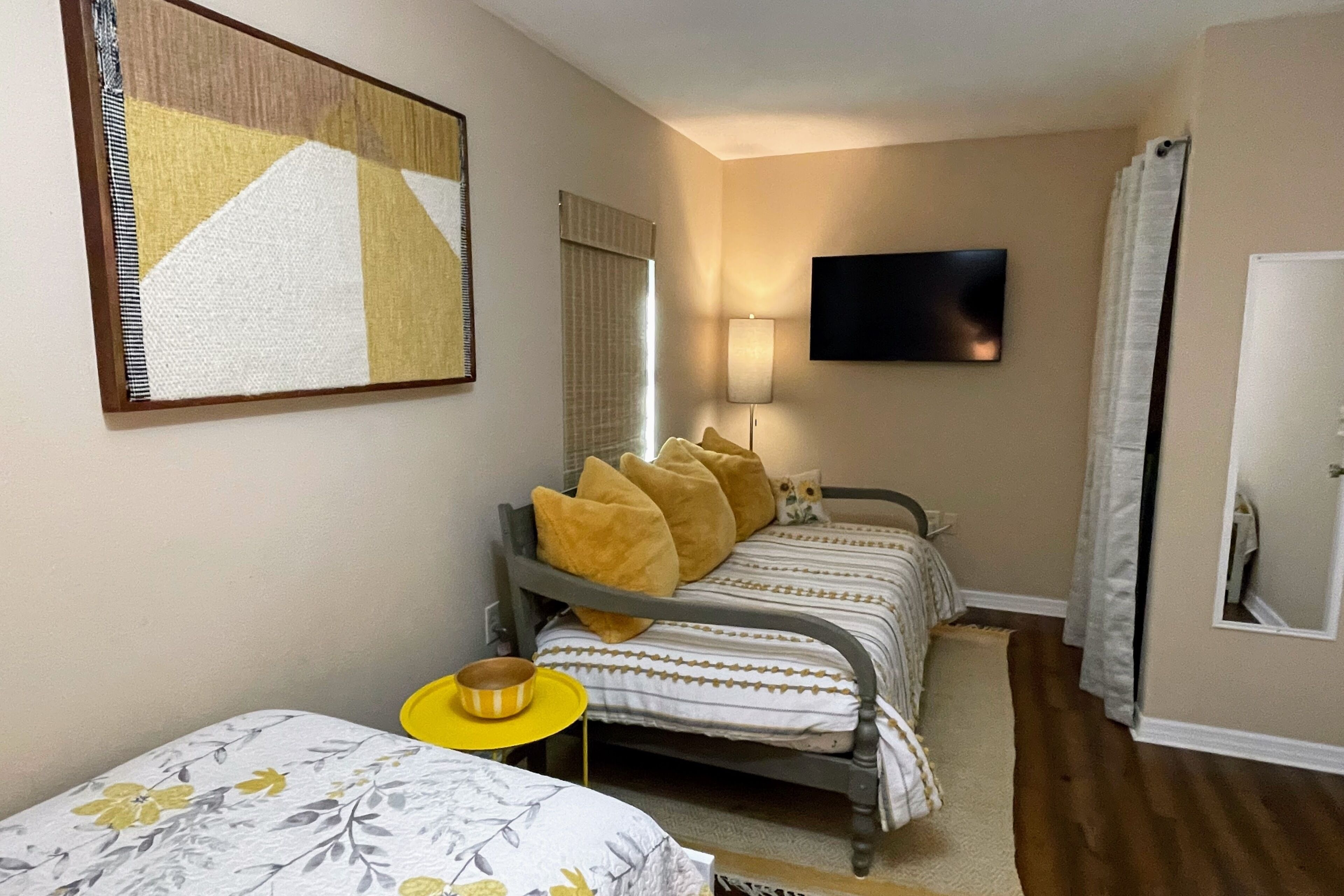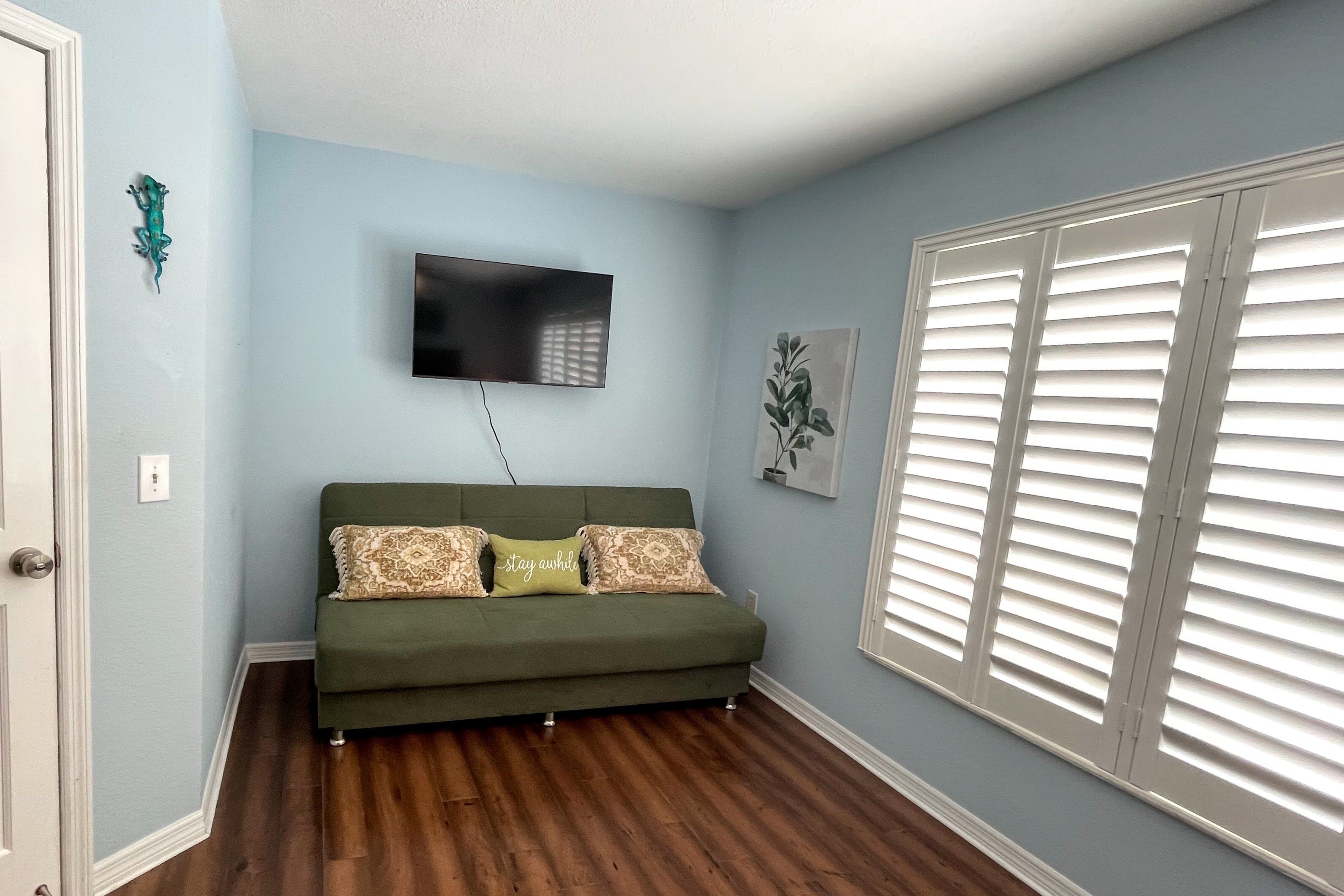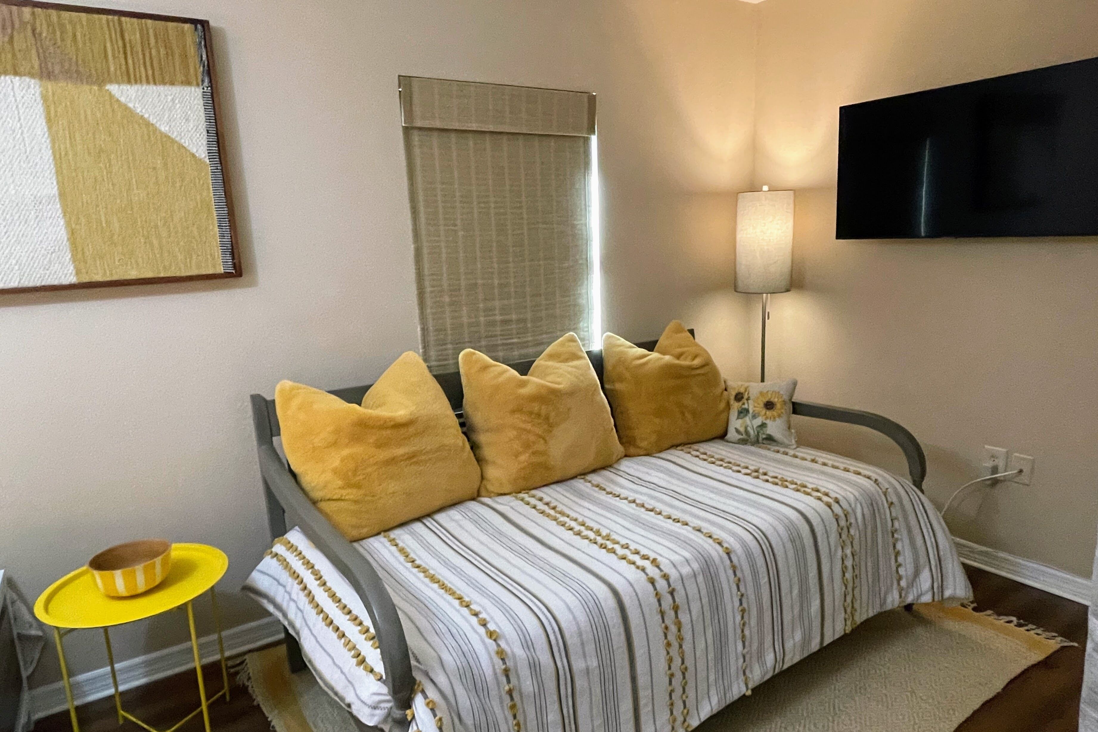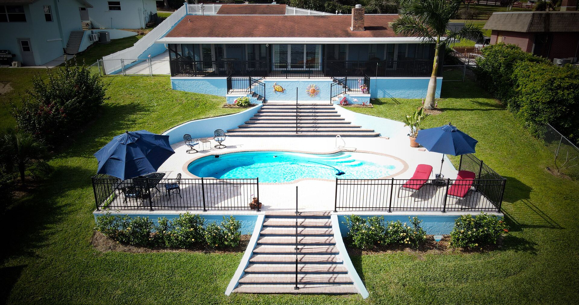 Lake Retreat for10 has Pool-Dock-4 Bedrooms-2 Bath Expansive Lakefront Views This Beautiful Property on Lake Clay is an unbeatable location for outdoor play. Bring your boat or jet-ski for unlimited memories with family & friends! There are Kayaks available onsite.Pet friendly for dogs under 30 lbsOUTDOOR SPACE:- Private pool- Dock (fishing allowed)- 3 screened porches - 2 Outdoor dining areas- Lounge chairs- Large Fenced yard- Gas grill- High speed internet LIVING AREA: Panoramic Views of Pool and Lake- Comfortable seating in living room with a super size TV- Large dining room table for 12 guests- Large open plan living room- Multiple Ceiling Fans KITCHEN: - Panoramic views of the pool and Lake Clay that opens out the the patio- Granite counter tops and deluxe gas stainless steel appliances.- Fully equipped for cooking and dining.- Also includes a Keurig coffee maker, toaster, blender, cooking basics & spices BEDROOMS: (4)- The Principle bedroom opens to the Patio, with a king bed and a connecting bathroom with a deluxe steam shower, and streaming TV.- 2nd Bedroom has a Queen size bed, streaming TV and queen size futon.- 3rd Bedroom has 3 twin beds and a streaming TV.- 4th bedroom has a queen-size bed and 2 roll-away beds.- Pac and Play crib with a bassinet and high chair are provided.- All linens are provided.BATHROOMS: (2)-All bathrooms are provided with a starter set of toiletries (TP, soap, and shampoo) and plush towels. A hairdryer is also available. PATIO: Screened in and furnished and opens out from every room, dining table with Weber Grill and piped in natural gas.GUEST ACCESS: -This fully fenced property is entirely yours for your private enjoyment.INTERNET: Highspeed and wireless throughout. CLEANING:- All of our properties are professionally cleaned and sanitized up to CDC guidelines and inspected before each stay to ensure your safety.- Starter dishwasher pods are provided- Washer and dryer with a starter set of laundry pods provided. LOGISTICS:- Check-in: 4:00 PM.- Check-out: 11:00 AM.- An early check-in or late check-out time may be available, please inquire about availability and pricing. TVs: All 4 of our TVs are Smart with access for you to log into your favorite streaming channels. MAINTENANCE SCHEDULE: Weekly Landscaping service Weekly Pool cleaning services POOL: Please note there is no lifeguard on duty and we ask that all guests enjoy the pool responsibly. The property owner is not liable for any pool-related accidents, drowning, or bodily harm/personal injuries. No diving is permitted. No glass is permitted in or near the pool or hot tub, the kitchen is supplied with plastic cups. GARBAGE: We ask that you please put out any used garbage bins in the front of the driveway Monday night and Thursday night before collection on Garbage Removal days, Tuesday and Friday mornings. Please bring the bins back to the side of the house when the trash has been picked up. PARTIES & EVENTS: We do not allow parties, receptions, or events. This is our most important rule that can result in the termination of your reservation along with additional fees. If you have any questions regarding entertaining on the property please contact us. ALL OUTDOOR NOISE must end by 10 PM- no Exceptions. PARKING: The driveway accommodates 5- 6 cars. Please refrain from parking on the street or the lawn PETS: Pets are permitted Government-issued photo identification is required before check-in. PERSONAL BELONGINGS: ValGal isn’t responsible for any package delivery or personal belongings left at the property after checkout. ADDITIONAL DETAILS: If you have any specific requests feel free to ask us, while we do not guarantee it, we will do our best to accommodate you. Some special requests may incur additional charges. Please note, that by booking this property, you are agreeing to our rental terms and conditions.
