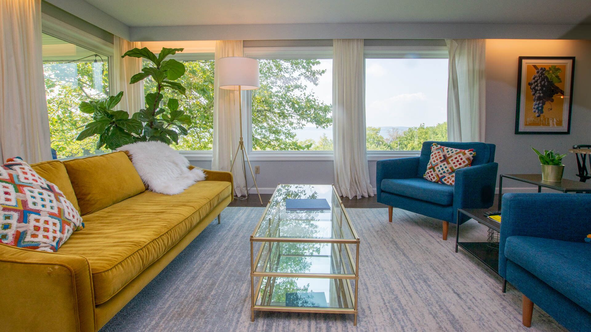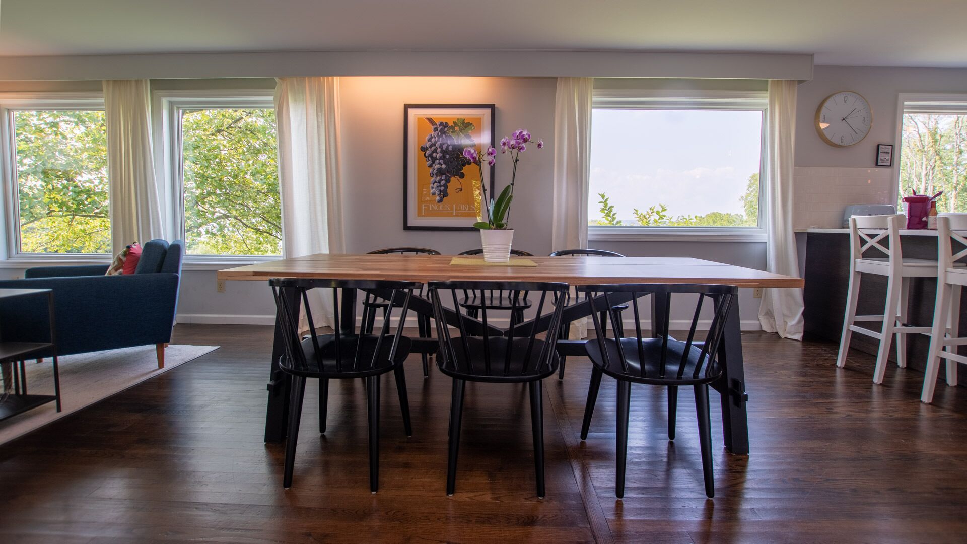 Cayuga Sunshine: "Luxury on Cayuga Lake. Close to Aurora!" On a prime location on the east side of Cayuga Lake, Cayuga Sunshine will brighten any Finger Lakes getaway. Situated on the edge of the charming village of Aurora, this gem is ideal whether you are touring wineries, visiting Cornell University and Wells College, or attending a lakeside wedding.Inside, this newly updated home will calm you with its shades of blues, grays and greens, mirroring the views of the shimmering lake below. You'll find the open-plan living/dining room quickly becomes your favorite spot to visit with friends and family. The kitchen accents the great room with emerald green cabinetry and white granite countertops. An island bar offers seating for two. Pour a glass of Finger Lakes wine and visit with the chef of your group while they prepare your favorite meals. Completing the entry level, two master suites are yours to choose from. Upstairs, the third bedroom and bath can be found. Each bedroom is thoughtfully decorated with your comfort and tranquility in mind.Outside, a walk down the gravel driveway and across the road leads to your 200-ft of private lake frontage. Enjoy skipping rocks, lounging in an Adirondack chair, launching the tandem kayak or watching the many red-tailed hawks and osprey. As the sun sets and the sky is painted with shades of pink and orange, start a fire in the pit and listen to the waves crashing on the shore. Be sure to bring your camera because every sunset is different from the last. The village of Aurora offers boutique shopping at world-famous MacKenzie-Childs and fine dining at 1833 Kitchen and Bar. For a casual meal after a day on the water, stop in at Fargo Bar & Grill for a burger or seasonal fare. Heart and Hands Wine Company, Bright Leaf Vineyard and Treleaven Wines are short drives away. If a local beer is more your thing, don't miss the tasting room at the Aurora Brewing Co. Whether you're hiking the gorges of Ithaca, taking a private boat tour of the lake with Aurora native Captain Matt Bianconi, indulging at Doug's Fish Fry in the resort town of Skaneateles, visiting the Women's Rights Museum or the Harriet Tubman home, or taking in summer stock at the Merry-Go-Round Playhouse or Hangar Theatre, Cayuga Sunshine is the perfect location for Finger Lakes fun. Call and make your reservation today!Occupancy: This property is closely monitored for responsible renting. The maximum occupancy of each home is the number of guests allowed on the premises at any given time. This includes both day and overnight guests. Note: 1. Smoking is not allowed in any rental property.2. Homes are not handicap accessible, unless stated in description.3. Air conditioning is not available unless otherwise noted as available in the amenities. If air conditioning is noted as available, this is considered a seasonal amenity and is only available May 15 - October 15.4. Where pets are allowed it is indicated. Otherwise, pets are not allowed. Homes are not guaranteed allergen-free, even those that do not allow pets.5. Docking capabilities may vary based on current water levels. Docking is not guaranteed if water levels are low and/or high due to seasonal weather and climate changes.6. *Outdoor amenities, including furniture/watercraft are not available between October 15 - May 15*