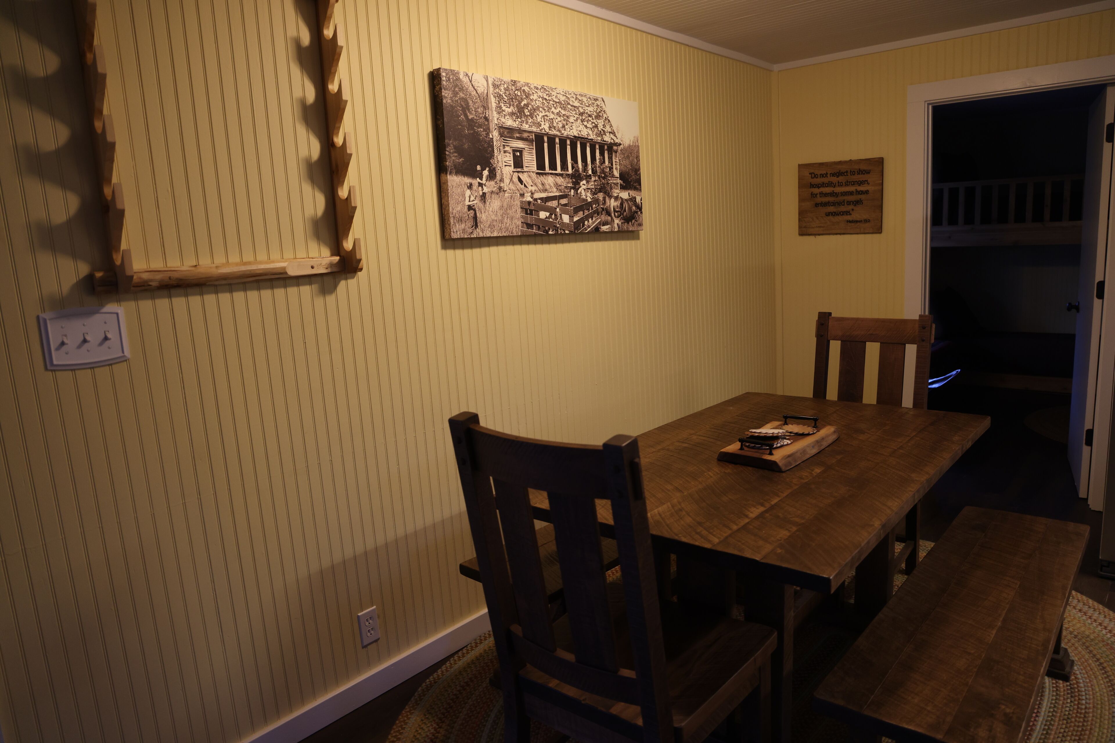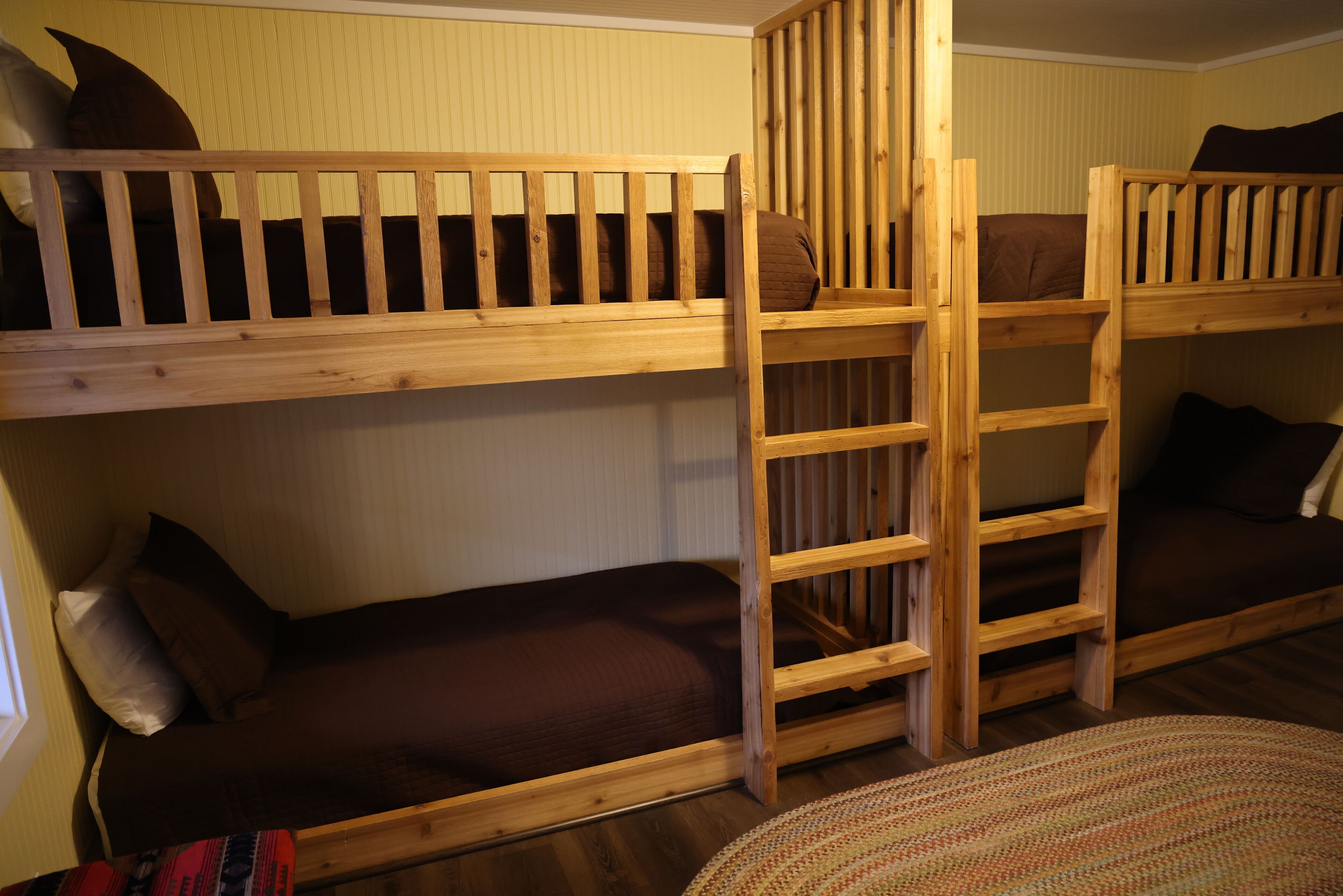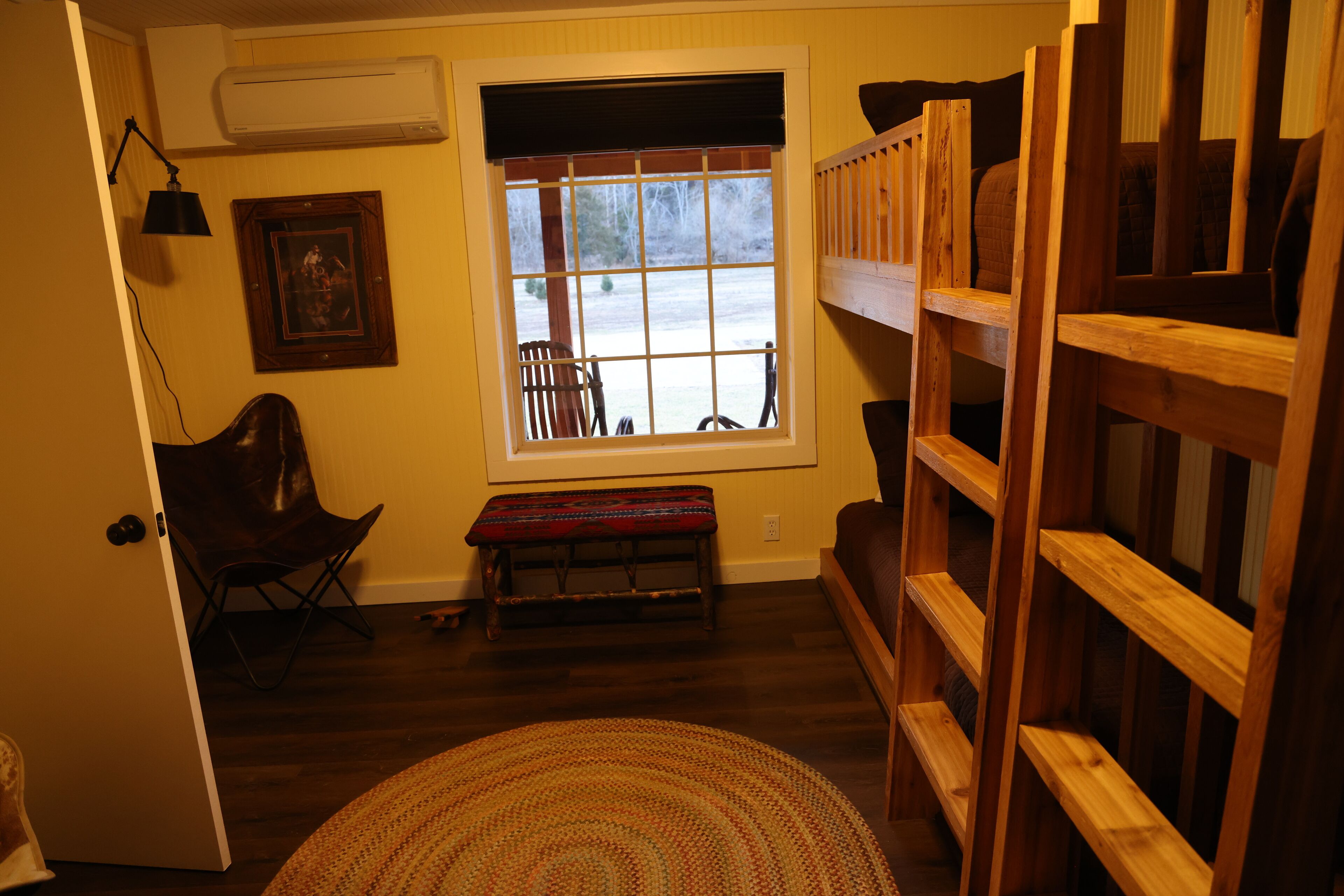 South Camp-Mountain Creek Ranch Small groups love sleeping among the Longhorns at South Camp. The ranch cabin shares its space with the natural habitat and is brimming with rustic charm. Once you cross the creek to enter South Camp you won't want to leave. South Camp is a very unique property with a beautiful fireplace in the back. A full furnished living area share an open floor concept with a dining area and kitchen. The one bedroom has 2 bunk bed (total of 4 beds). Enjoy the simplicity of South Camp with modern amenities.