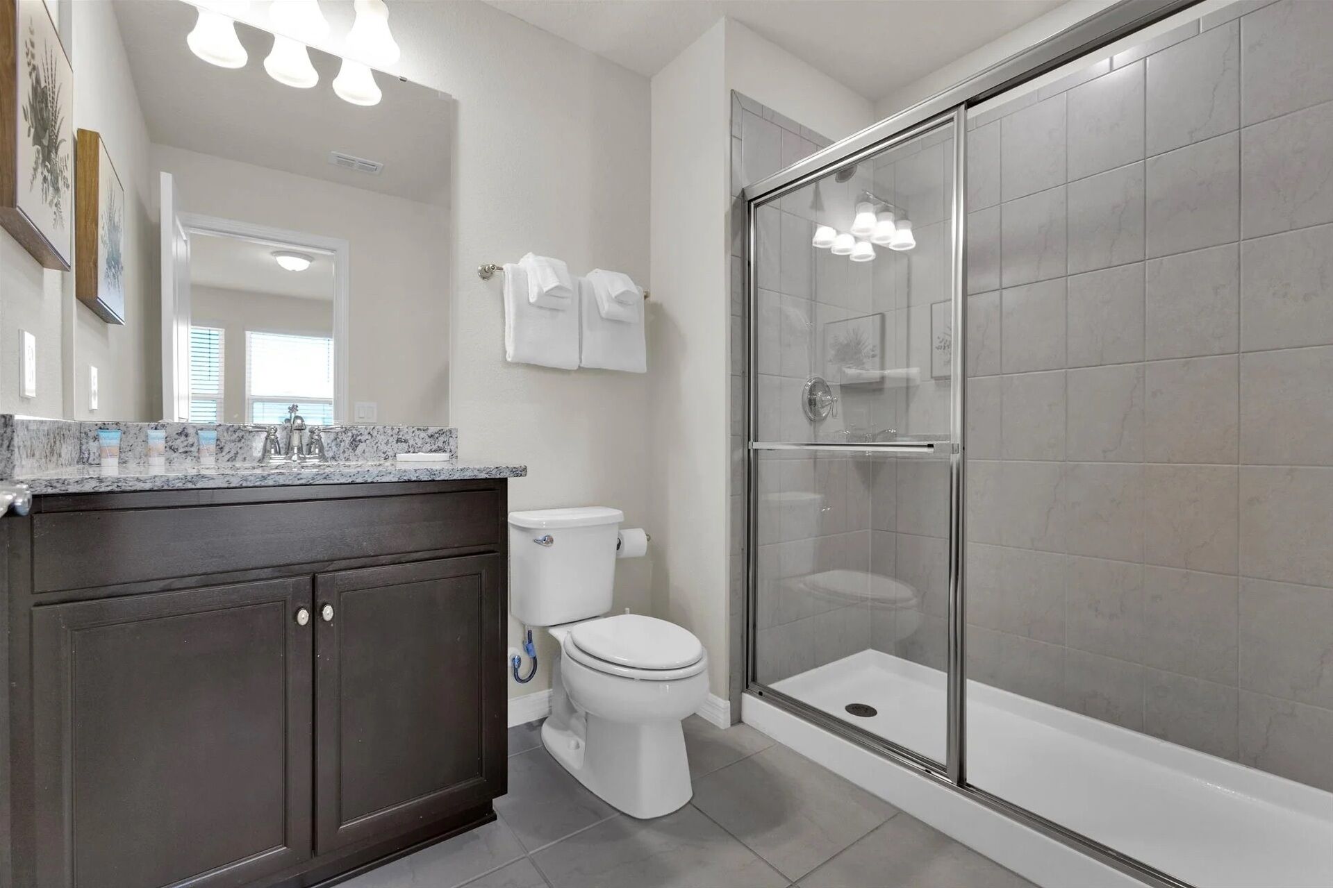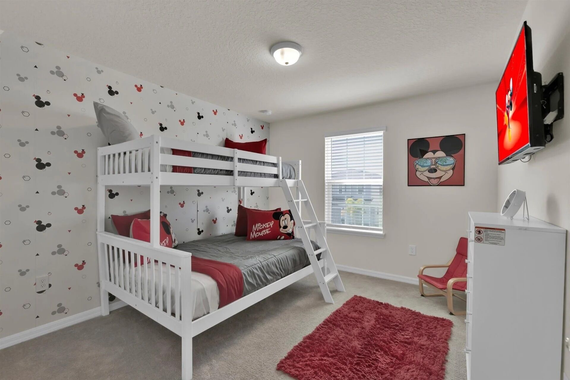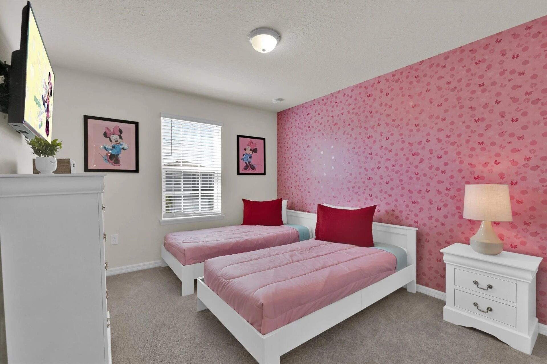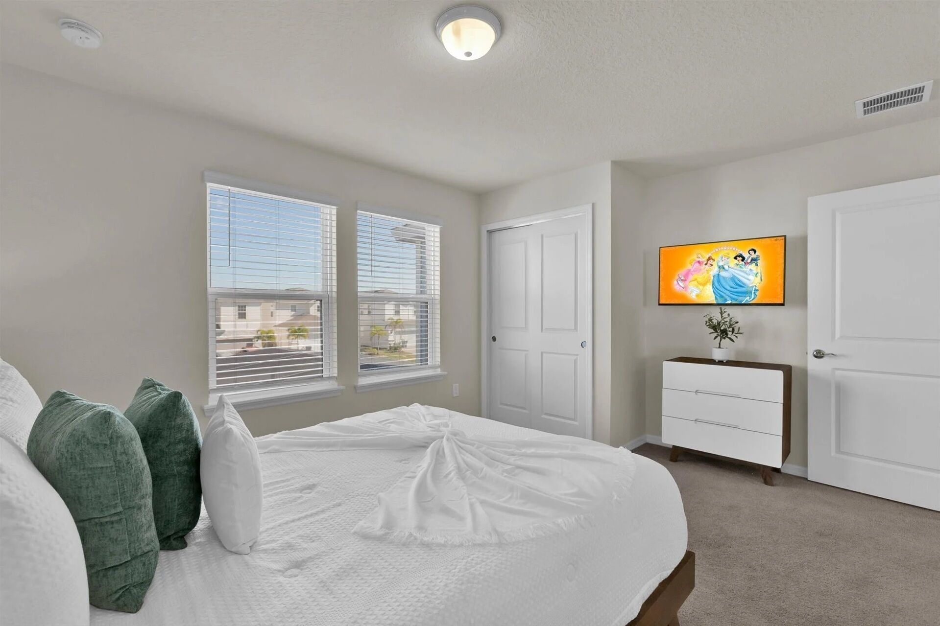 Private Pool - BRAND NEW - 10 Mins Disney -Stunning Home Welcome to our charming Retreat in Windsor Island! This elegant yet inviting home is perfect for families looking to enjoy the best of Florida living with a touch of Disney magic. As you enter, you'll be greeted by the spacious open-concept layout, where the kitchen seamlessly blends into the dining area. The kitchen features modern appliances and a breakfast bar, ideal for quick family breakfasts or casual meals, with seating for four. The dining table, with seating for six, provides a lovely space for family dinners or entertaining guests.The ambience of the home is simple yet elegant, creating a warm and welcoming atmosphere for all guests. The main bedroom boasts a luxurious king-sized bed, offering comfort and relaxation after a day of adventure. Additionally, there are two queen-sized beds for extra comfort, perfect for accommodating larger groups. For our younger guests, we've created two beautifully decorated Disney-themed bedrooms - one inspired by Minnie Mouse and the other by Mickey Mouse. These rooms are sure to delight and enchant children of all ages, providing a magical experience throughout their stay.Step outside to the covered lanai and pool area, where you can soak up the Florida sun and enjoy al fresco dining with seating for six. The glass lanai ensures uninterrupted views of the pool, creating a serene oasis for relaxation and family fun.During your stay at Windsor Island, you'll have access to a range of wonderful amenities, including a waterpark, splash pad, sports courts, fitness center, and lazy river. With so much to explore and enjoy right at your fingertips, your vacation is sure to be filled with unforgettable memories.Come and experience the perfect blend of luxury, comfort, and Disney magic at our Windsor Island retreat. Book your stay today and create memories that will last a lifetime!Pets - not allowedSmoking - not allowed