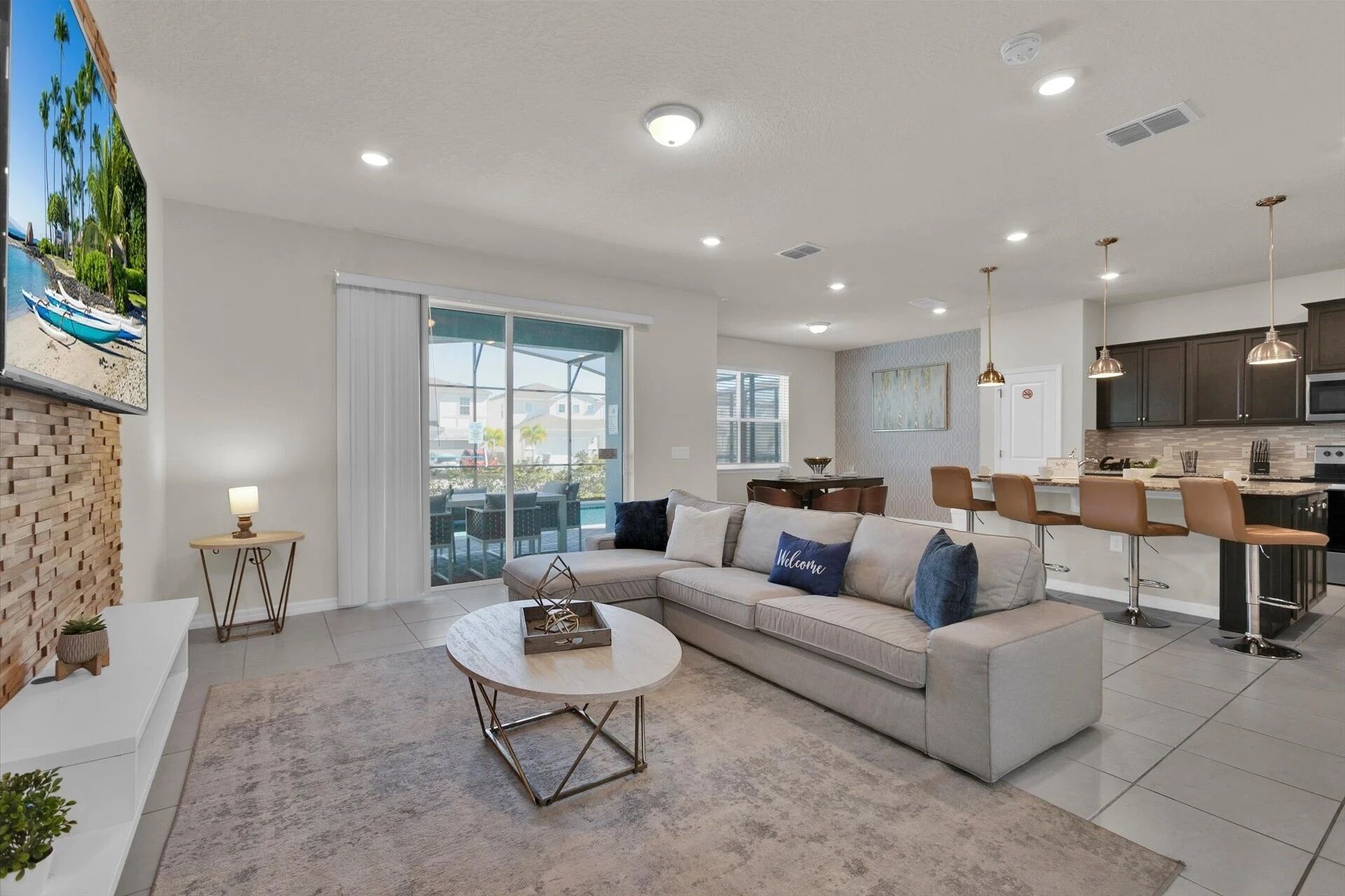 Private Pool - BRAND NEW - 10 Mins Disney -Stunning Home Welcome to our charming Retreat in Windsor Island! This elegant yet inviting home is perfect for families looking to enjoy the best of Florida living with a touch of Disney magic. As you enter, you'll be greeted by the spacious open-concept layout, where the kitchen seamlessly blends into the dining area. The kitchen features modern applianc...