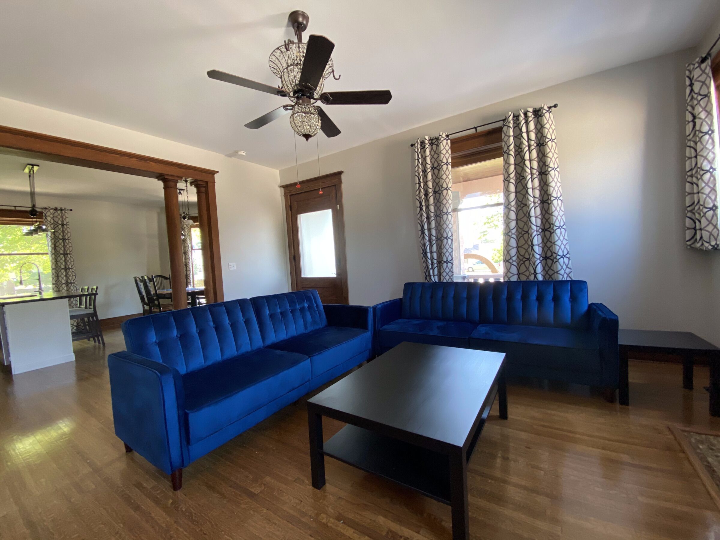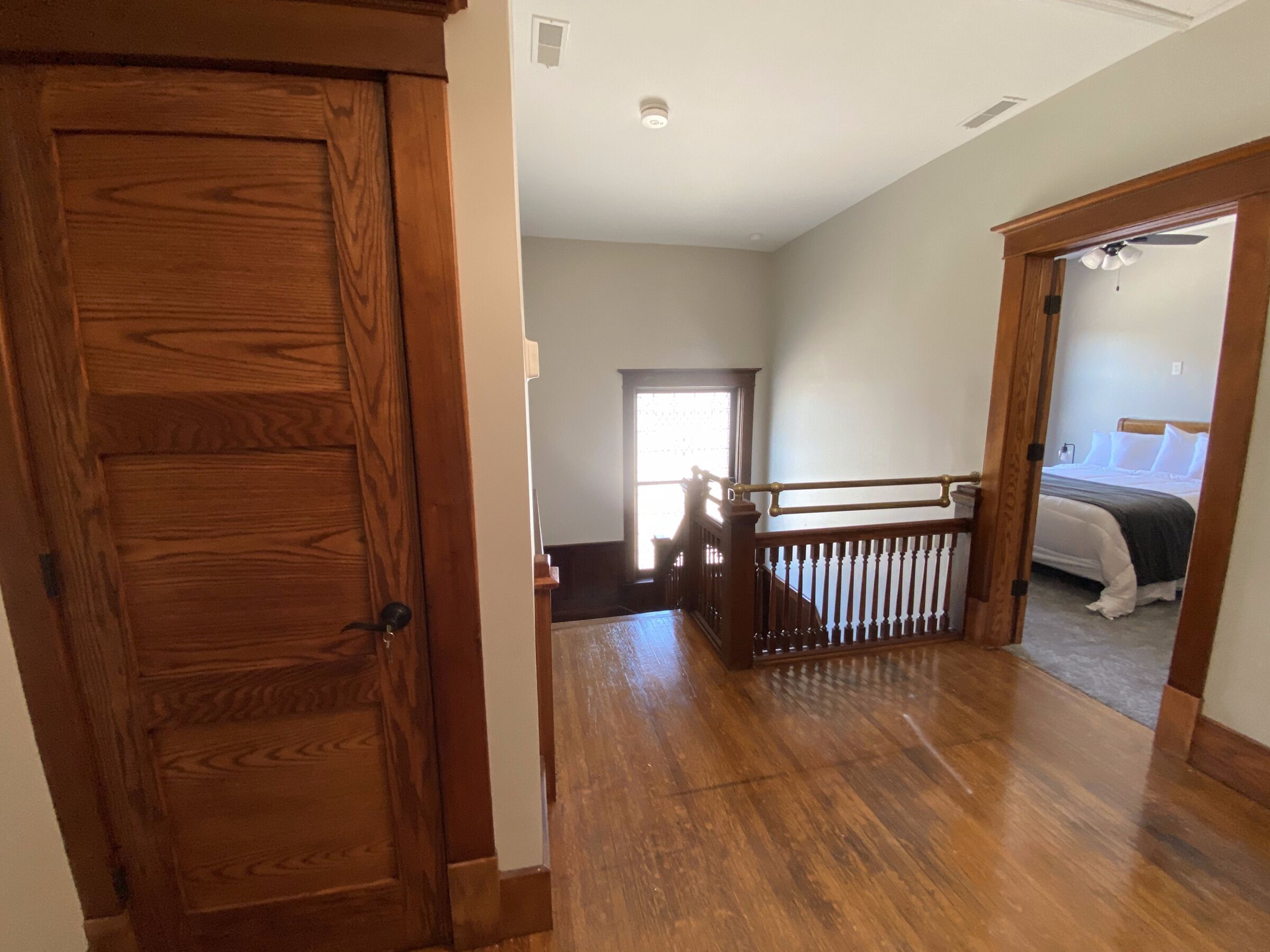 Copperfield of Centralia - Unit 1 - Centralia, IL **** Please note that we now also offer a 1 bedroom suite (Unit 2, separate listing) to rent within Copperfield. Please contact us about package pricing to rent Unit 1 (details below) and Unit 2 together. The two units can sleep 12 people (16 with fold out couches) and are perfect for large groups.***Come stay at one of the coolest vacation rentals in South Central Illinois. Originally built in 1918 by a member of the Kohl family, this building has been a focal point of downtown Centralia ever since. The property features old world architecture, with its solid brick structure, rich woodwork, and spectacular courtyard. Newly remodeled with a fresh look and an old world feel, it is a comfortable place for friends and families to stay.The main vacation rental sleeps 10 people (12 with sofa beds). There are 5 bedrooms total, 4 bedrooms that each have their own bathroom. The 5th bedroom shares a bath with another bedroom. Bathrooms feature subway tiled walls, mosaic tile floors, and clawfoot bathtubs. Bedrooms are furnished with queen size beds and TV. The newly installed kitchen and island create a great place to eat and have drinks or play games with the kids. Being centrally located, it is within a 5 minute drive of the new Castle Ridge Wedding and Conference Center, Raccoon Lake, Foundation Park, Fairview Plaza, and much more. It is a 30 minute drive from Carlyle Lake and 20 minutes fromLake Centralia.It is also within a 5-15 minute walking distance of the following attractions:Centralia House Restaurant Rail Coffee RoomCrooked Creek Winery Downtown Taco Jo’sCentralia Recreational Complex Centralia CarrillonCentralia Chamber of Commerce Downtown LoungeDairy Queen Dominoes Tequilas Fire WokDreamality (24 hr gym) WalgreensCVS Amtrak Station...and many more local businesses.Currently there is no wheelchair accessibility but that will change in the future. Free Wi-Fi, Netflix, and local stations.We take safety seriously. Smoke detectors, carbon monoxide detectors, security system, and cameras are installed. Courtyard is also gated and bedrooms lock from within with a handle and security latch. There is a first aid kit on site.*Smoking allowed outside only. Please use the provided ashtrays.**No pets allowed at this time.***No parties.