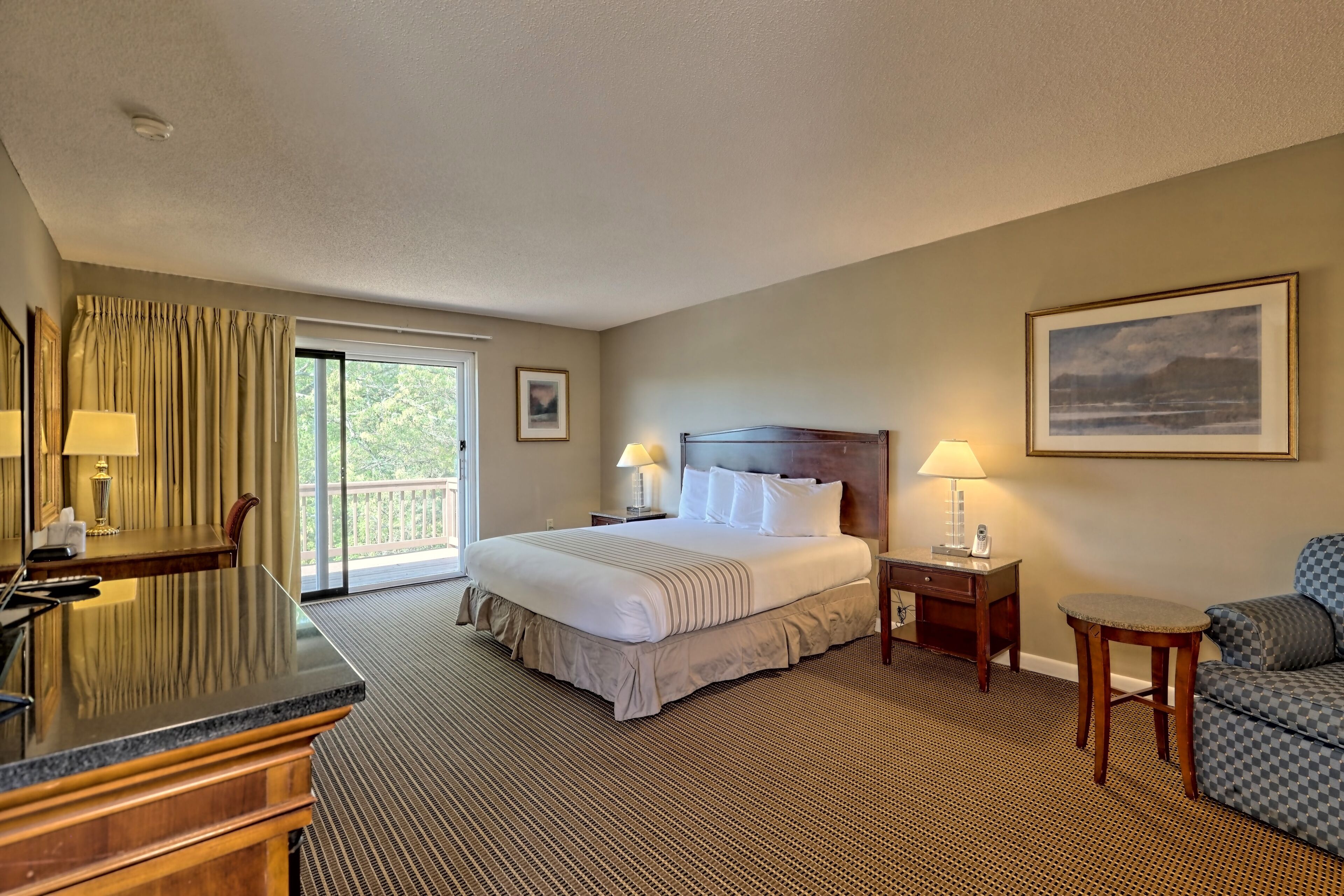 Kingwood Resort_405 King Bed Unit Make The Mountains Your HomeInspired by the invitingly rugged lodging often found intertwined with the mountainscape, our accommodations let you separate yourself from the world with thoughtfully appointed rooms and condos made for North Georgia relaxation.Lined along the west side of our property, our Clayton, Georgia lodging is perched atop a hill overlooking the main pool and deck—with beautiful views from each private balcony. Inside, earthy tones create a distinctly warm mood, in addition to all the standard comforts you'd want from an escape, including wood furnishings, a workspace area and en-suite bathroom.