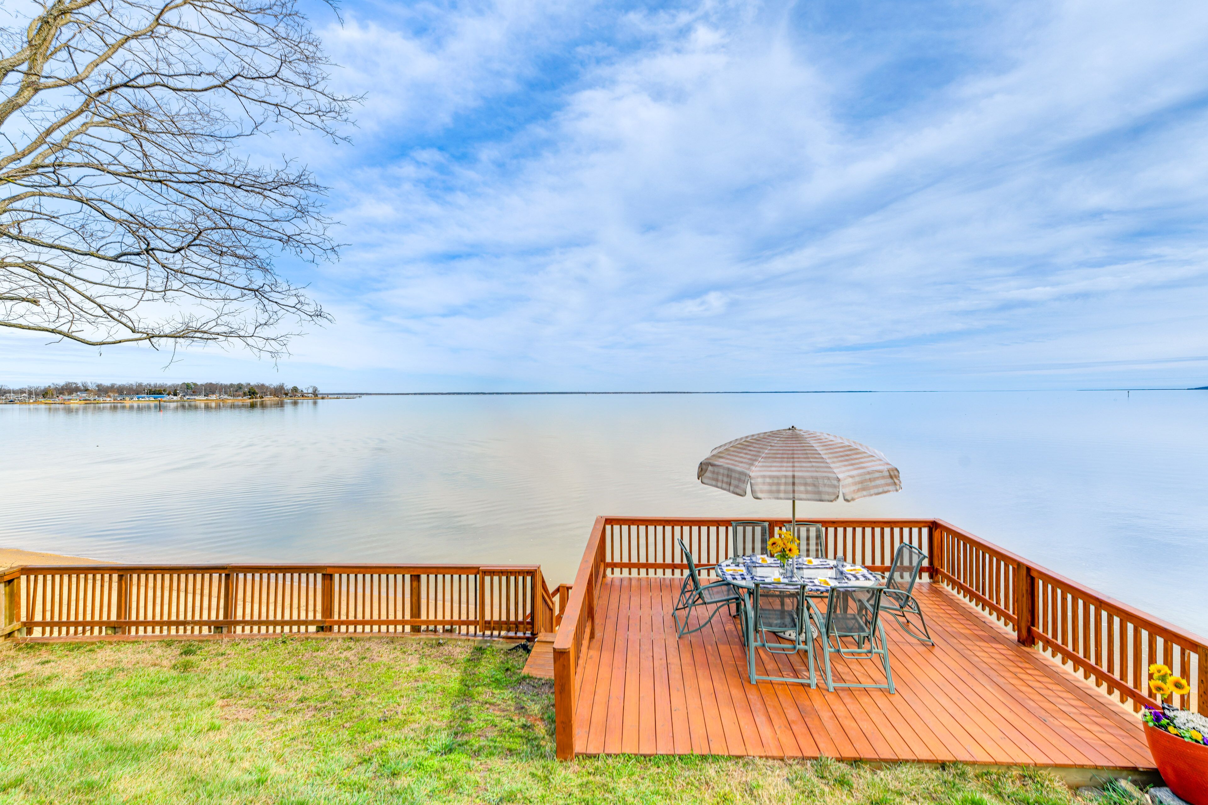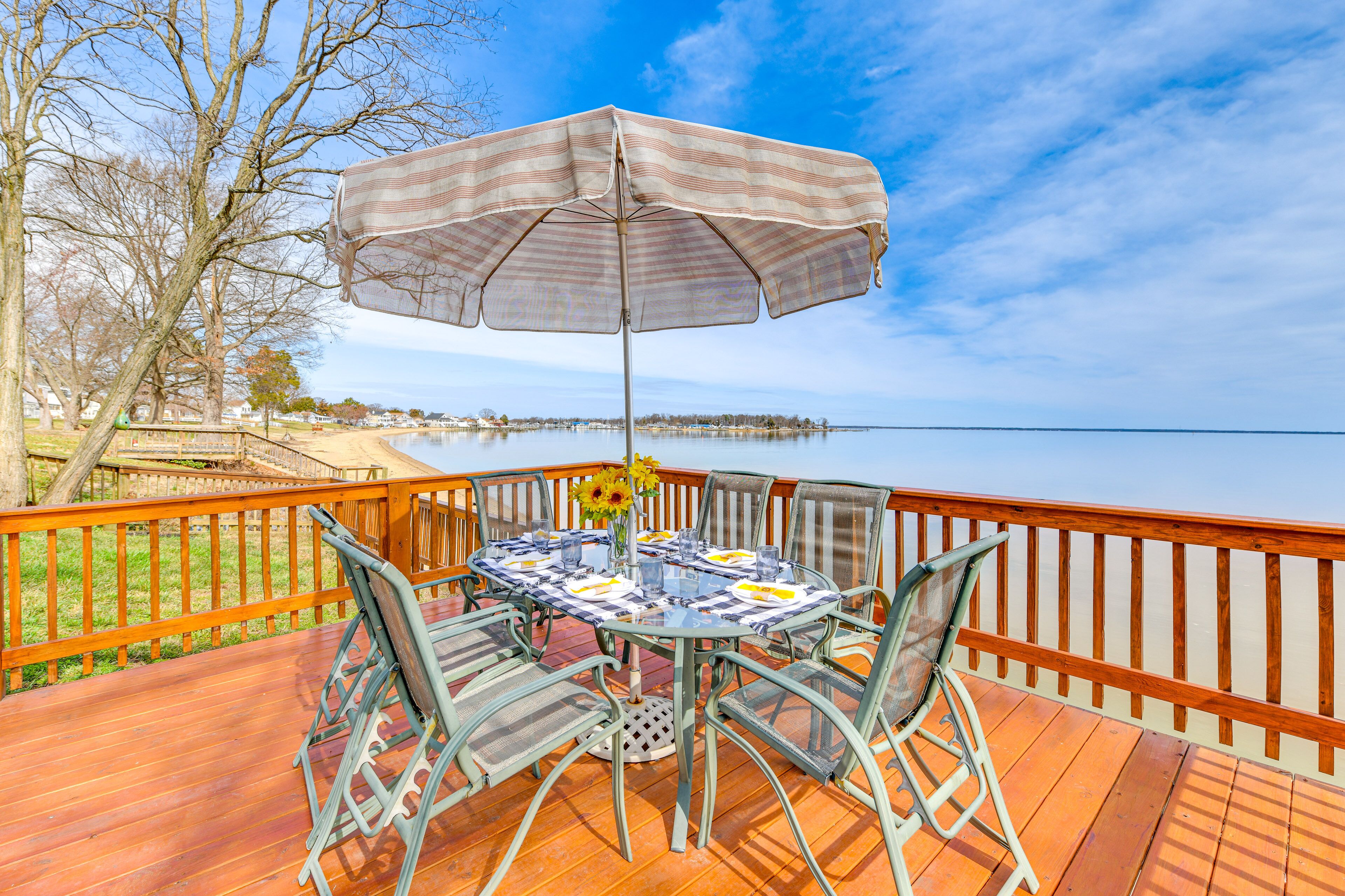 Riverfront Colonial Beach Home w/ Private Beach! If you’re seeking easy access to the Potomac River with all the comforts of home, book this 3-bed, 1-bath Colonial Beach vacation rental! This charming home features 3 flat-screen TVs with cable, a fully stocked kitchen, and an awesome outdoor space fit for the whole crew. Wake each morning with the sunrise as you sip your morning coffee on the furn...