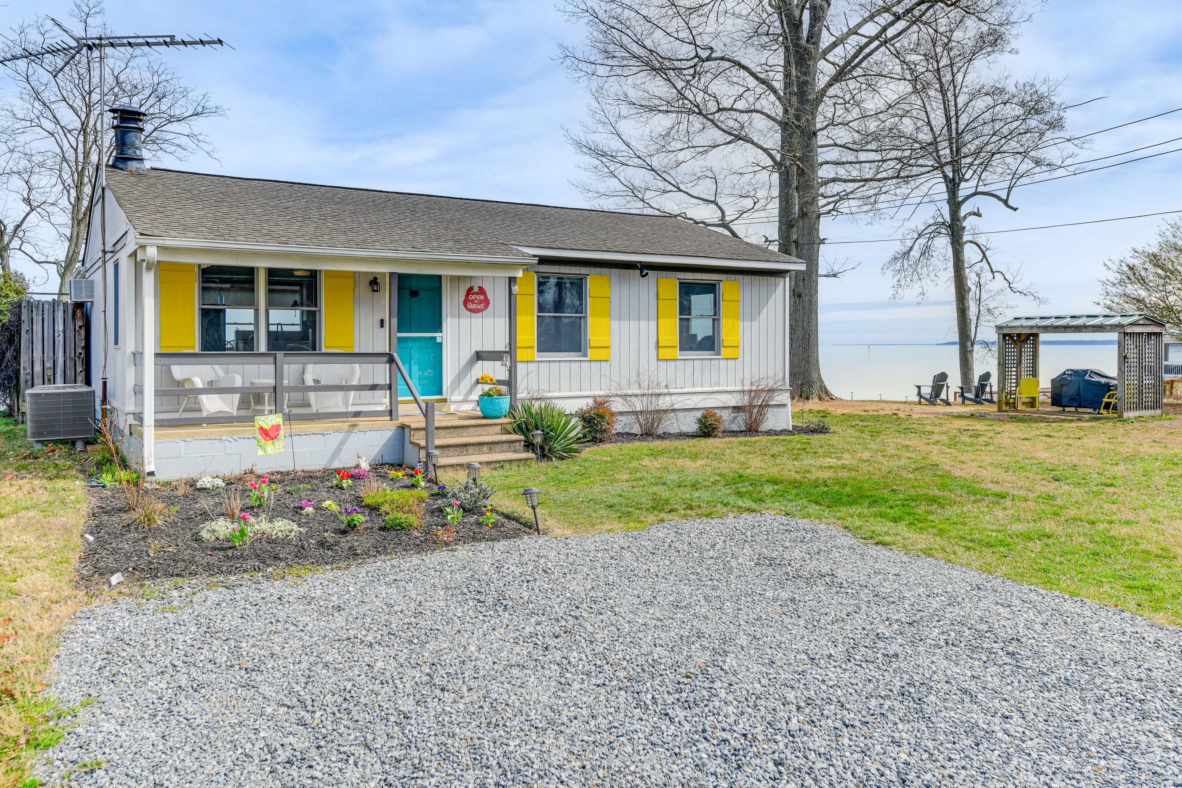 Riverfront Colonial Beach Home w/ Private Beach! If you’re seeking easy access to the Potomac River with all the comforts of home, book this 3-bed, 1-bath Colonial Beach vacation rental! This charming home features 3 flat-screen TVs with cable, a fully stocked kitchen, and an awesome outdoor space fit for the whole crew. Wake each morning with the sunrise as you sip your morning coffee on the furnished deck, then walk down to the private beach and make a splash! Afterward, head into town for quaint shopping and a bite to eat. It’s up to you!-- THE PROPERTY --Incredible Sunrise Views | Washer/Dryer | Outdoor Dining Area | River Views & AccessBedroom 1: Queen Bed | Bedroom 2: Queen Bed | Bedroom 3: Twin Daybed w/ Twin TrundleINDOOR LIVING: 3 flat-screen TVs w/ cable, DVD player, laptop workspace, dining table, books, ceiling fansOUTDOOR LIVING: Furnished deck, shower, private yard, 140’ private beach, furnished porchKITCHEN: Refrigerator, stove/oven, dishwasher, dishware/flatware, cooking basics, spices, drip coffee maker, blender, Crockpot, microwave, toasterGENERAL: Free WiFi, electric heating & A/C, linens/towels, iron/board, trash bags, paper towels, hair dryerFAQ: 2 exterior security cameras (facing out)ACCESSIBILITY: Single-story home, 4 steps to enterPARKING: Driveway (4 vehicles)-- THE LOCATION --POTOMAC RIVER: Private beach (on-site access), Colonial Beach Municipal Pier (5 miles), Colonial Beach (5 miles), The Boathouse Marina (6 miles), Parkers Marina (6 miles), The Sands (15 miles)AMERICAN HISTORY: James Monroe Birthplace Park & Museum (3 miles), Colonial Beach Historical Society (5 miles), War Memorial Cannon (5 miles), George Washington Birthplace National Monument (10 miles)OUTDOOR RECREATION: Monroe Bay Campground (2 miles), Town Hill (5 miles), Westmoreland State Park (13 miles), Caledon State Park (18 miles)THINGS TO DO: Colonial Beach Brewing (5 miles), Ingleside Vineyards (7 miles), Kings Dominion (47 miles), Busch Gardens Williamsburg (98 miles)DAY TRIPS: Washington D.C. (67 miles), Richmond (71 miles), Williamsburg (95 miles), Baltimore (97 miles)AIRPORT: Ronald Reagan Washington National Airport (64 miles)-- REST EASY WITH US --Evolve makes it easy to find and book properties you’ll never want to leave. You can relax knowing that our properties will always be ready for you and that we’ll answer the phone 24/7. Even better, if anything is off about your stay, we’ll make it right. You can count on our homes and our people to make you feel welcome — because we know what vacation means to you.-- POLICIES --- No smoking- No pets allowed- No events, parties, or large gatherings- Must be at least 25 years old to book- Additional fees and taxes may apply- Photo ID may be required upon check-in- NOTE: Your safety matters. This property features 2 exterior security cameras: 1 camera is located next to the front door facing toward the front entry area, and 1 camera is located next to the back door facing toward the back entry area. These cameras do not look into any interior spaces. They record sound and video when activated by motion. The cameras are not active when guests are in residence- NOTE: This single-story home requires 4 steps to enter