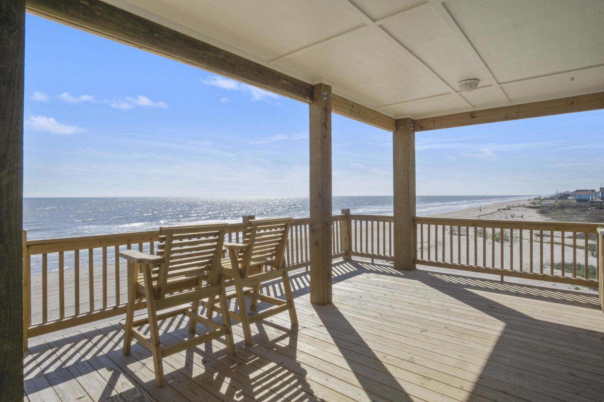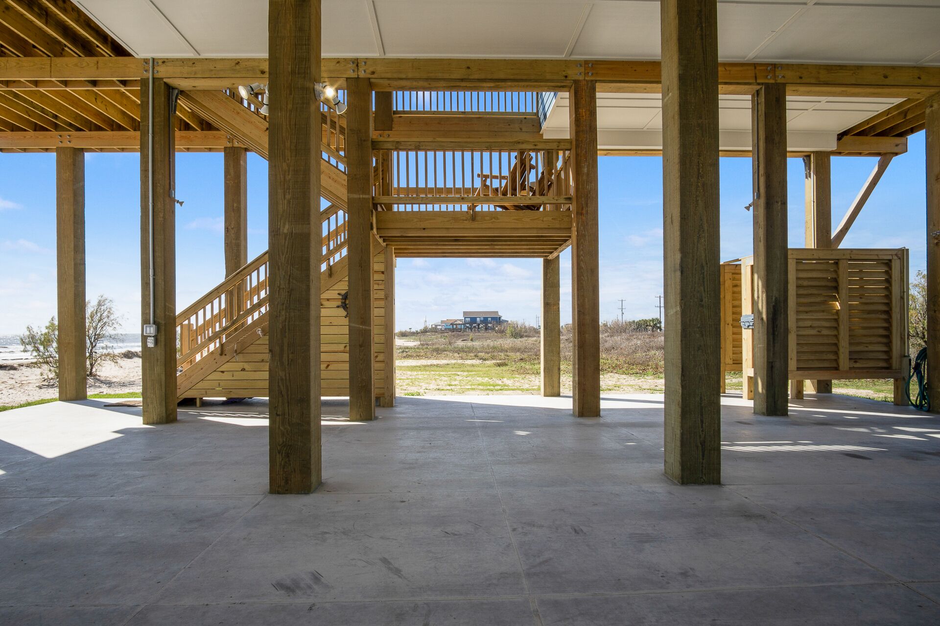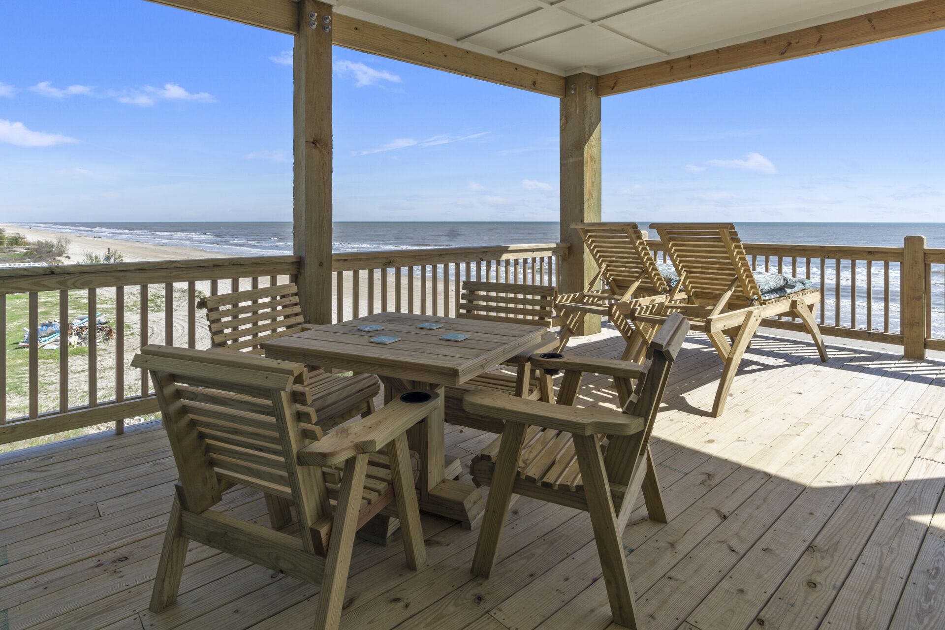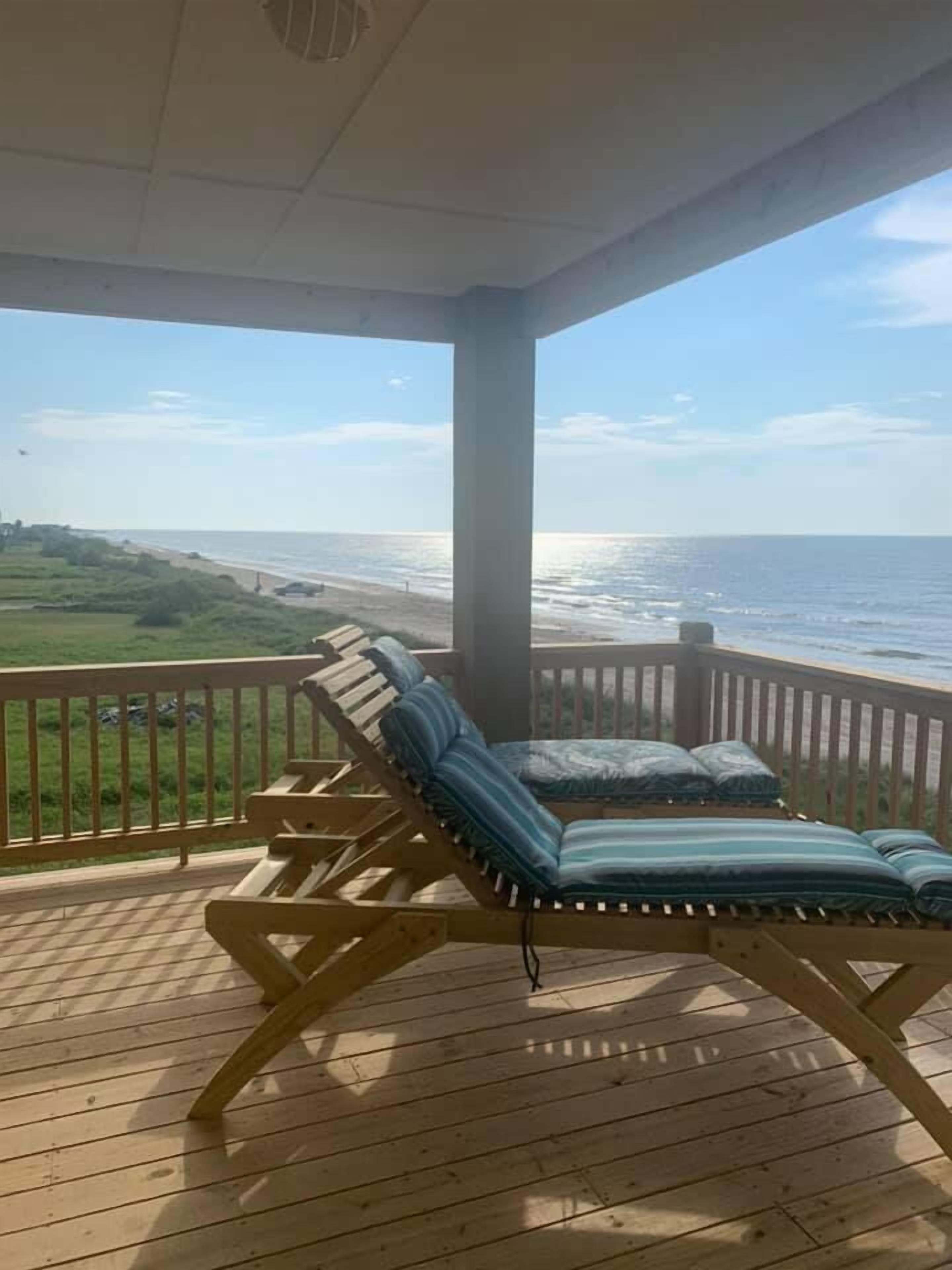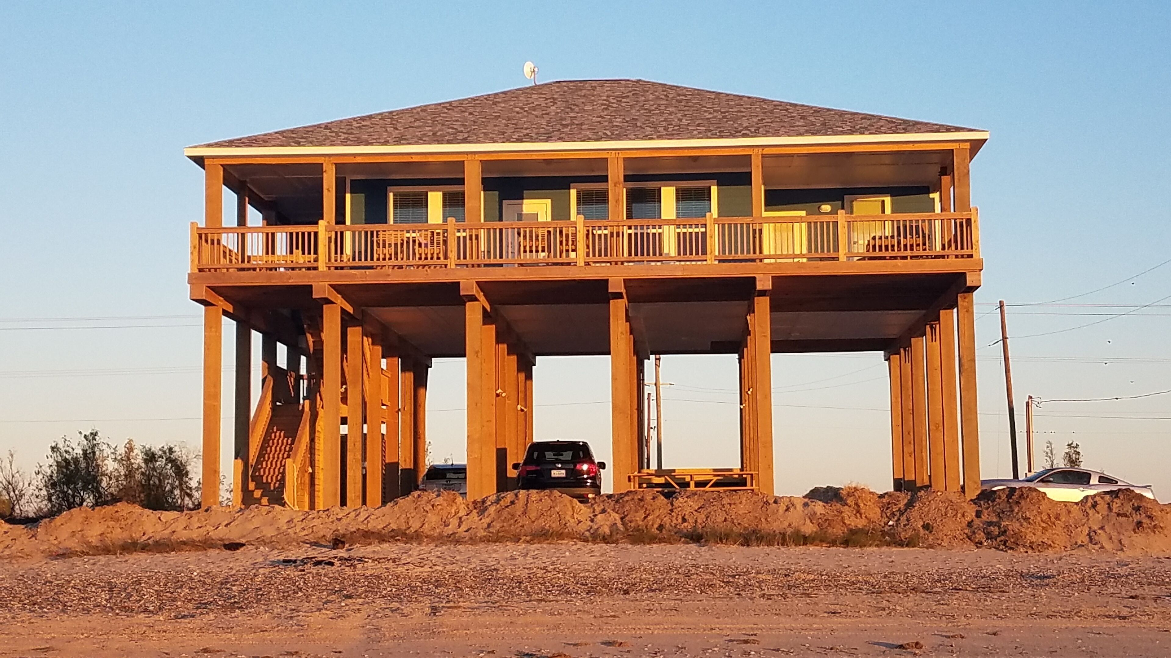 Bella Luna ! Awesome beach getaway., cargo lift Calm Breezes, the quiet roar of the restless gulf, a choreography of pelicans above, and an endless view from your private deck. Bella Luna is your brand new getaway practically built on the beach. She features four bedrooms and four bathrooms with two king master en-suites and two Queen over Queen bunk rooms, and comfortably sleeps 12. Fully equipped gourmet kitchen with large island that seats 7, comfortable living area with TVs and fans in every room. This beautiful home features an expansive front and side deck and screened-in back porch for spectacular sunset viewing. Covered downstairs area with picnic table, BBQ pit along with hot/cold outdoor shower to rinse off after fun at the beach. Bring your family & friends to enjoy the beach, quiet relaxation, fishing or bird watching on the Texas gulf coast or take a ferry for a day trip to Galveston, NASA or Houston. Make memories for a lifetime.Cargo Lift!We are excited to offer this upgrade to guests. You will be able to relax, settle in and start your vacation even sooner. Cargo lift is for cargo only. Not for use as an elevator for people.