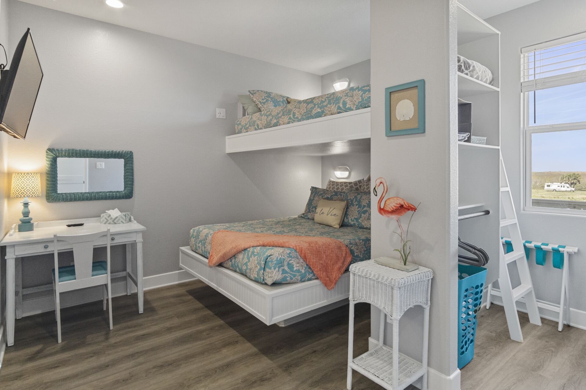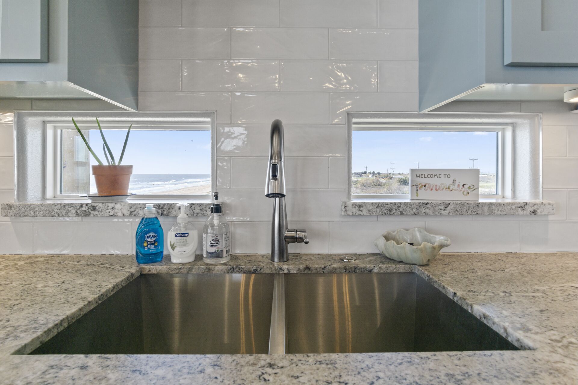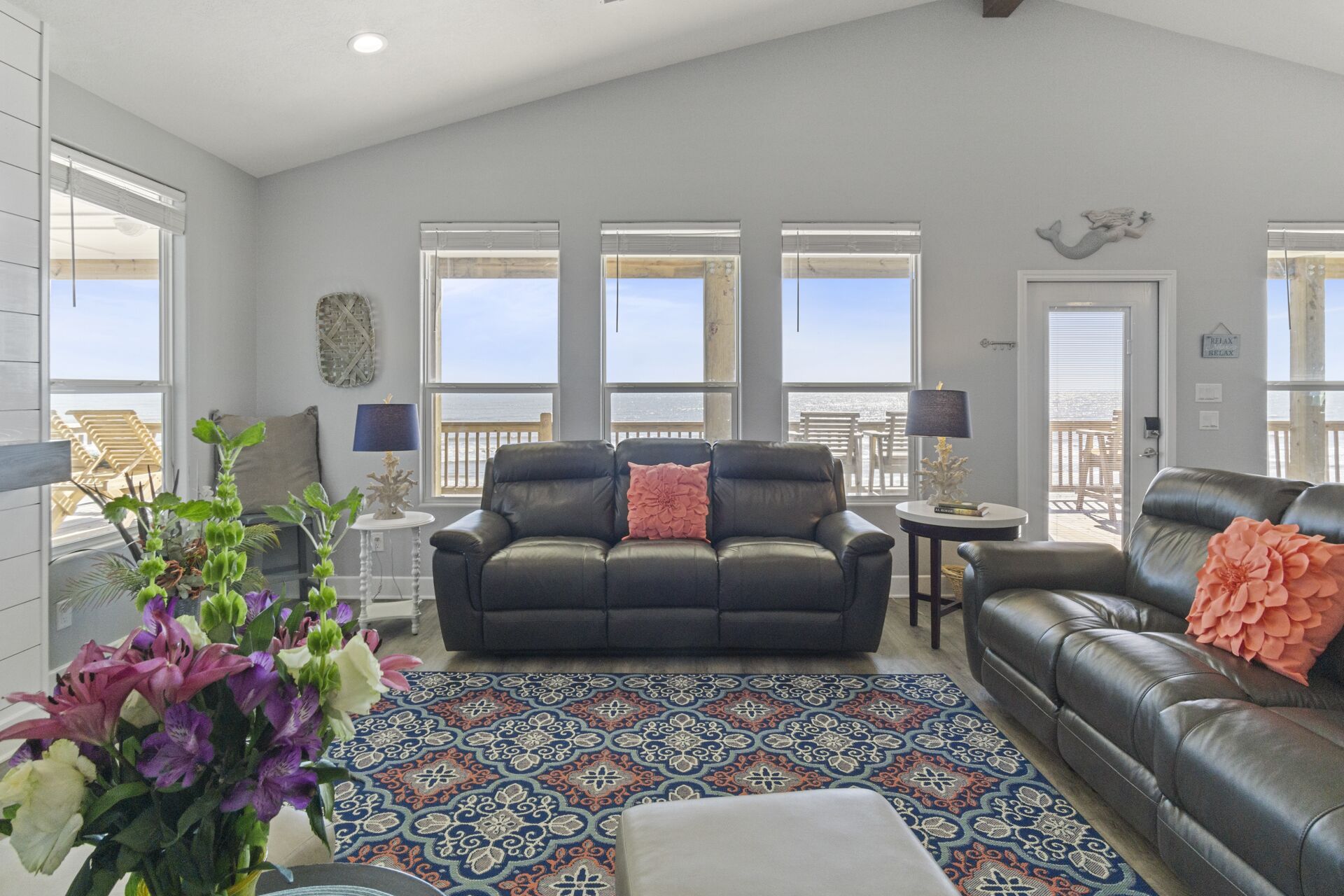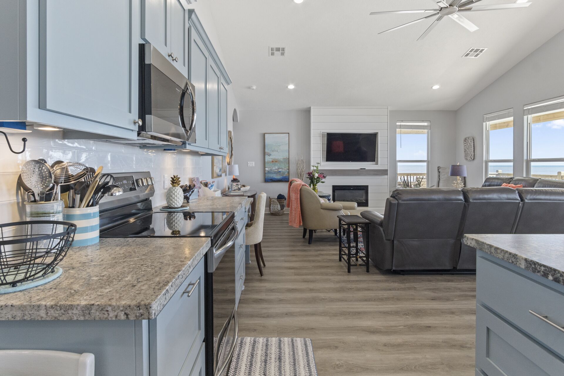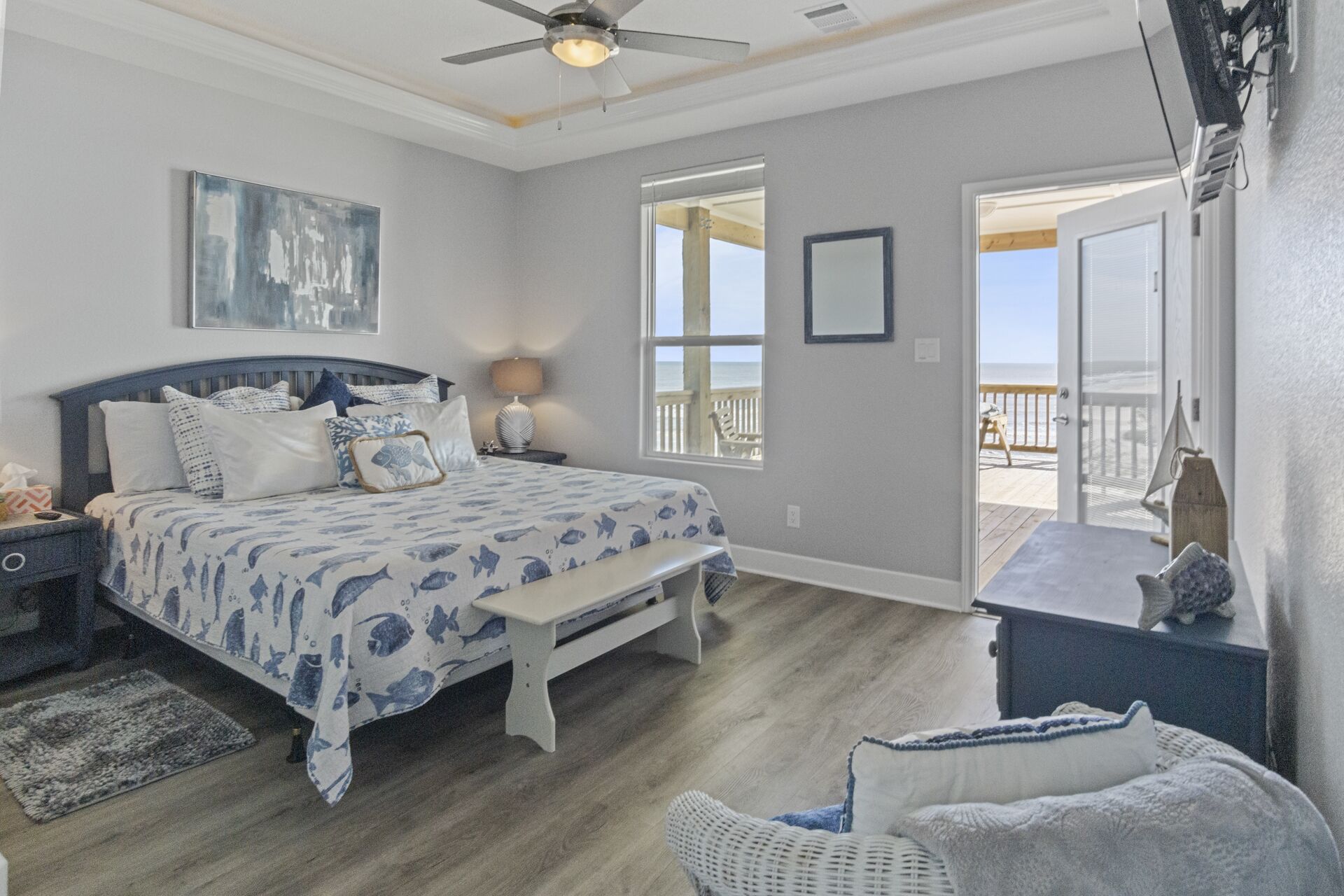 Bella Luna ! Awesome beach getaway., cargo lift Calm Breezes, the quiet roar of the restless gulf, a choreography of pelicans above, and an endless view from your private deck. Bella Luna is your brand new getaway practically built on the beach. She features four bedrooms and four bathrooms with two king master en-suites and two Queen over Queen bunk rooms, and comfortably sleeps 12. Fully equipped gourmet kitchen with large island that seats 7, comfortable living area with TVs and fans in every room. This beautiful home features an expansive front and side deck and screened-in back porch for spectacular sunset viewing. Covered downstairs area with picnic table, BBQ pit along with hot/cold outdoor shower to rinse off after fun at the beach. Bring your family & friends to enjoy the beach, quiet relaxation, fishing or bird watching on the Texas gulf coast or take a ferry for a day trip to Galveston, NASA or Houston. Make memories for a lifetime.Cargo Lift!We are excited to offer this upgrade to guests. You will be able to relax, settle in and start your vacation even sooner. Cargo lift is for cargo only. Not for use as an elevator for people.