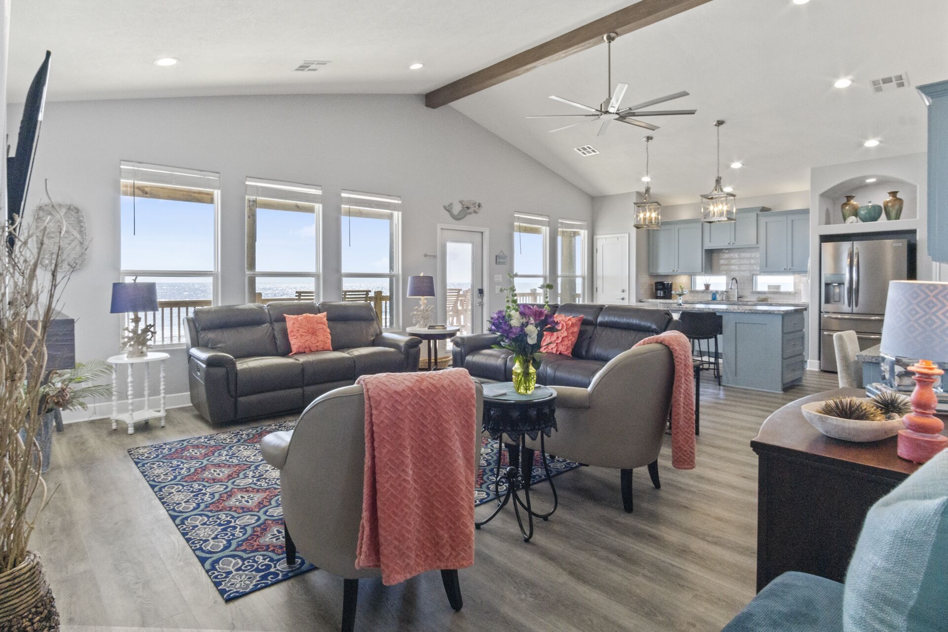 Bella Luna ! Awesome beach getaway., cargo lift Calm Breezes, the quiet roar of the restless gulf, a choreography of pelicans above, and an endless view from your private deck. Bella Luna is your brand new getaway practically built on the beach. She features four bedrooms and four bathrooms with two king master en-suites and two Queen over Queen bunk rooms, and comfortably sleeps 12. Fully equip...