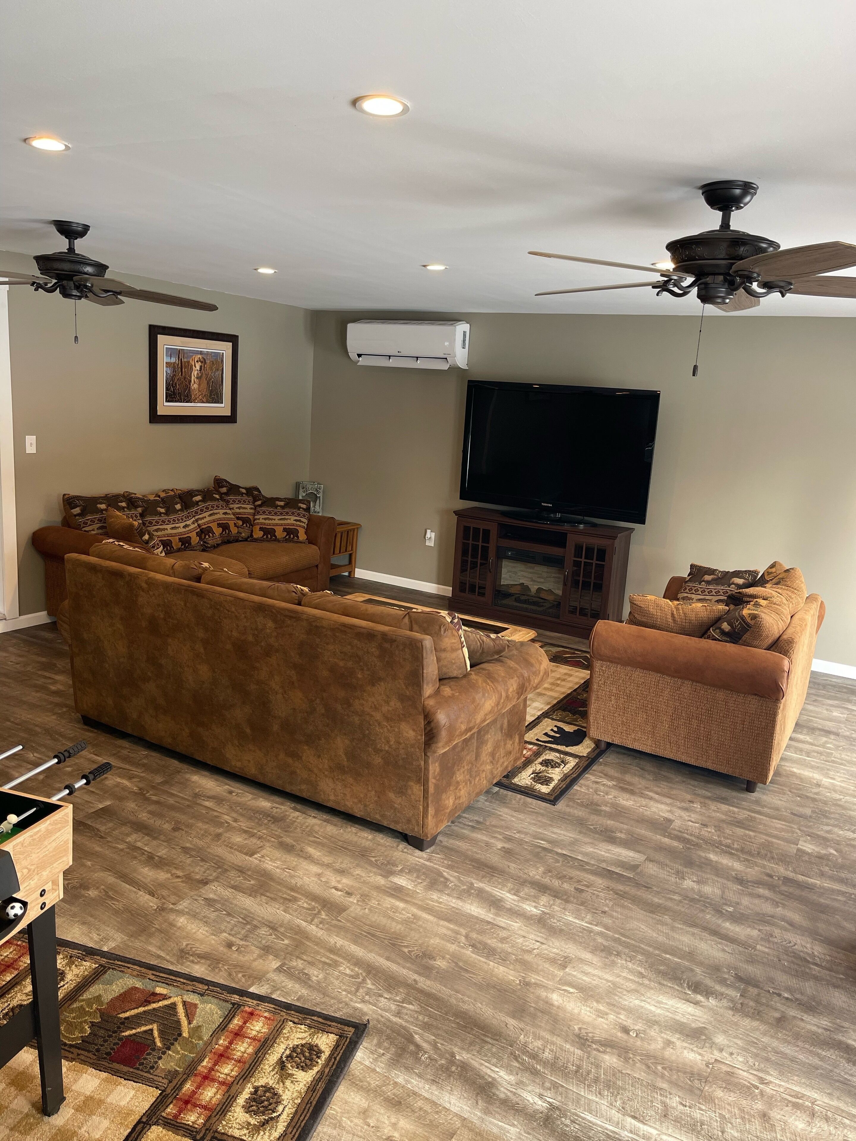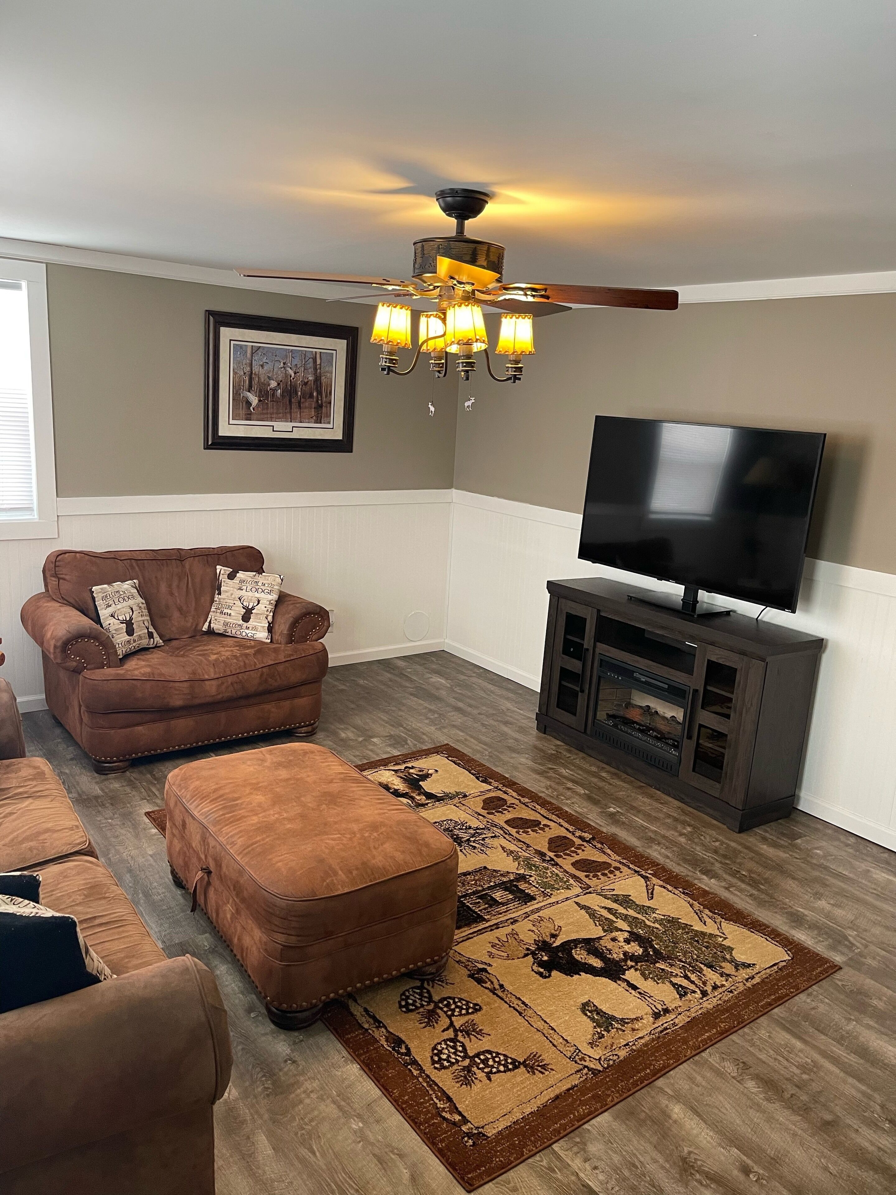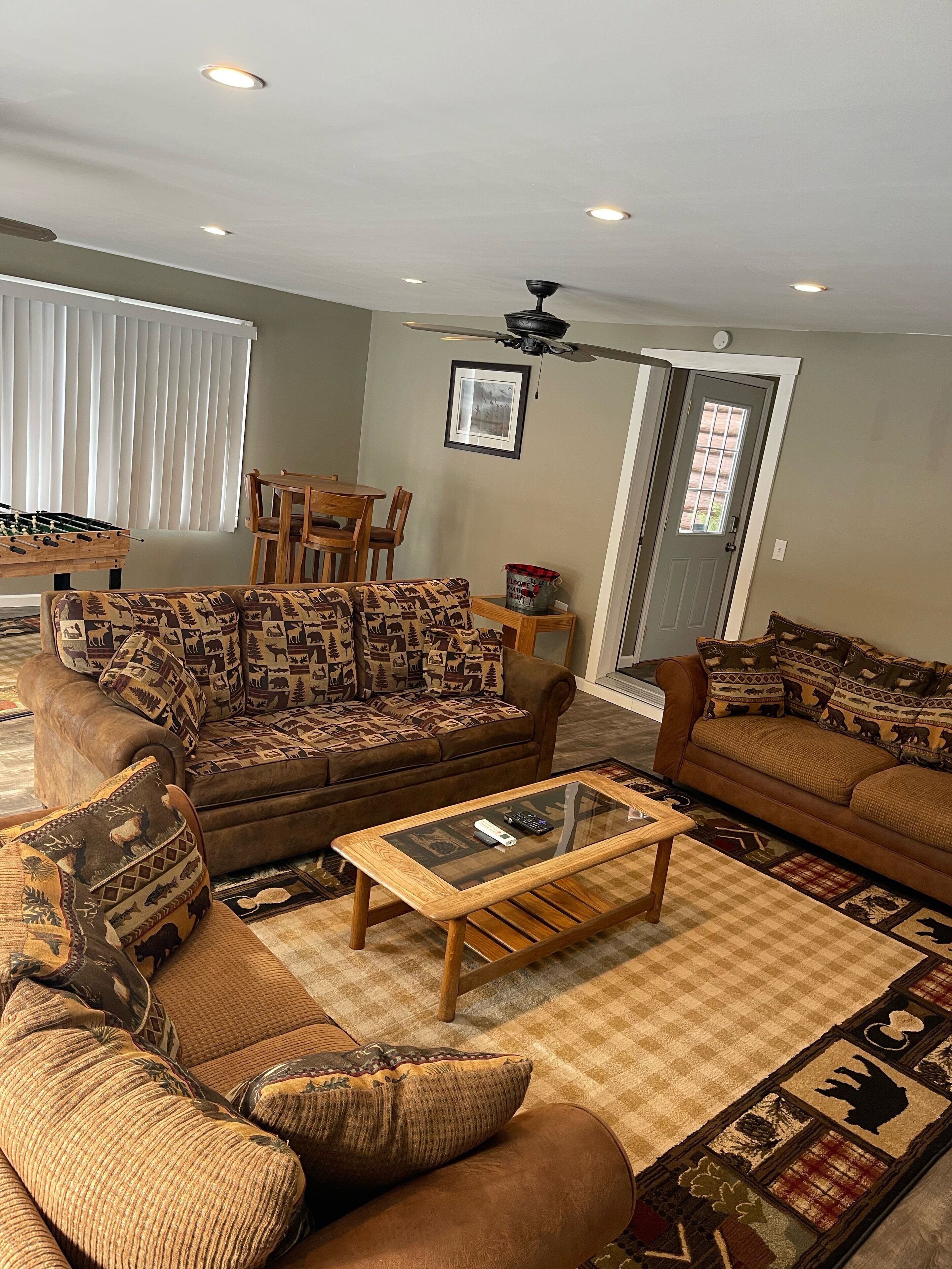 Rustic Country Cabin Newley renovated Country Cabin located near 5 lakes with easy access. Take a stroll on the many walking trails or even bring your ATV/ Snowmobile on an adventure. This home is a 2BDR/ 1BATH setup with 1 Queen bed, 1 bunk, and 2 pull out couch sleeping 8 people comfortable. This quaint charming home offers great indoor and outdoor relaxations and is only a short 10 minute drive to a local apple orchard. Keyless entry allows for a hassle free start to any vacation getaway. There is a sawmill in close location. However is not extremely loud.