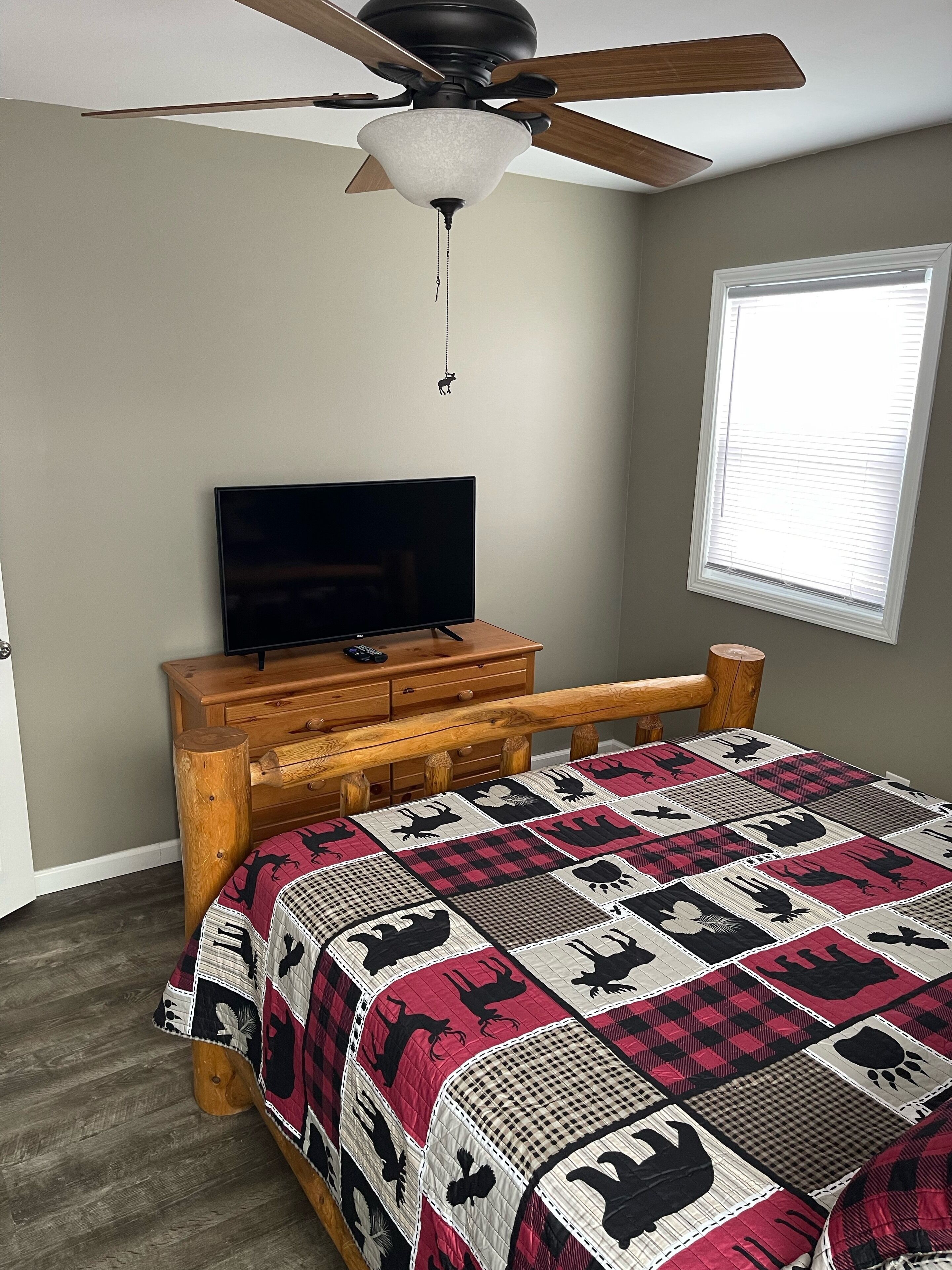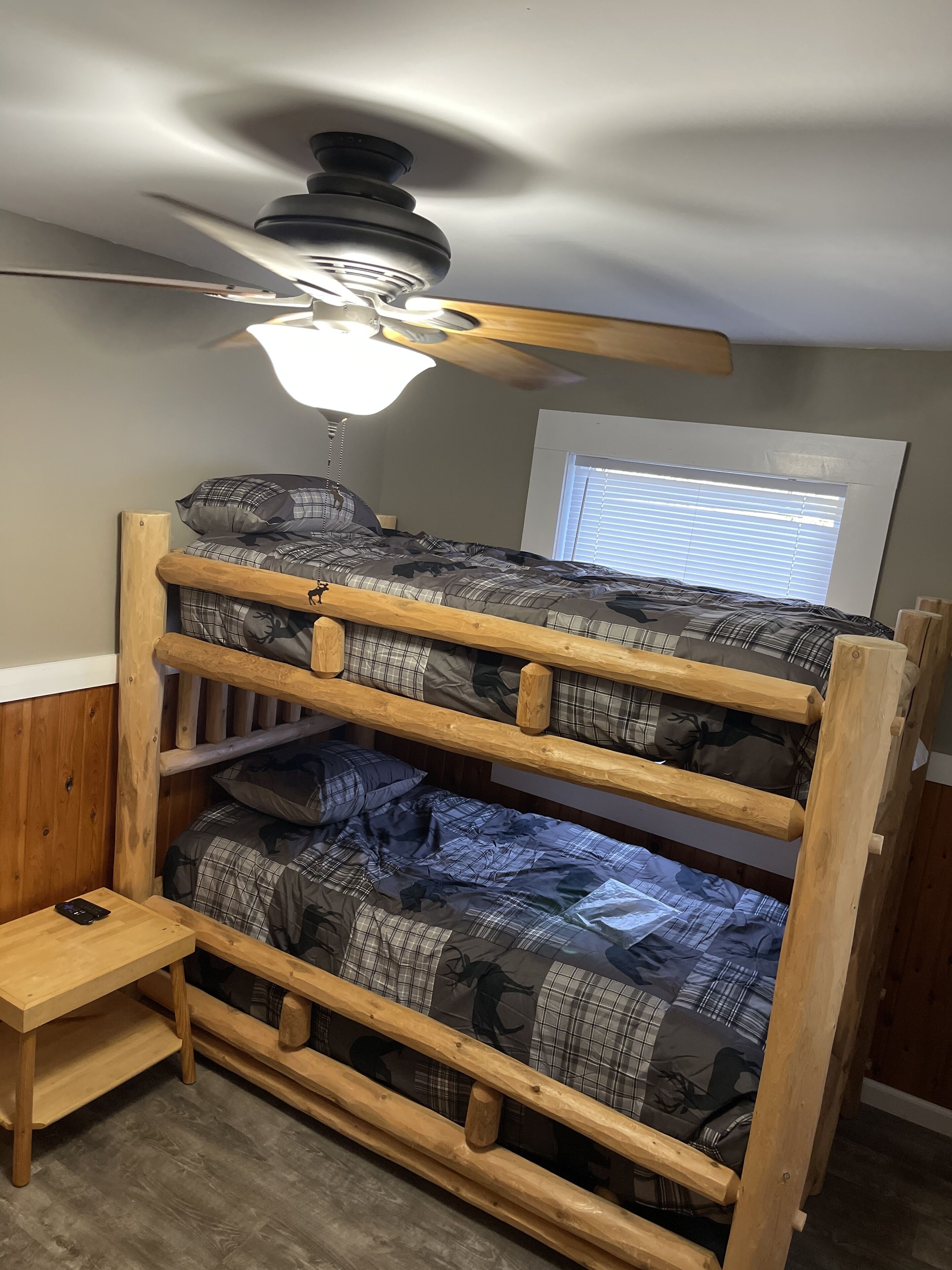 Rustic Country Cabin Newley renovated Country Cabin located near 5 lakes with easy access. Take a stroll on the many walking trails or even bring your ATV/ Snowmobile on an adventure. This home is a 2BDR/ 1BATH setup with 1 Queen bed, 1 bunk, and 2 pull out couch sleeping 8 people comfortable. This quaint charming home offers great indoor and outdoor relaxations and is only a short 10 minute drive...