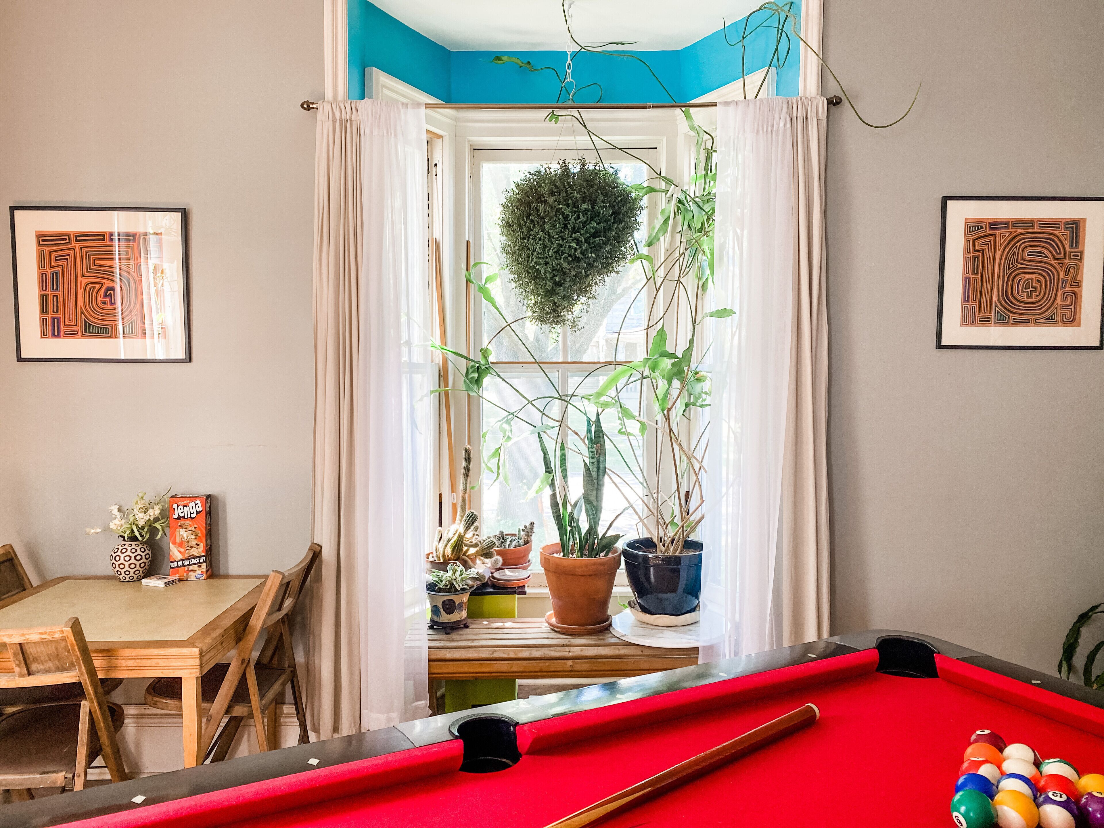 Spacious, Artsy, Historic Downtown Home Spacious, artsy home, dubbed the "Rooster House", is located just 2 blocks from the heart of downtown Lawrence. Our home is within walking distance of all downtown events, arts, music, and restaurants historic Lawrence has to offer.The spaceLocated on historic Rhode Island street, the house has free street parking as well as private alley parking, which comes in handy as many cars park on our block for downtown events. We are a 3 minute walk from the Granada, Replay Lounge, Bottleneck, and Jazzhaus. The Arts Center is around the corner, and just a block from that is the farmer's market which runs from early spring to late fall.The house is spacious and open with skylights in the kitchen. Located on the main floor is 1.5 bathrooms, 1 non-conforming bedroom with memory foam twin daybed mattress and pull out trundle, fully equipped kitchen, living area, and pool room. The second level has 2 bedrooms, the master with a king bed which overlooks Rhode Island street, and the second bedroom with a queen bed. The stairs are quite steep, as it is a preserved and historic staircase. Please note that there is no bathroom upstairs, although one of the bedrooms adjoins the main bathroom downstairs. Please consider this if you have mobility issues.The main floor has a spacious pool room and eating nook off of the living room for your entertainment. The living room has a comfy sectional, flat screen TV (equipped with 100 mbps internet and Amazon FireStick).Please note that this house is historic, and parts of the home are settling. The decor and furnishings have character and are not "just out of the package" quality. Each room has unique artwork from several local artists, you may find yourself feeling more like a townie than a guest of Lawrence when you leave.Guest accessGuests are welcome to the entire home, including the back porch and front porch. We ask that you stay out of the basement unless there is an emergency, as we use it for storage.Interaction with guestsWe are available for the duration of your stay via the Airbnb app or by phone call. We are happy to answer any questions you have regarding the house or general questions about your stay.Other things to noteThe house has a Ring Video Camera on the front porch for your safety and ours.No smoking in the house please. Smoking inside the property and/or strong secondhand smoke smell or any evidence of smoking (i.e. cigarette butts or ashes) in or around the house will result in an automatic extra $50 cleaning fee.Absolutely no parties on the premises. Failure to adhere will result in immediate eviction.Please be honest about how many people you plan on staying. More guests means more wear and tear on the property and higher water and energy bills. Open communication and honesty is what makes Airbnb a great resource for us all, and correct information ensures I can give you the high quality service you deserve.