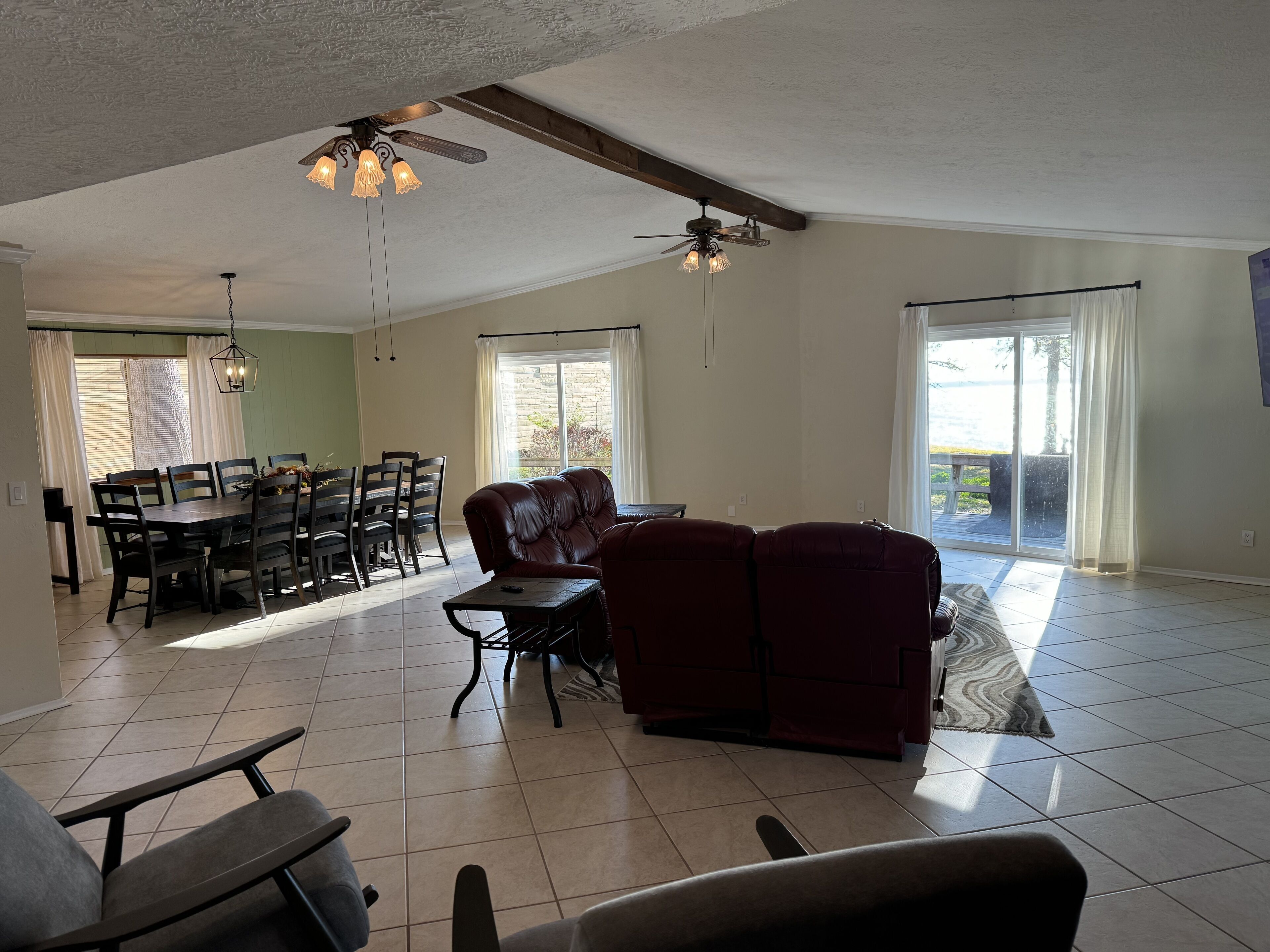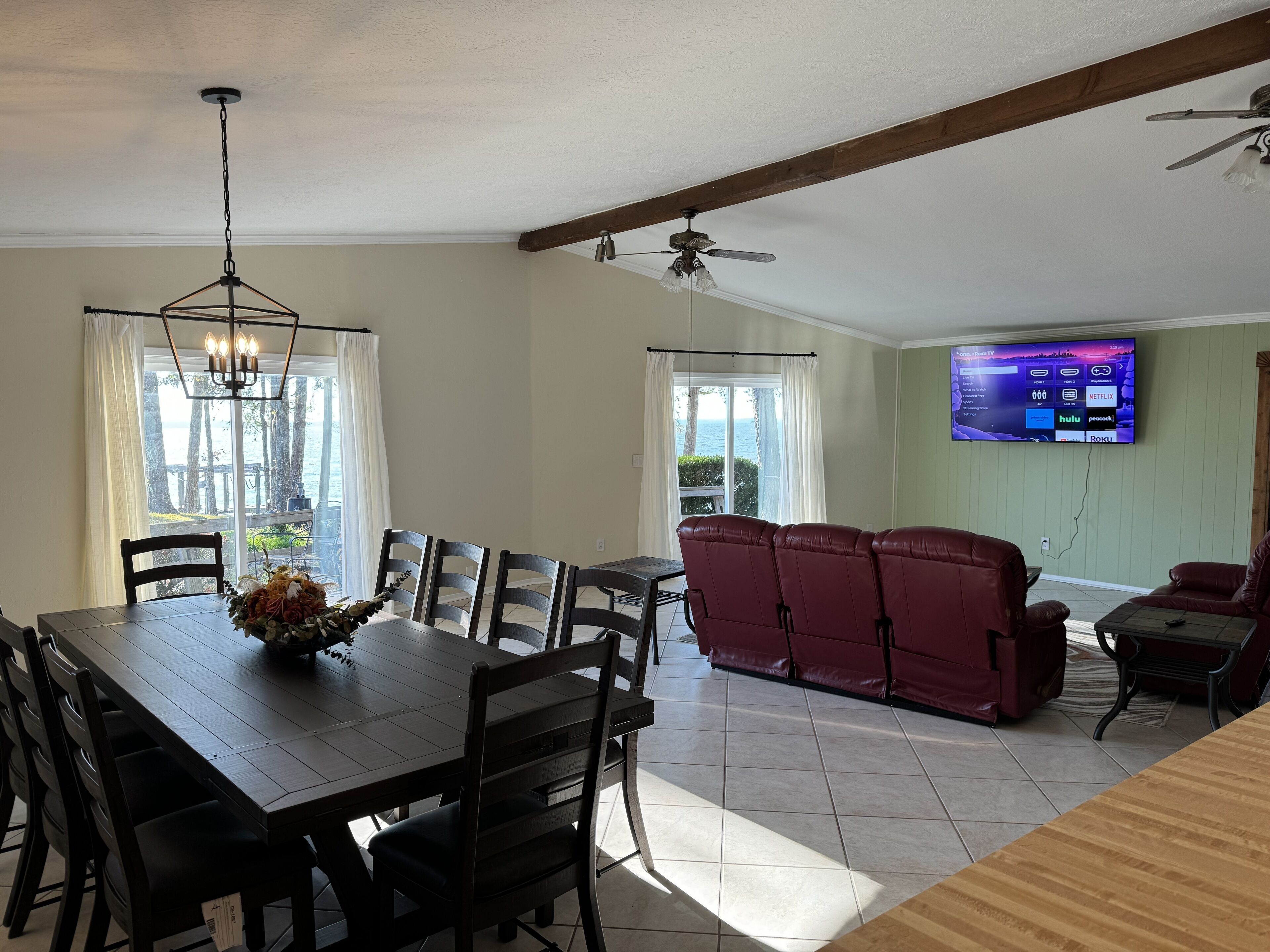 Lakefront Serenity Retreat- Pet friendly Uncover the serene comfort awaiting you in this generously appointed 4-bedroom, 3-bathroom retreat, where every detail is crafted to ensure your utmost relaxation. Step inside and be greeted by the spacious open-plan layout, effortlessly blending living, dining, and kitchen areas, creating an inviting atmosphere for gatherings and making memories that last a lifetime.As you explore, you'll find yourself drawn to the five strategically placed TVs throughout the home, offering entertainment options for every member of your group. Whether it's catching up on your favorite shows, hosting a movie night, or simply enjoying some downtime with your loved ones, these modern amenities add an extra layer of convenience and enjoyment to your stay.Venture outside and immerse yourself in the natural beauty that surrounds you. With 3.35 acres of pristine land to explore and 500 feet of private lakefront, there's no shortage of outdoor adventures to be had. Spend your days fishing off the dock, kayaking along the tranquil waters, or simply soaking up the sun while admiring the breathtaking views of Lake Livingston and the picturesque Pine Island.As the day comes to a close, retreat to one of the four well-appointed bedrooms, each offering a peaceful sanctuary to rest and rejuvenate after a day of exploration. With comfortable furnishings, plush bedding, and ample space to unwind, you'll find yourself drifting off to sleep with ease, ready to awaken refreshed and ready to take on whatever the day may bring.With full access to the entire house and property, including all the amenities and comforts it has to offer, your stay promises to be nothing short of remarkable. Whether you're seeking a quiet escape with family or a fun-filled getaway with friends, this lakeside retreat offers the perfect blend of relaxation and entertainment for an unforgettable experience.Our property is equipped with a Ring Doorbell for added security and convenience. It's only monitored for arrival and departure.