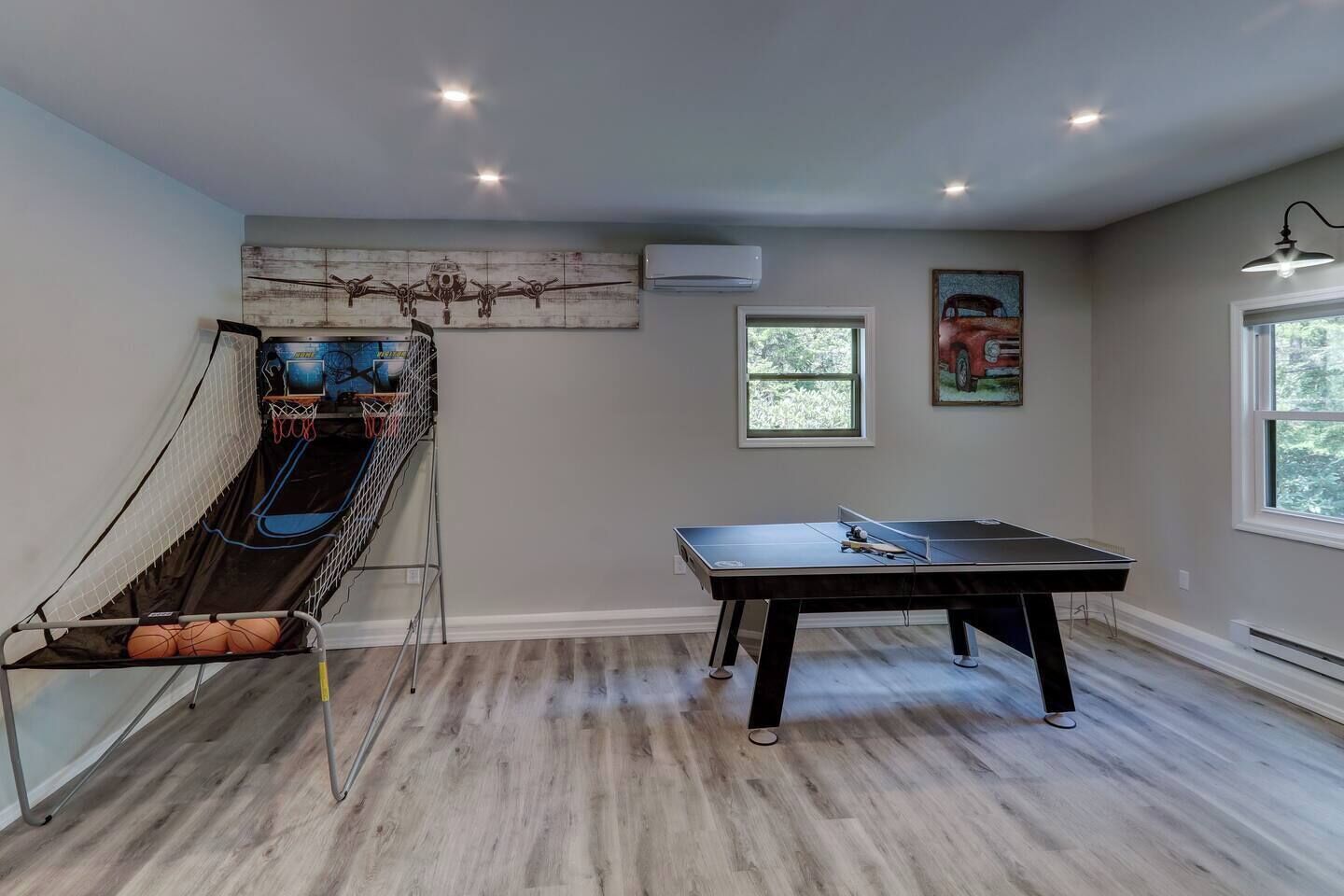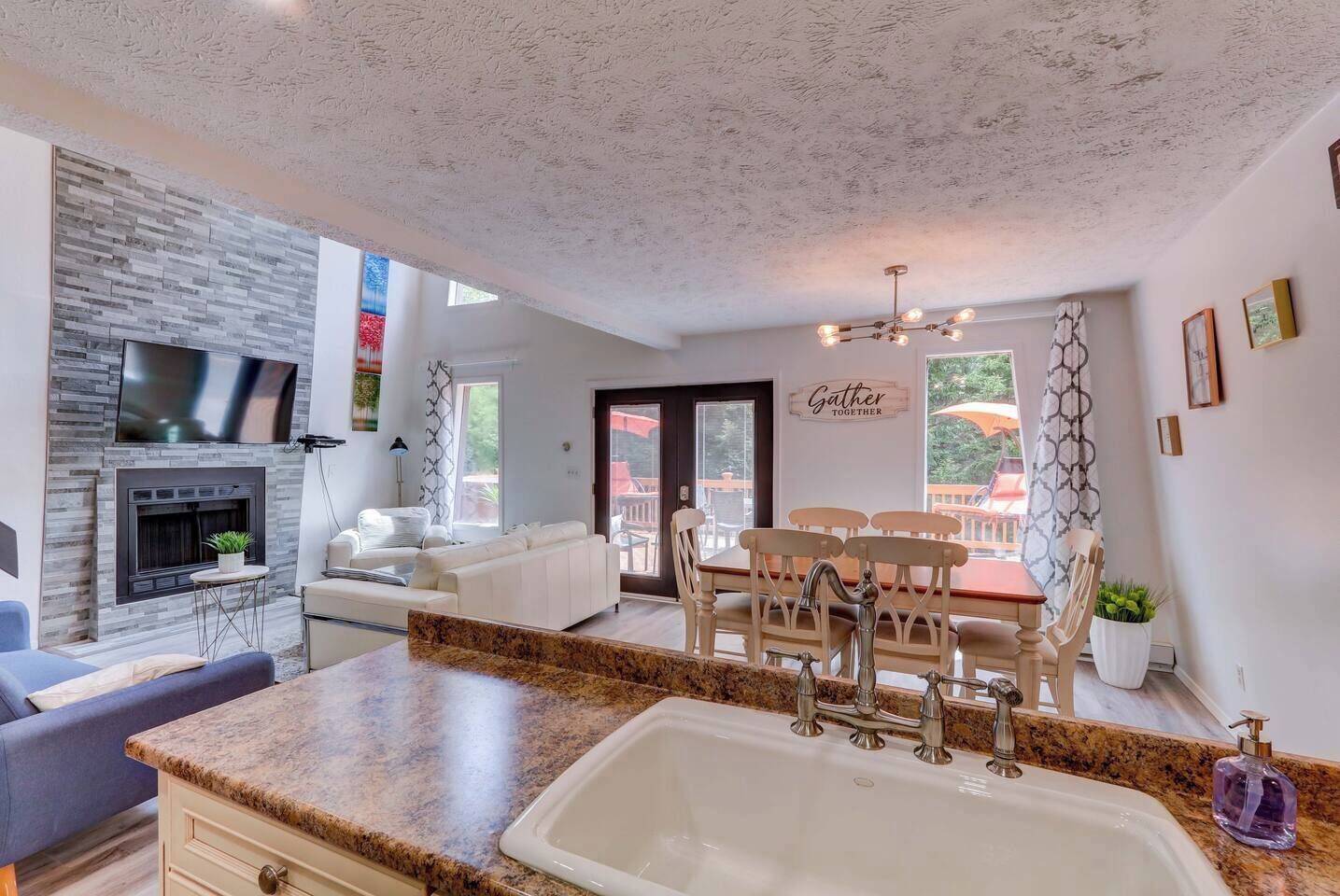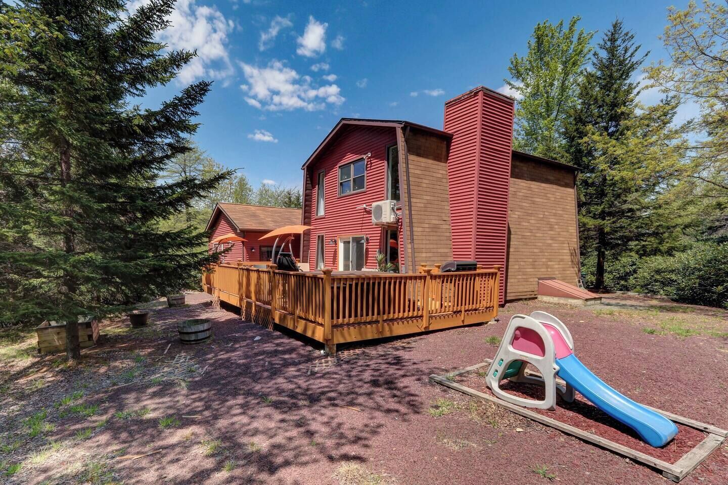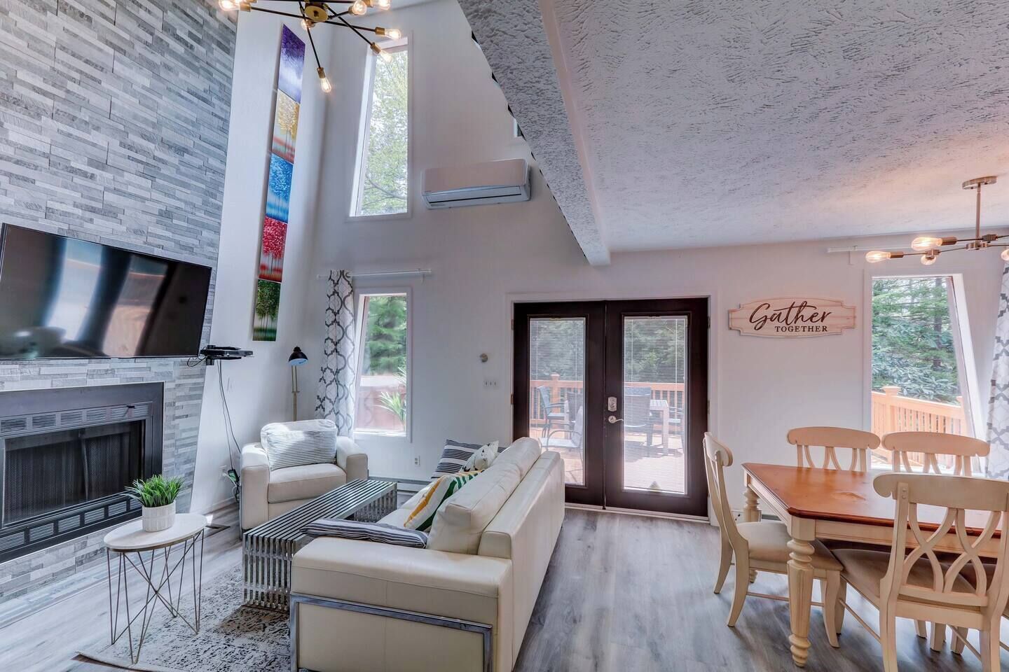 Super Private! Modern Farmhouse Surrounds by Woods! No Cleaning Fee! Welcome to your ultimate Pocono retreat at our stunning modern farmhouse! Nestled on 2 serene wooded acres, this beautifully renovated property promises an unforgettable escape for your group.Step inside and discover a world of entertainment in our newly added game room. With theater-style seating for 4, a ping pong table, and arcade-style basketball and roll-and-score games, fun-filled evenings are guaranteed! And when it's time to unwind, slip into the inviting hot tub on the deck for a soothing soak under the stars.Embrace the great outdoors in our outdoor lounge seating, perfect for al fresco meals and relaxed conversations. Inside, the country modern flair continues in all 5 bedrooms, ensuring a comfortable and stylish stay for your entire party.Our space boasts updated bathrooms, including a tub on the first floor and a walk-in shower on the second, offering both convenience and luxury. And with an open-concept layout in the kitchen, dining room, and living room, you'll never miss a moment of togetherness with friends and family.Every corner of our farmhouse is thoughtfully designed and inspired by modern country aesthetics. From the charming decor to the sweeping views of nature from every window (keep an eye out for deer!), every detail contributes to the ambiance of relaxation and rejuvenation.Whether you're seeking a simple weekend getaway or a longer vacation, our farmhouse is the perfect sanctuary for your escape. So why wait? Book now and start planning your unforgettable Pocono adventure!Other things to noteMinimum 3 day booking required for major holiday weekends. Labor Day, Independence Day, Thanksgiving, and Memorial Day.