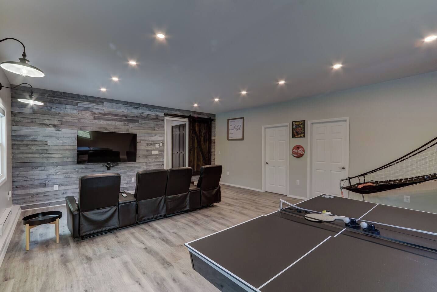 Super Private! Modern Farmhouse Surrounds by Woods! No Cleaning Fee! Welcome to your ultimate Pocono retreat at our stunning modern farmhouse! Nestled on 2 serene wooded acres, this beautifully renovated property promises an unforgettable escape for your group.Step inside and discover a world of entertainment in our newly added game room. With theater-style seating for 4, a ping pong table, and ar...