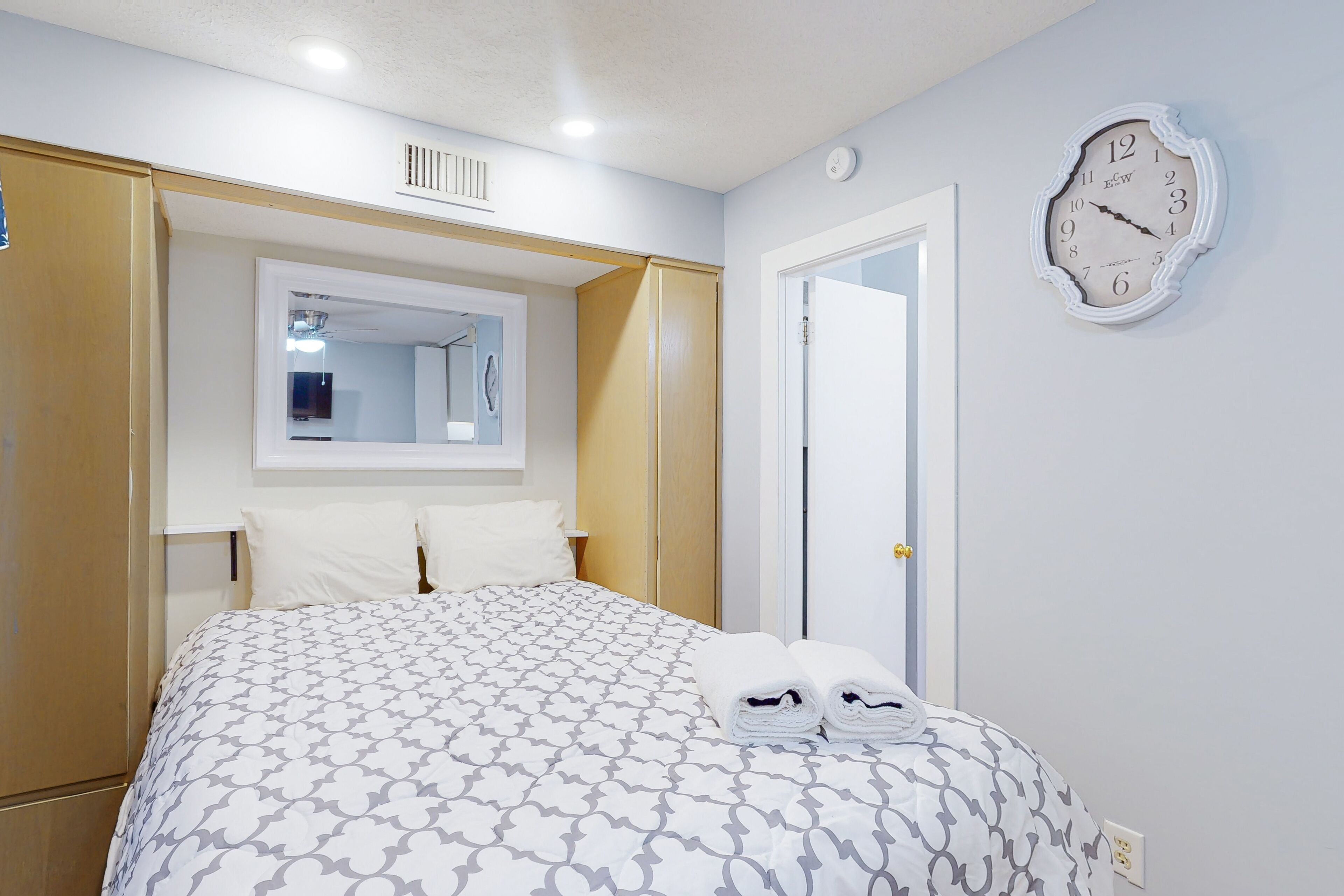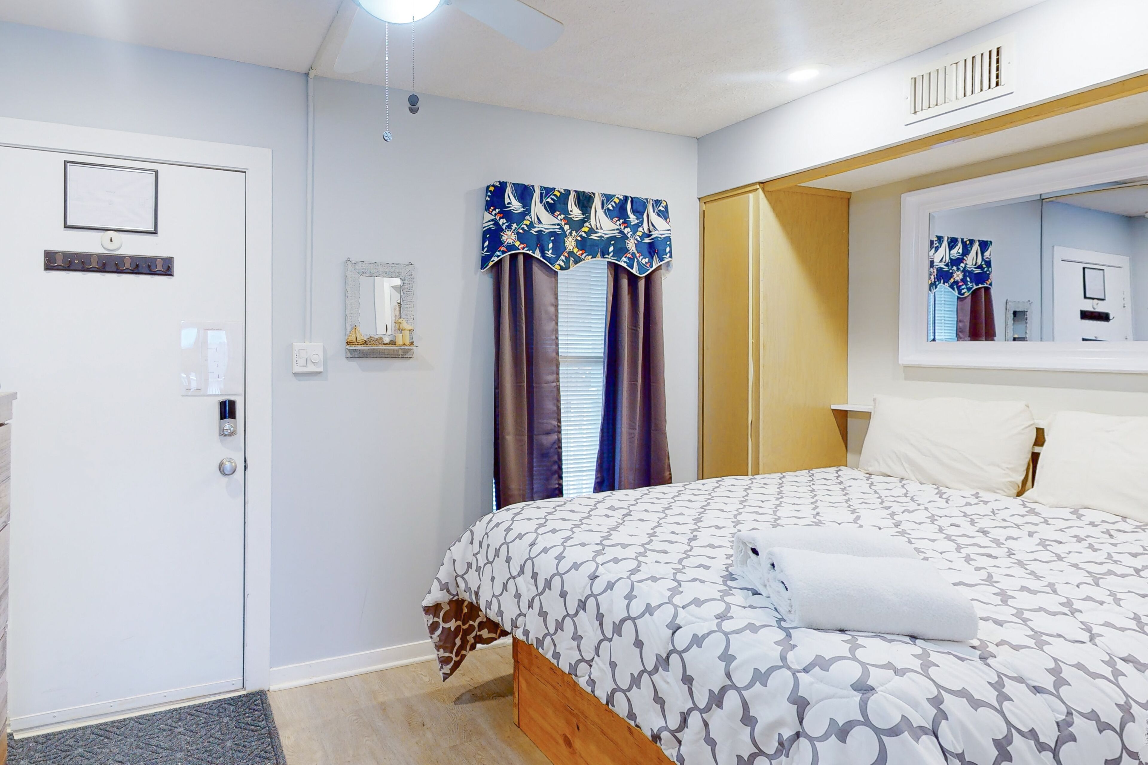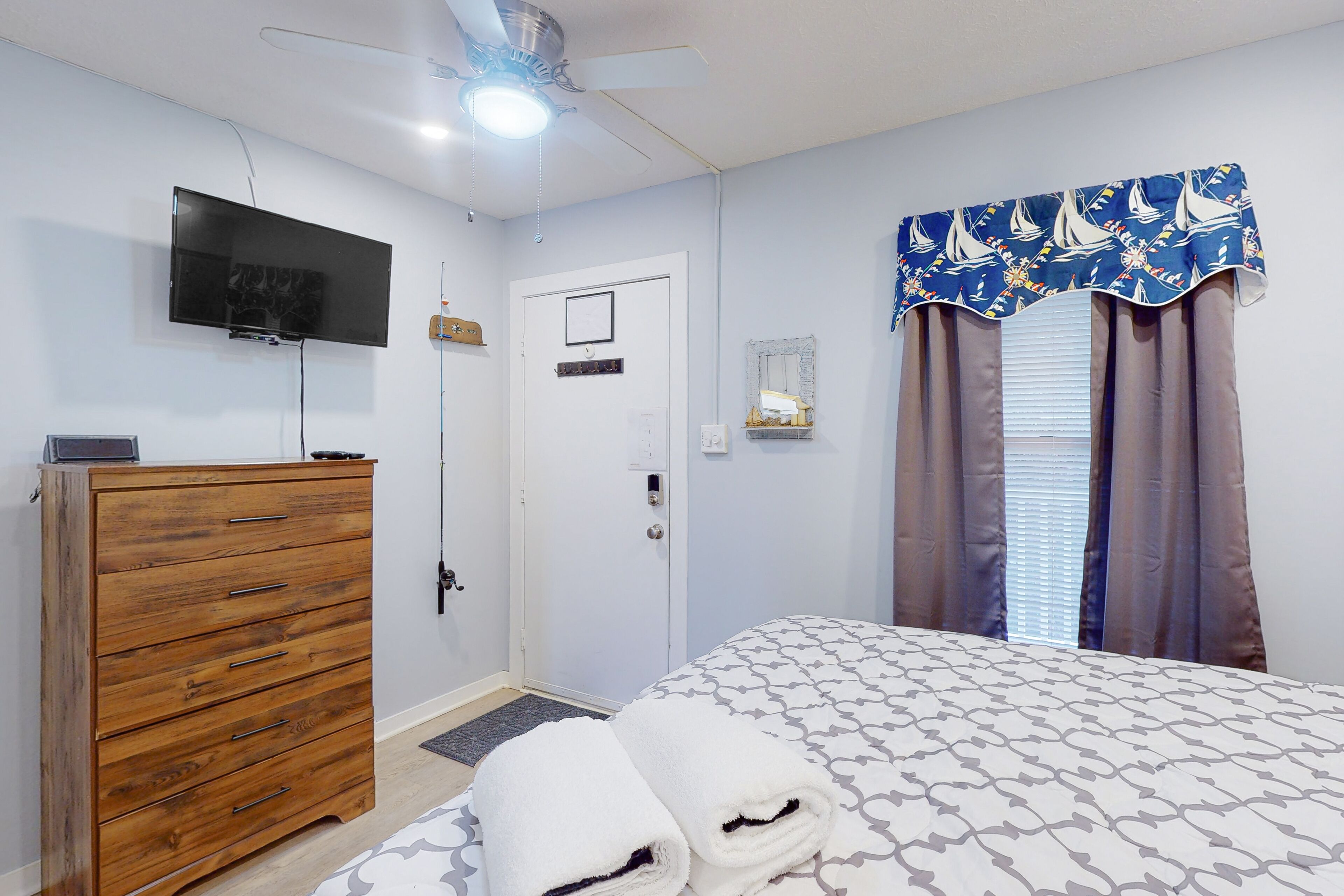 Waterfront condo with lake-view deck, tennis court & pool - dog-friendly Sunset LandingOur calendar is updated in real-time & our nightly rates are accurately displayed. Simply enter your desired dates and click 'Book Now!'This condo is nicely decorated and has all the comforts of home. The bedroom with a TV leads through to the kitchen and bath. The galley kitchen is equipped with an efficiency stove, refrigerator, and microwave. A living area offers a sofa bed, a TV, movies, and board games. Walk out to a deck overlooking Smith Mountain Lake!This condo is located in Striper's Landing, which offers a community swimming pool with a kiddy pool open seasonally from Memorial Day to Labor Day, tennis courts, boat trailer storage and a boat launch, a cabana, picnic tables, and a community grill. THINGS TO KNOWMax occupancy is two people over the age of two years old, per county and state law.This property is managed by Vacasa Virginia LLC.If you are bringing a dog on your trip, the pet fee is already included in your quote when selecting ‘Yes’ to pets. No more dogs are allowed.Parking notes: There is free parking available for 2 vehicles.Damage waiver: The total cost of your reservation for this Property includes a nightly damage waiver fee, plus tax if applicable (the “Damage Waiver”). (A discount may be applied for stays of 28 nights or longer, if permitted.) The Damage Waiver covers you for up to $3,000 of accidental damage to the Property or its contents (such as furniture, fixtures, and appliances) as long as you report the incident to the host prior to checking out. The Damage Waiver fee eliminates the need for a traditional security deposit.More information can be downloaded from the "Rental Agreement" on the checkout page.Due to local laws or HOA requirements, guests must be at least 25 years of age to book. Guests under 25 must be accompanied by a parent or legal guardian for the duration of the reservation.