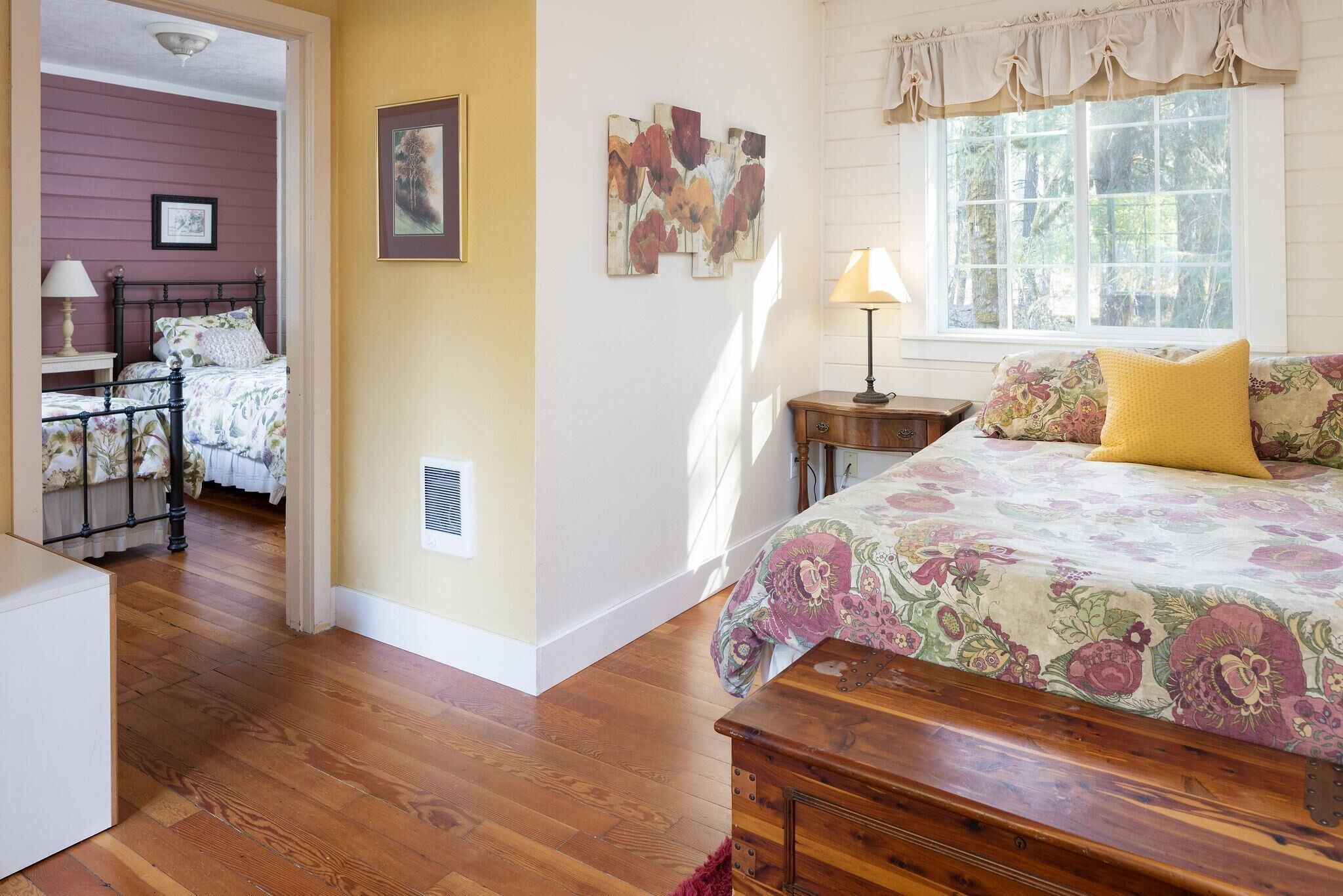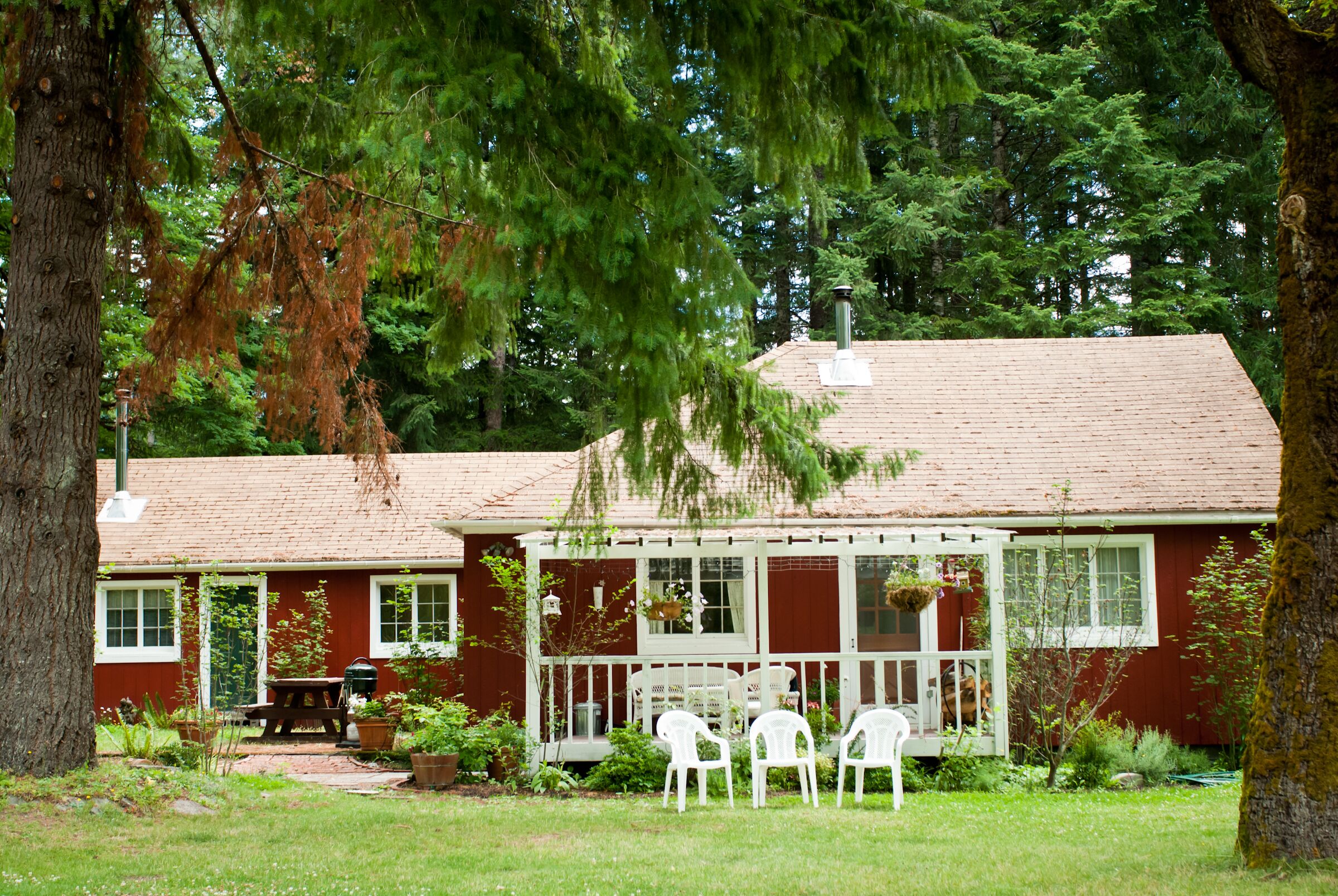 The Farmhouse on 8 acres This charming 4-bedroom house is the perfect place for friends and family to gather. Put your feet up and relax by the cozy wood stove with a warm cup of hot chocolate or your favorite Northwest coffee blend. Welcome to Moon Mountain! The scenery in Washington State is spectacular and Mt. Rainier National Park (The Crown Jewel) is a 15-minute drive to the Stevens Canyon Entrance from Moon Mountain. Surrounded by the Gifford Pinchot National Forest, a 45-minute drive to Mt. St. Helens National Monument and a 25-minute drive to White Pass Ski Area. Enjoy a two-mountain vacation from our location and see both Mt. Rainier and Mt. St. Helens. We have three cabin rentals on 8 acres with the most beautiful park-like setting. Each cabin is privately situated with shared common areas; a community firepit, a Koi Pond and big fields to play outdoor games with your family, friends, or your dog. Each cabin has its own picnic area complete with firepit, lawn chairs and picnic table. Our cabins are equipped with everything you need to enjoy your stay with us. Fully equipped kitchens, linens, bath toiletries, BBQ’s, board games, books, cable TV, DVD player, shared hot tub, and the beautiful outdoors.Living in the mountains can have challenges that should be expected by guests. In the event of inclement weather, we will do out best to keep the driveways and walkways clear of snow as quickly as possible. In case of a power outage, we have a generator to keep the well pump going so that the cabins will have running water until the power is restored. We do not have a generator to provide electricity to the cabins but each cabin has a wood stove and we will provide firewood in case of a power outage. We do not refund because of acts of nature including storms, air quality from forest fires, etc. that are out of our control. We will do our best to make your stay as comfortable as possible.