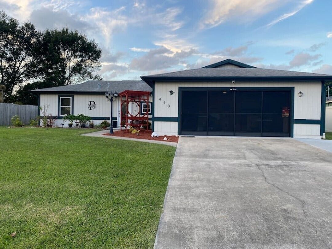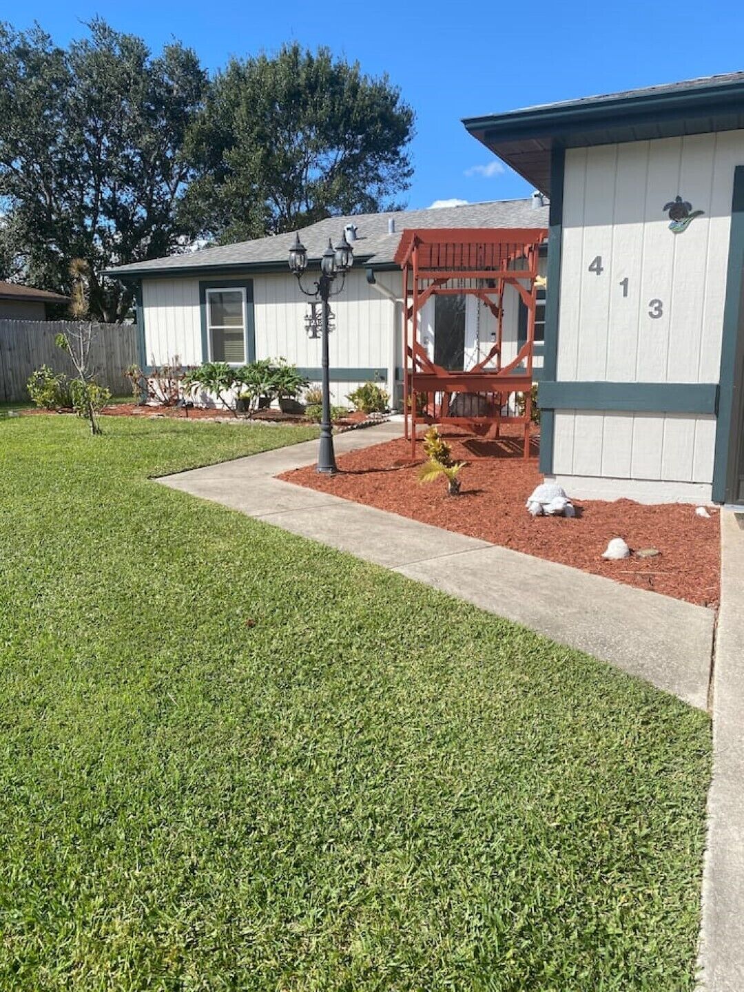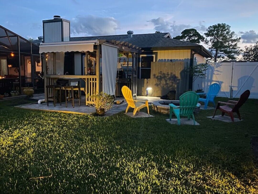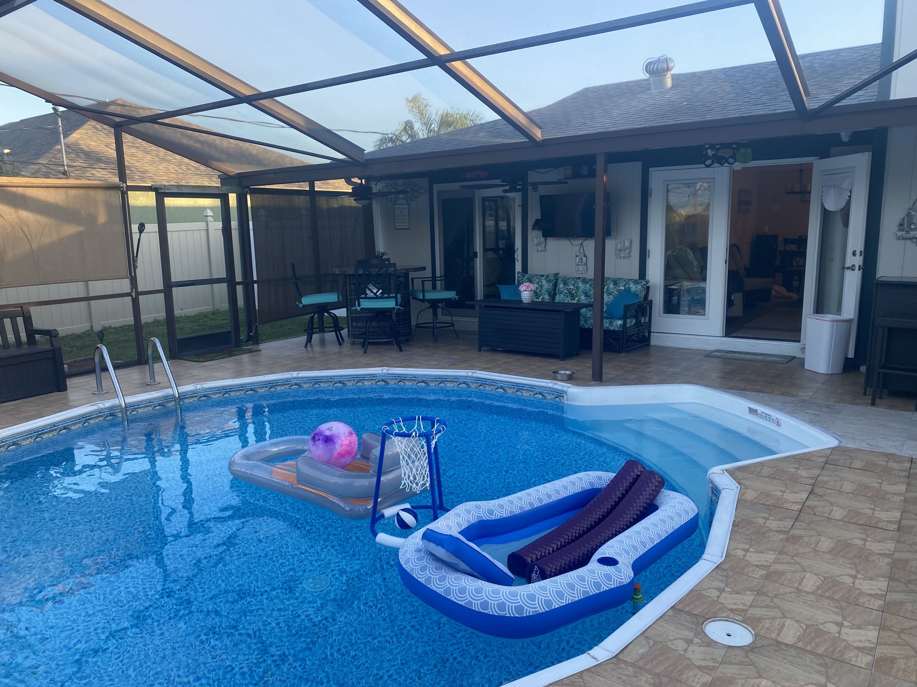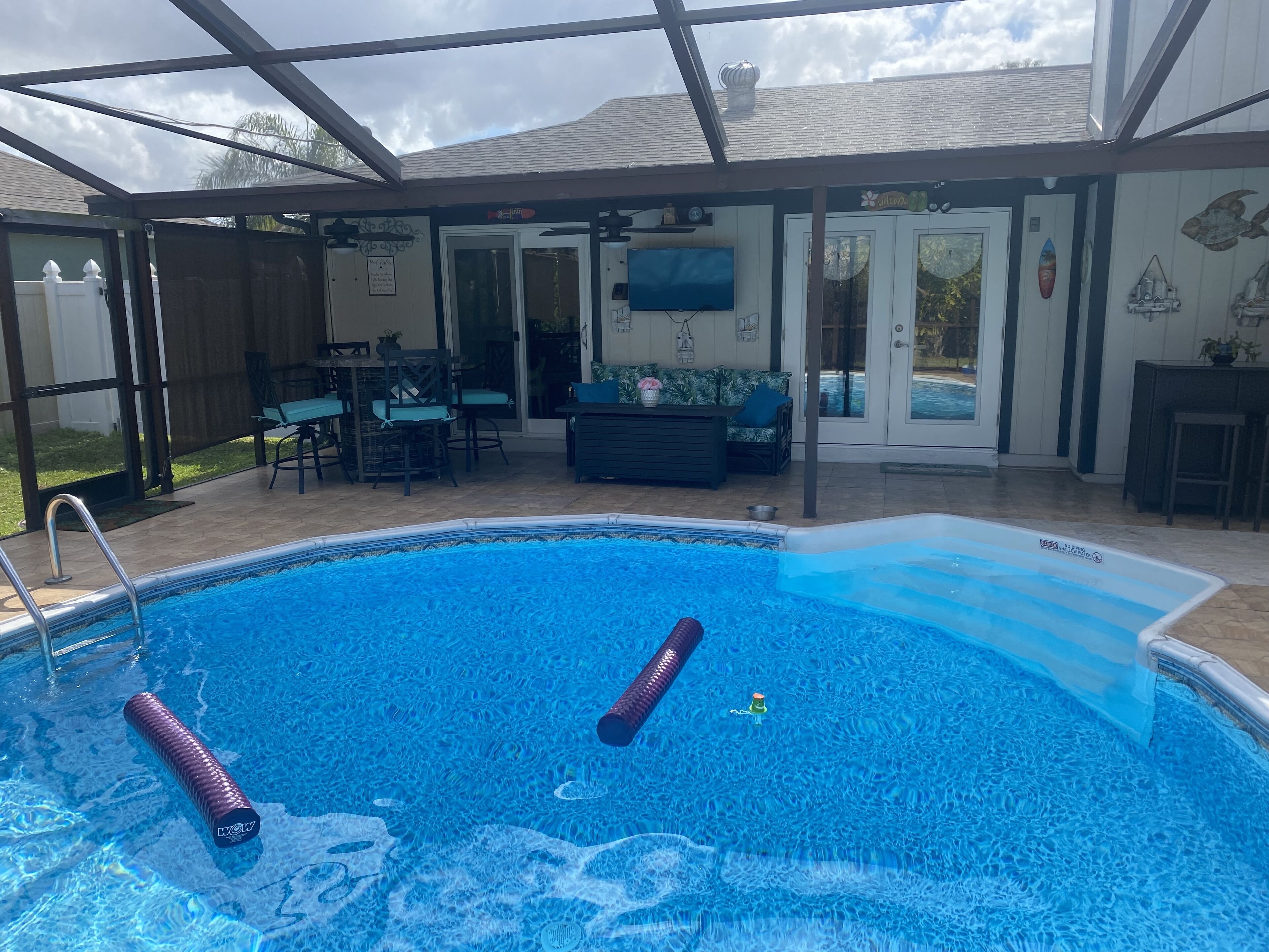 Cozy home complete with pool and outdoor living Cozy home in Palm Bay Florida. Close to shopping, restaurants, hospitals, beaches and highways. Easy drive to Florida attractions such as Disney World and Sea world. Visit near by Kennedy Space Center. Plenty of river front and beach front restaurants within reach.The spaceStep out of the living room thru French doors onto the pool deck inside the screen enclosure for bug free outdoor living. Enjoy the outdoor bar and grill under the pergola just steps away from the pool area. While indoors relax in the cozy open living space.Guest accessYou may access the entire home with the exception of the locked cabinets in the garage.Other things to noteThe third bedroom is set up as useable office space and has a sleeper/sofa.