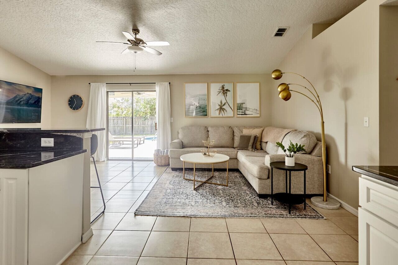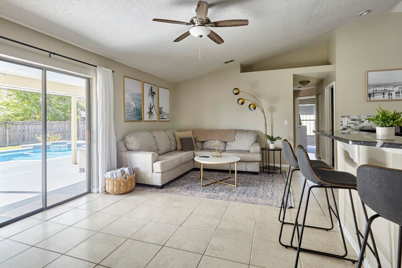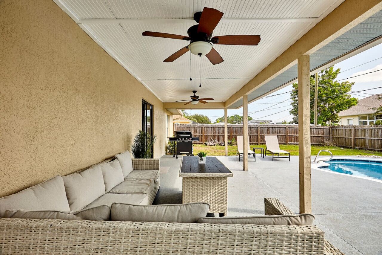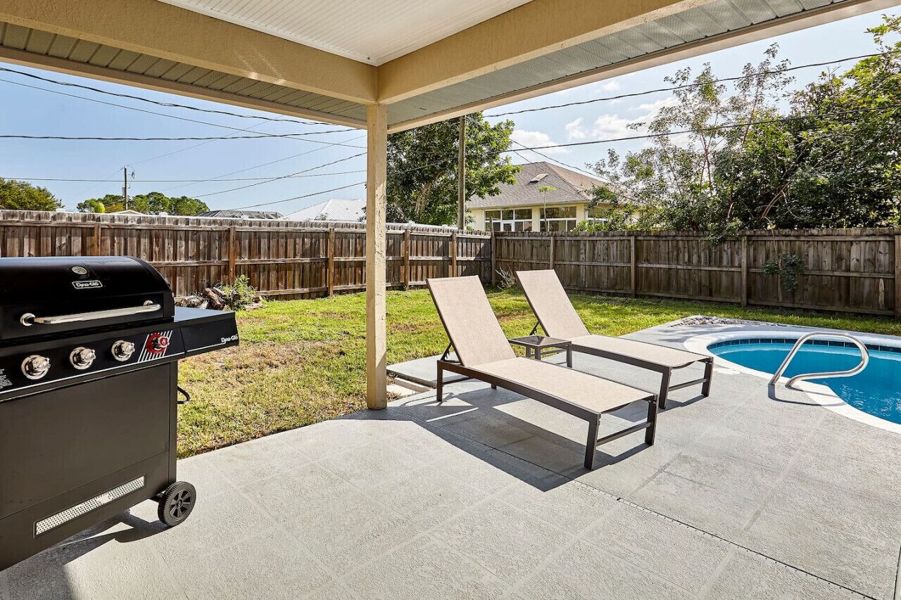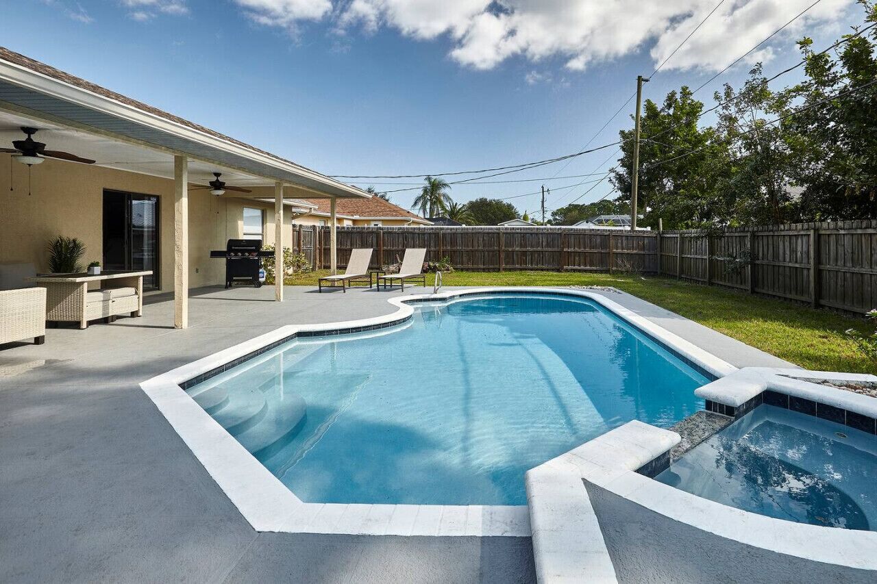 Lovely 3-Bedroom Home with Pool in Palm Bay! Forget your worries in this spacious and serene vacation home with a heated swimming pool. Just 30 minutes away from Melbourne Beach!Welcome to your private oasis in Palm Bay, FL! This stunning 3-bedroom, 2-bathroom home which can accommodate up to 8 guests boasts everything you need for the ultimate vacation. Prepare delicious meals in the fully equipped kitchen, enjoy delightful dinners in the spacious dining area, and unwind in the 2 cozy living rooms. Refresh yourself in the private swimming pool, bask in the sun at the pool lounge area, and sizzle up a BBQ feast on the grill. With a laundry room for your convenience, this home has it all! Your dream getaway awaits! Book now and experience luxury and comfort like never before.• GUESTS MUST FILLOUT ONLINE CHECK-IN FORM PRIOR TO ARRIVAL TO RECEIVE CHECK-IN INFORMATION• No Parties or Loud Events. You will be asked to leave immediately if this rule is broken• Check-in: 3 PM onwards• Check-out: 10 AM• Park within the driveway or your car will be towed• Observe quiet hours from 10 PM to 9 AM• Clean as you go• Do not damage the property• Always prioritize safety• Clean grill after use ($50 additional fee if left dirty)• We don't allow cats due to family allergies• Pick-up after your pets• Pets are not allowed on furniture and bed• Always put pets on leash when outsidePool Rules:• Guests use the swimming pool at their own risk• Do not touch or adjust the pool equipment ($500 will be charged if so)• No diving & running in the pool area• ALWAYS supervise kids when swimming• Do not bring glass or sharp objects in the pool areaAdditional Note : We would like to inform that for refunds, the amount will depend on the total payout that was received less applicable fees (Platform Service Fees and Processing Fees (Stripe)