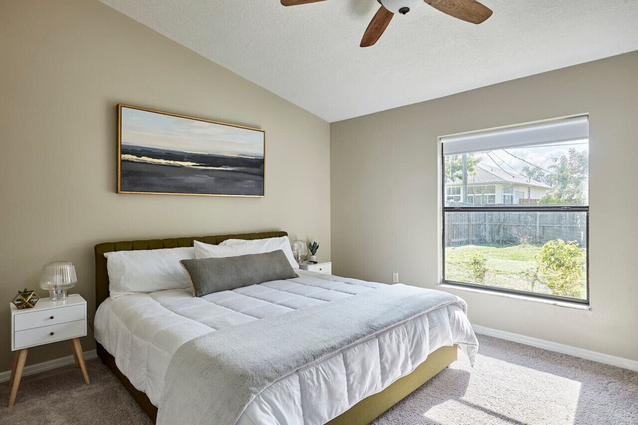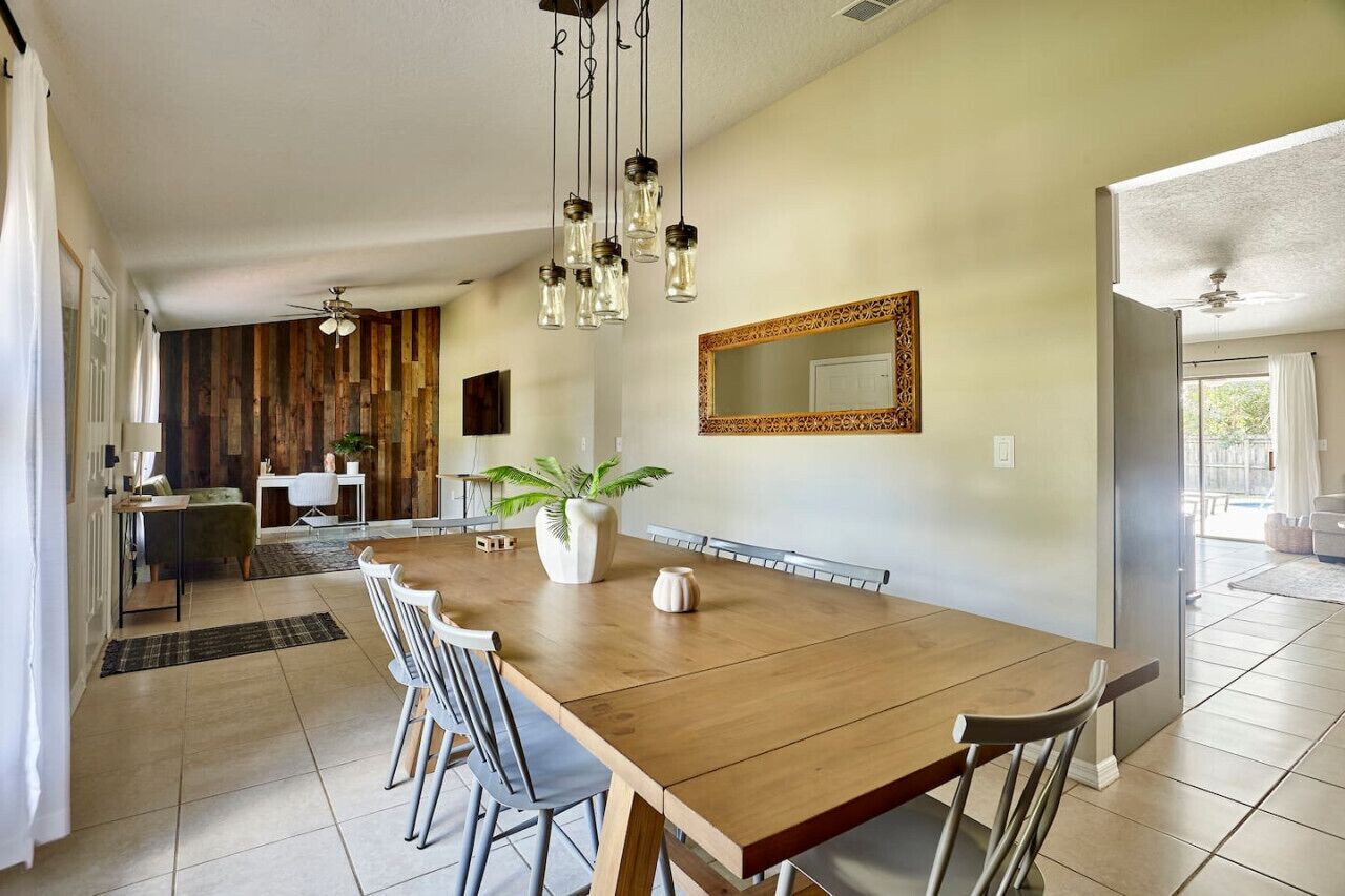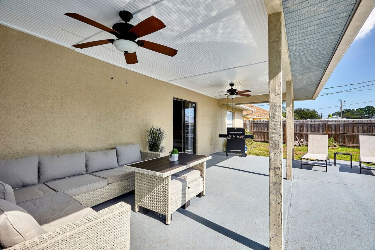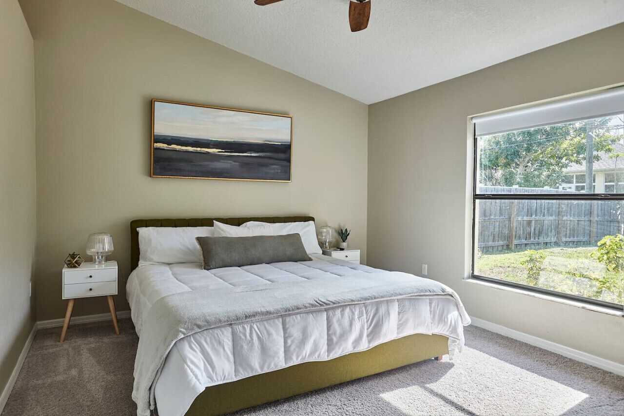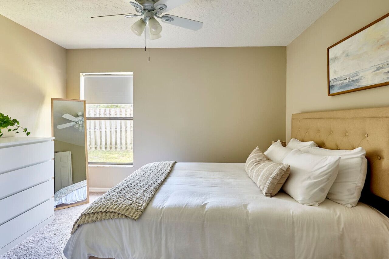 Lovely 3-Bedroom Home with Pool in Palm Bay! Forget your worries in this spacious and serene vacation home with a heated swimming pool. Just 30 minutes away from Melbourne Beach!Welcome to your private oasis in Palm Bay, FL! This stunning 3-bedroom, 2-bathroom home which can accommodate up to 8 guests boasts everything you need for the ultimate vacation. Prepare delicious meals in the fully equipped kitchen, enjoy delightful dinners in the spacious dining area, and unwind in the 2 cozy living rooms. Refresh yourself in the private swimming pool, bask in the sun at the pool lounge area, and sizzle up a BBQ feast on the grill. With a laundry room for your convenience, this home has it all! Your dream getaway awaits! Book now and experience luxury and comfort like never before.• GUESTS MUST FILLOUT ONLINE CHECK-IN FORM PRIOR TO ARRIVAL TO RECEIVE CHECK-IN INFORMATION• No Parties or Loud Events. You will be asked to leave immediately if this rule is broken• Check-in: 3 PM onwards• Check-out: 10 AM• Park within the driveway or your car will be towed• Observe quiet hours from 10 PM to 9 AM• Clean as you go• Do not damage the property• Always prioritize safety• Clean grill after use ($50 additional fee if left dirty)• We don't allow cats due to family allergies• Pick-up after your pets• Pets are not allowed on furniture and bed• Always put pets on leash when outsidePool Rules:• Guests use the swimming pool at their own risk• Do not touch or adjust the pool equipment ($500 will be charged if so)• No diving & running in the pool area• ALWAYS supervise kids when swimming• Do not bring glass or sharp objects in the pool areaAdditional Note : We would like to inform that for refunds, the amount will depend on the total payout that was received less applicable fees (Platform Service Fees and Processing Fees (Stripe)