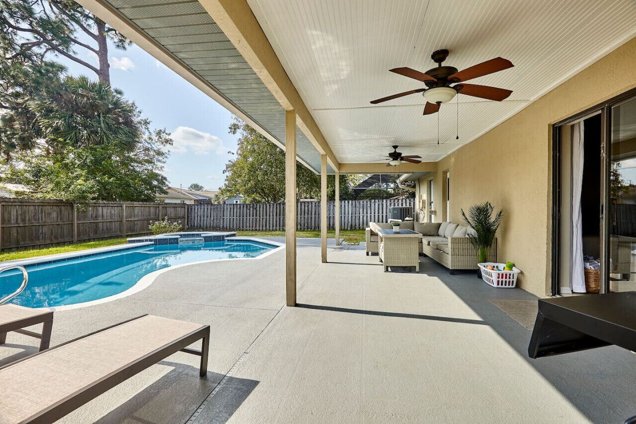Lovely 3-Bedroom Home with Pool in Palm Bay! Forget your worries in this spacious and serene vacation home with a heated swimming pool. Just 30 minutes away from Melbourne Beach!Welcome to your private oasis in Palm Bay, FL! This stunning 3-bedroom, 2-bathroom home which can accommodate up to 8 guests boasts everything you need for the ultimate vacation. Prepare delicious meals in the fully equipp...