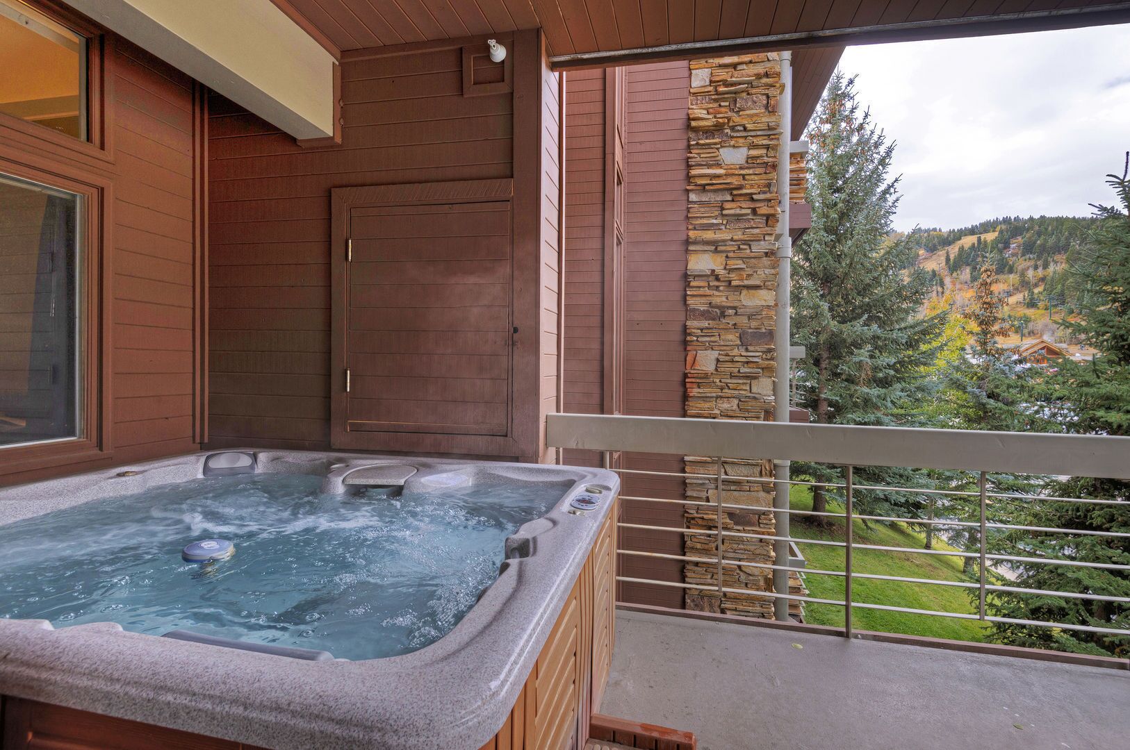Powder Run Condo - Steps Deer Valley Skiing - Private Hot Tub **Professionally Managed by Park City Host Vacation Rentals**Welcome to our 2 Bedroom, 2.5 Bathroom Property in Lower Deer Valley!** SUMMER RENTERS -- NO AC at this location ****PROPERTY OVERVIEW** Powder Run has an incredibly desirable location in lower Deer Valley – an easy walk to the slopes at the Snow Park base, with the Carpenter Express and the Silver Lake Express, as well as two beginner lifts near the ski school meeting point. This two bedroom, two and a half bathroom unit offers sweeping spectacular views from every angle in every season, from the second you walk through the door. The open-layout kitchen has been recently updated and features granite countertops and stainless steel appliances, as well as a six-person dining room table. The dining area opens up into the living space, where you'll be treated to those stunning mountain views from your own private patio as well as your private outdoor hot tub!Each bedroom has its own separate bathroom. The countertops in all the bathrooms are granite as well, and each bathroom has a stand up shower. If you're looking for affordable lodging near Deer Valley but don't want to have to hop on a shuttle, this unit is the perfect place for you!**BEDROOM LAYOUT**Master Bedroom: Experience luxury in the spacious Master Bedroom featuring a King-sized bed and a full en-suite bathroom, providing privacy and comfort during your stay.Second Room: Enjoy versatility and ample sleeping space with a comfortable Twin bed along with an additional Twin bed. The room also boasts its own full bathroom, ensuring convenience and relaxation for guests.**LOCATION**Located on Deer Valley Drive in the Snow Park area, this condo is a perfect base for skiing, hiking and biking either Deer Valley or Park City Mountain. It's a short walk to Deer Valley base. Or jump on the free bus that stops out front to Deer Valley Base (seconds away) or Park City's Main Street and Mountain base (only a 5-minute drive). **GETTING AROUND**The free Park City Bus service has a bus stop a few steps away from the front of the property so getting anywhere around town is incredibly convenient.**CONTACT**Need anything during your stay? Park City Host will assist you with anything you need during your stay.