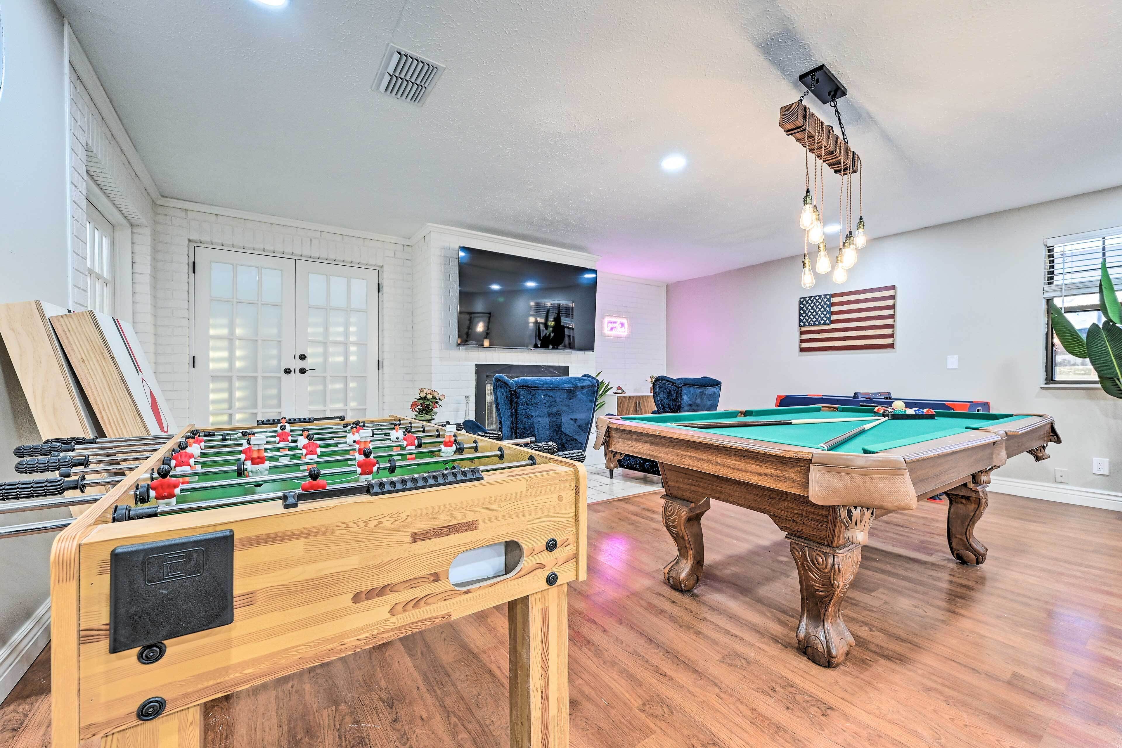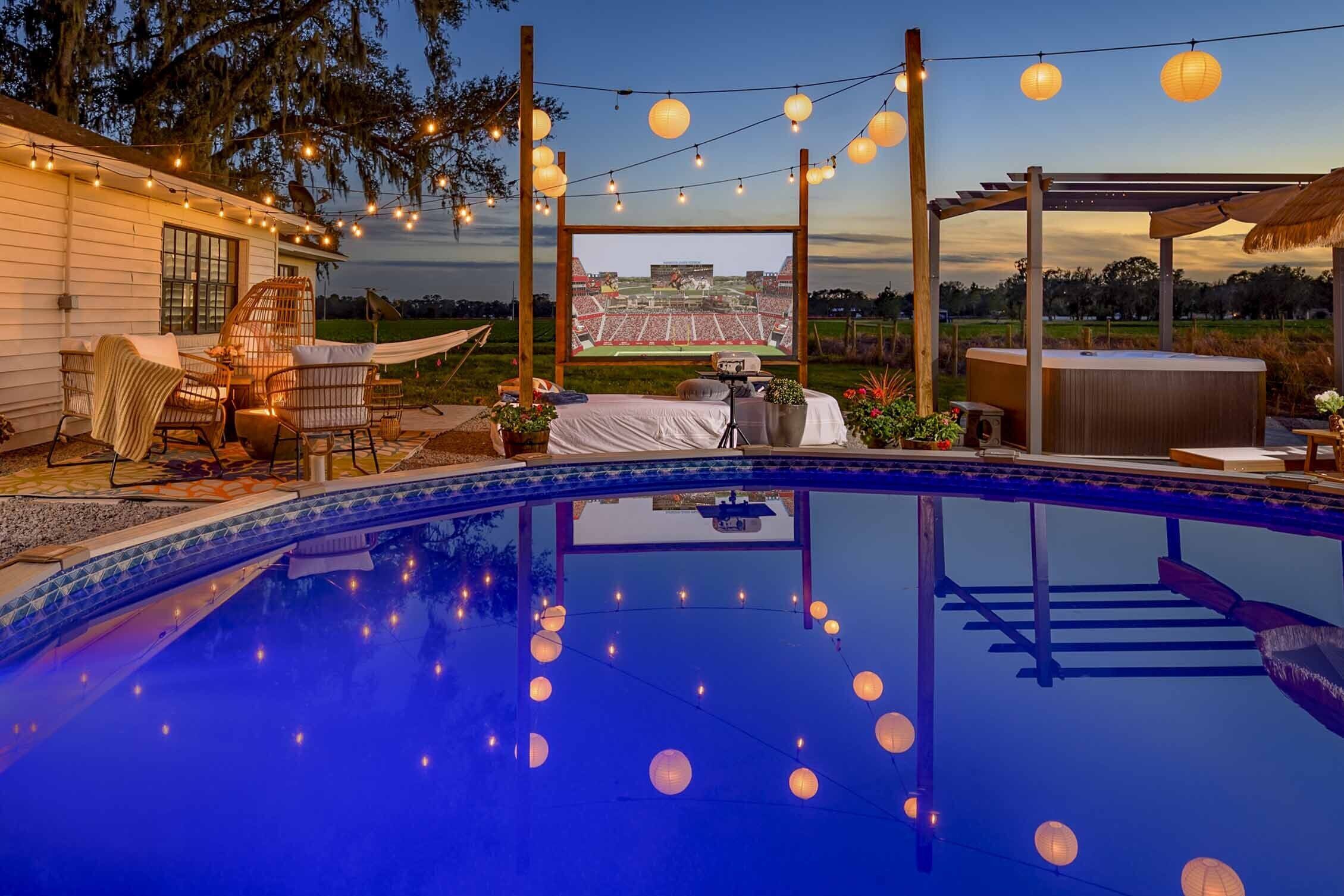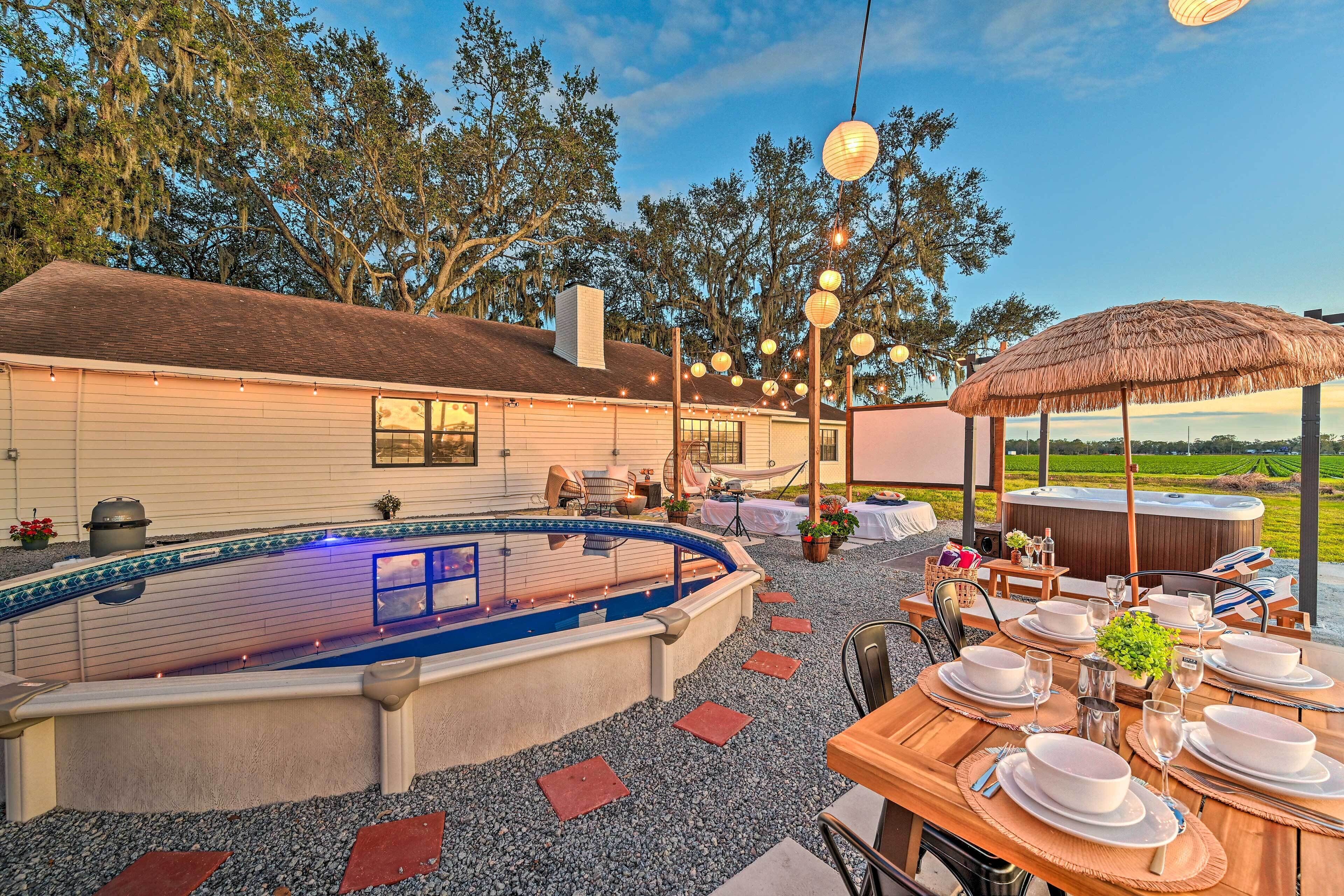 Plant City Home w/ Outdoor Pool! Located on 4 acres of farmland, this amenity-packed Plant City vacation rental is the ideal spot for your next retreat! Offering 5 bedrooms, 3 baths, a full kitchen, a cozy living room, Smart TVs, and a game room, this property offers everything needed in a home base. Check out McCall Park, spend a day on Mango Lake, or plan a trip in the spring to attend the Florida Strawberry Festival! At day’s end, enjoy a meal made on the grill or relax in the pool while streaming a movie with your crew.-- THE PROPERTY --Pet Friendly w/ Fee | 3,000 Sq Ft | Private Hot Tub | Fire Pit | Located on 4-Acre Farm w/ 4 CowsBedroom 1: King Bed | Bedroom 2: King Bed | Bedroom 3: Queen Bed | Bedroom 4: 2 Queen Beds | Bedroom 5: 2 Queen Beds, 2 Twin/Full Bunk Beds | Additional Sleeping: Pack ‘n PlayINDOOR LIVING: Smart TVs, fireplaces, ceiling fans, desks, dining table, breakfast bar, high chair, game room, board games, pool table, foosball table, air hockey tableOUTDOOR LIVING: Deck, outdoor seating/dining areas, gas grill, hot tub, beach towels, beach umbrella, outdoor media/speakersKITCHEN: Dishwasher, stove, fridge, stainless steel appliances, coffee maker, Crockpot, microwave, toaster, blender, hot water pot, ice maker, water filter, dishware/flatware, spices, basic cooking essentialsGENERAL: Free WiFi, keyless entry, central A/C & heating, washer/dryer, laundry detergent, iron/ironing board, towels/linens, hair dryer, complimentary toiletries, trash bags/paper towels FAQ: 1 step required to enter, pet fee (paid pre-trip), 1 Ring Doorbell camera (facing out), 2 exterior security cameras (facing out)PARKING: Driveway (6 vehicles), RV/trailer parking, street parking available (first-come, first-served)ADDT’L ACCOMMODATIONS: An additional 1-bedroom property for 4 guests is available on-site with a separate nightly rate. If you would like to reserve both rentals, please inquire for more information prior to booking-- THE LOCATION --AREA ATTRACTIONS: McCall Park (4 miles), Florida Strawberry Festival (5 miles), Florida Air Museum (7 miles), Westfield Brandon (15 miles), Busch Gardens Tampa Bay (25 miles), Adventure Island (25 miles), Tampa Riverwalk (26 miles)OUTDOOR FUN: Walden Lake Park (4 miles), Alderman’s Ford Conservation Park (7 miles), Lower Green Swamp Nature Preserve (11 miles), Hollis Garden (15 miles), Lower Hillsborough Wilderness Preserve (20 miles), Lettuce Lake Park Boardwalk and Nature Trail (24 miles)ON THE WATER: Mango Lake (12 miles), Clearwater Beach (50 miles), Indian Rocks Beach (52 miles), Madeira Beach (52 miles), St. Pete Beach (55 miles)AIRPORT: Tampa International Airport (32 miles)-- REST EASY WITH US --Evolve makes it easy to find and book properties you’ll never want to leave. You can relax knowing that our properties will always be ready for you and that we’ll answer the phone 24/7. Even better, if anything is off about your stay, we’ll make it right. You can count on our homes and our people to make you feel welcome--because we know what vacation means to you.-- POLICIES --- No smoking- Pet friendly w/ $50 fee (+ fees & taxes, 2 pets max)- No events, parties, or large gatherings- Must be at least 25 years old to book- Additional fees and taxes may apply- Photo ID may be required upon check-in- NOTE: This property requires 1 step to enter- NOTE: Your safety matters. This property features a Ring doorbell device with an exterior security camera and 2 exterior security cameras. The Ring doorbell is located at the front door facing the front outdoor entry and the 2 cameras are located on both sides of the home facing the sides of the property. The cameras are outward facing and do not look into interior spaces. The cameras actively record video when motion is detected (including devices linked to the camera such as the alarm system’s motion detector) or when the video doorbell button is pressed- NOTE: There is another bookable vacation rental on-site; other travelers may be present during your stay- NOTE: This property is located on a working farm and there are 4 cows on the property in a fenced-in cattle yard