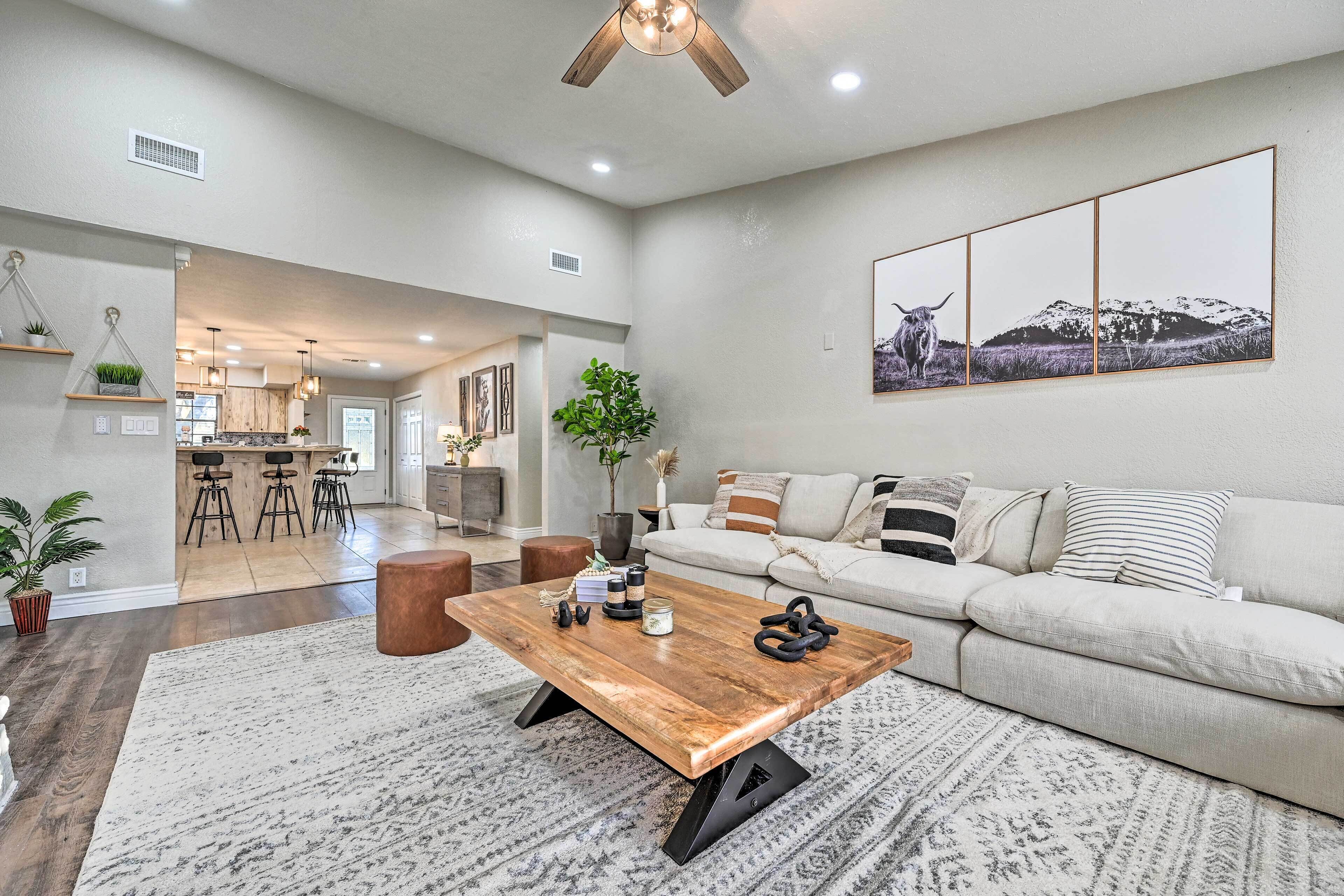 Plant City Home w/ Outdoor Pool! Located on 4 acres of farmland, this amenity-packed Plant City vacation rental is the ideal spot for your next retreat! Offering 5 bedrooms, 3 baths, a full kitchen, a cozy living room, Smart TVs, and a game room, this property offers everything needed in a home base. Check out McCall Park, spend a day on Mango Lake, or plan a trip in the spring to attend the Flori...