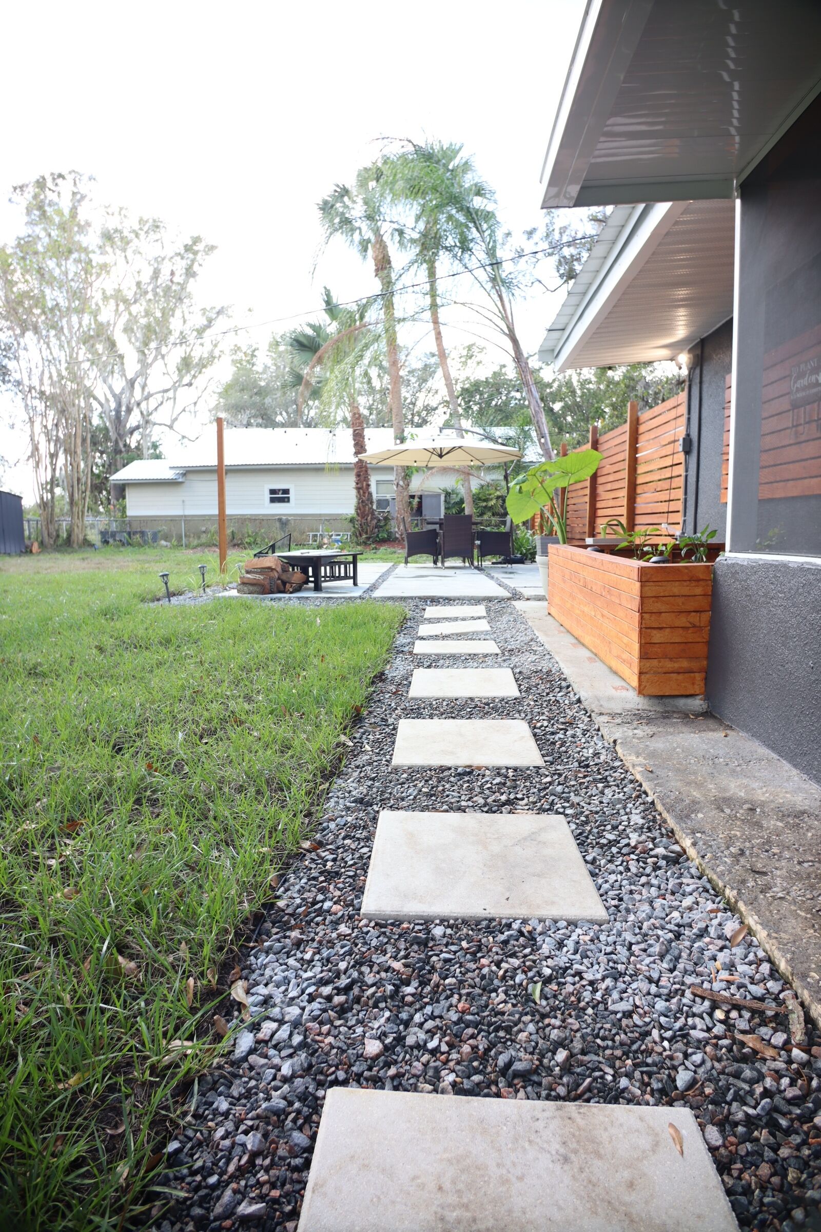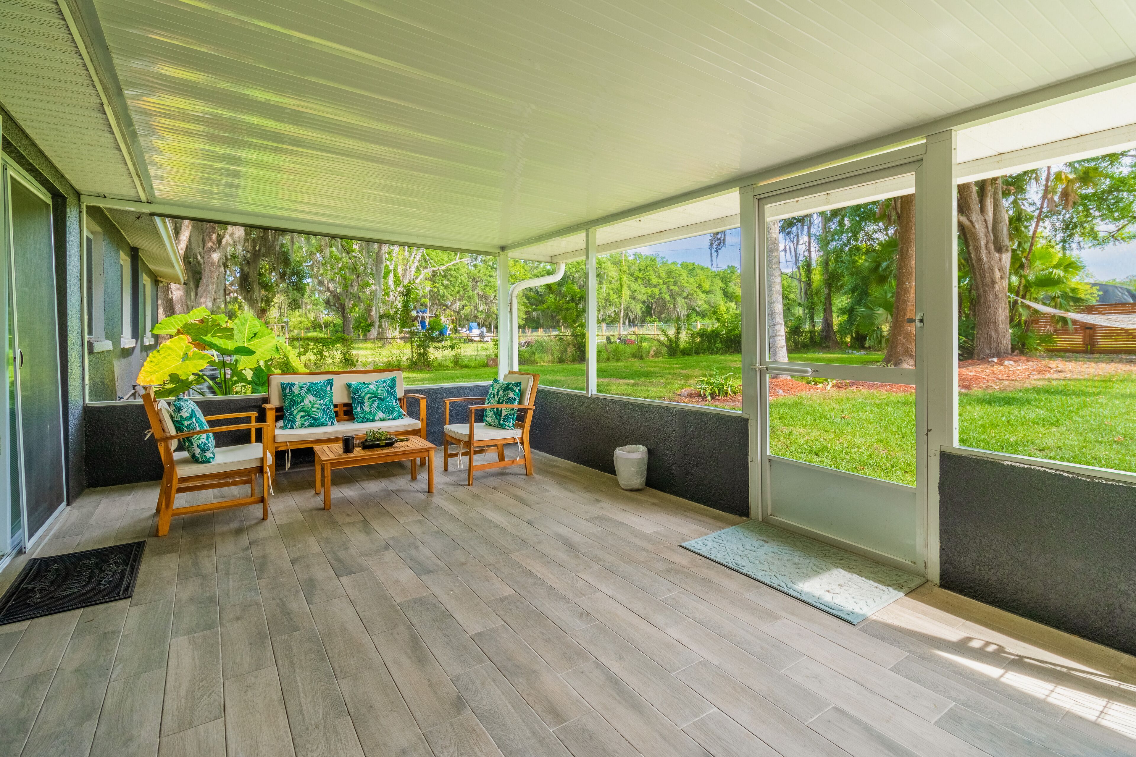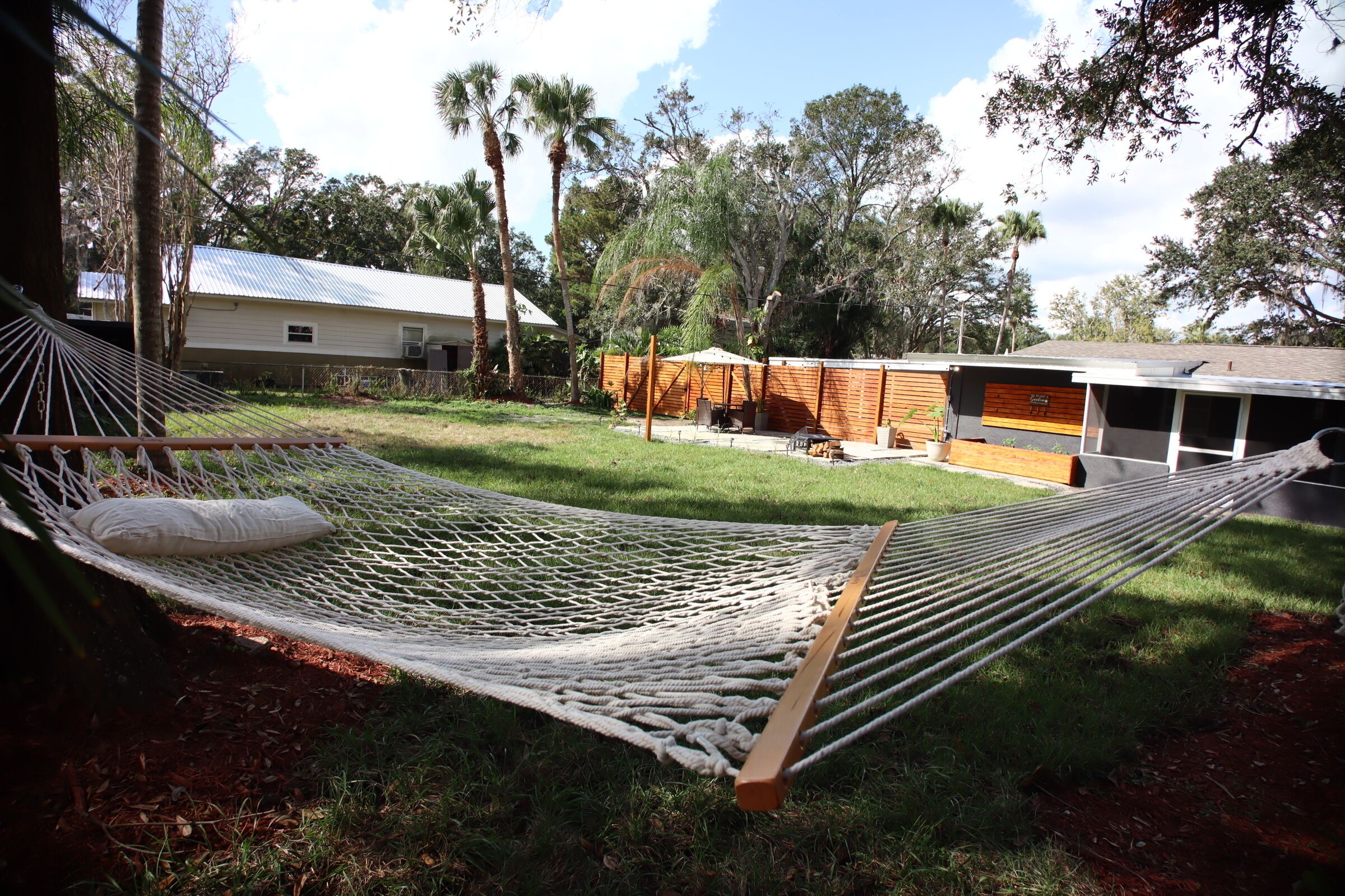 Plant City Modern Soho Farmhouse, Event Friendly!! Welcome to your personal Forest Theme oasis located in Plant City. This unique home has tons of flare and beauty with a relaxing ambiance. This gorgeous modern style farmhouse is a 4/2, 1946 total sq.ft. block home nestled on a half-acre. Property comes equipped with a full kitchen, beautiful furnishings, central AC and heat, brand new kitchen, twin sink vanity, outdoor workspace, cozy fire pit and outdoor dining area, a screened-in back patio, and full laundry room. Perfect for quiet retreats, formal gatherings, weddings, baby showers, certain private parties in a quaint and very private location. This is a place to just get away from it all, and still be close to the city. Parking is available for RVs, large campers, and even Semi trucks.