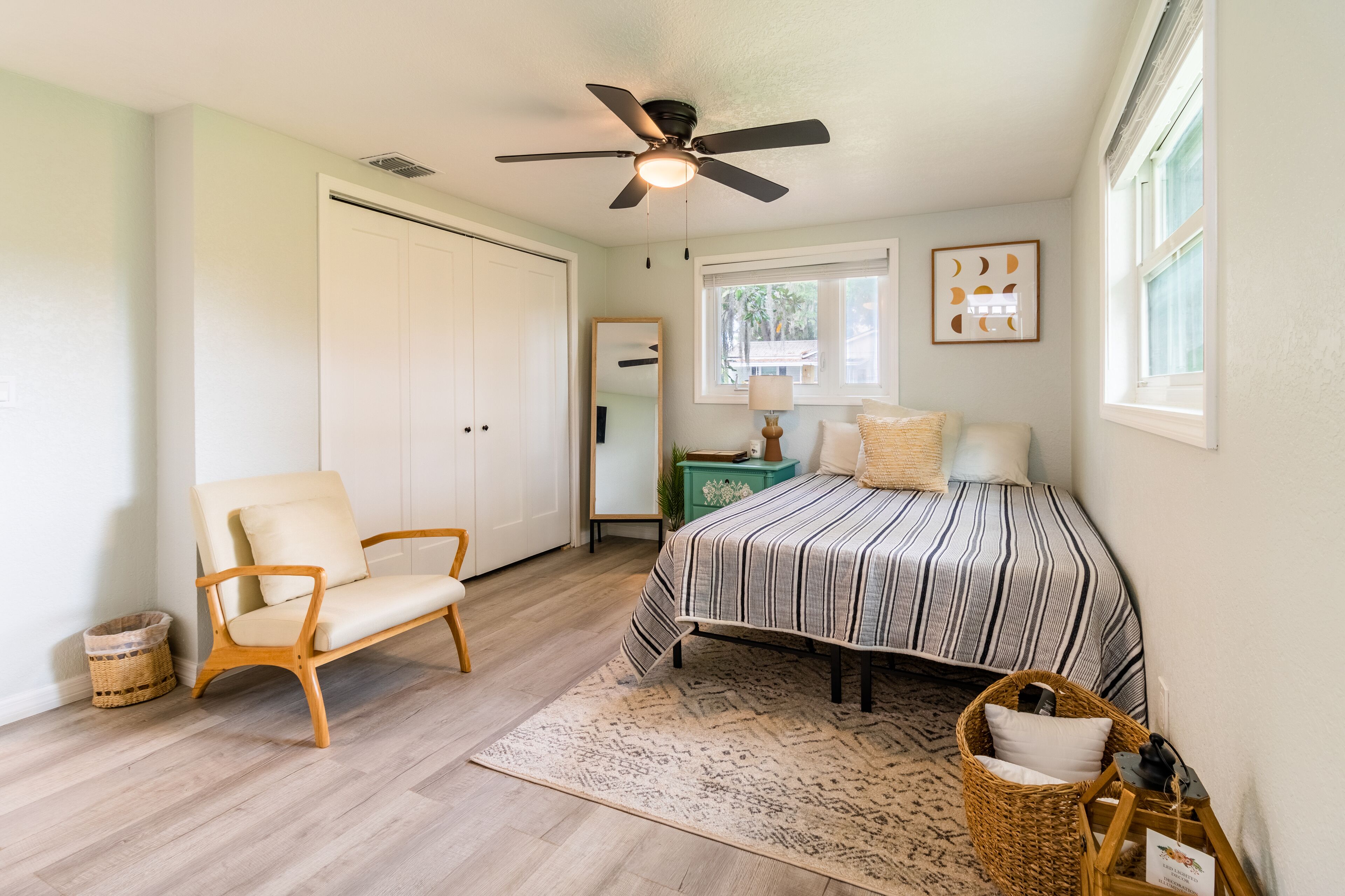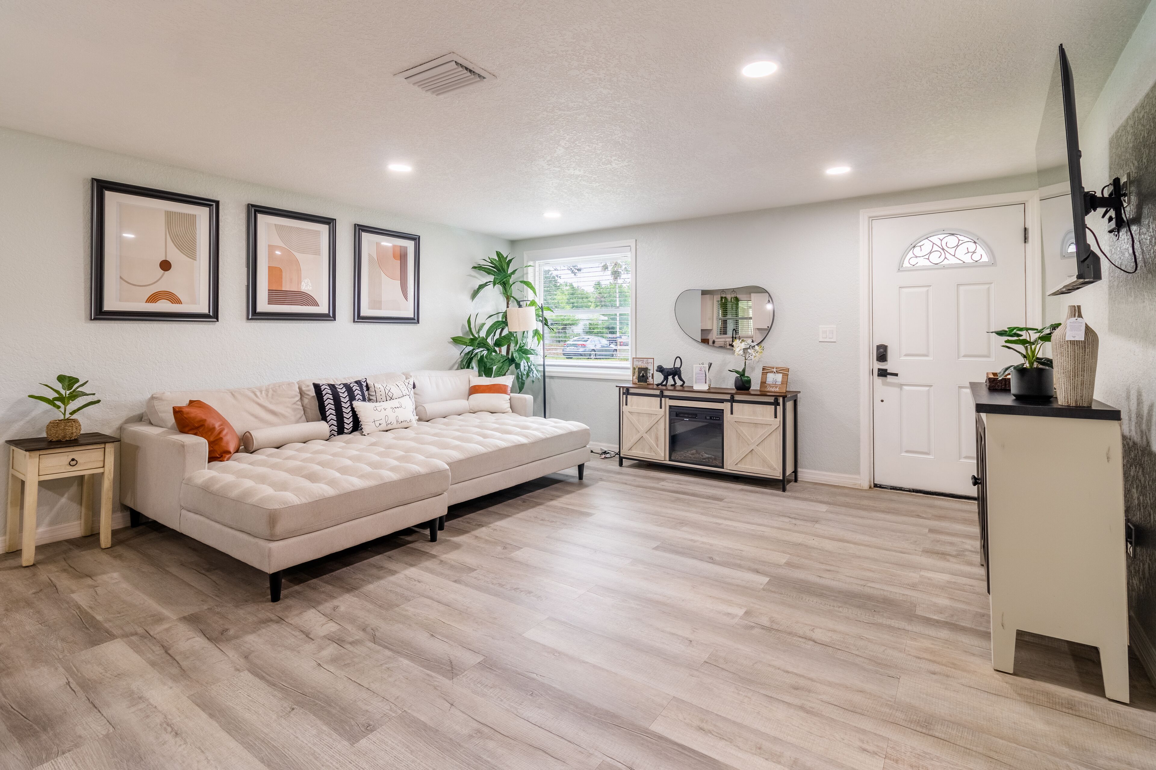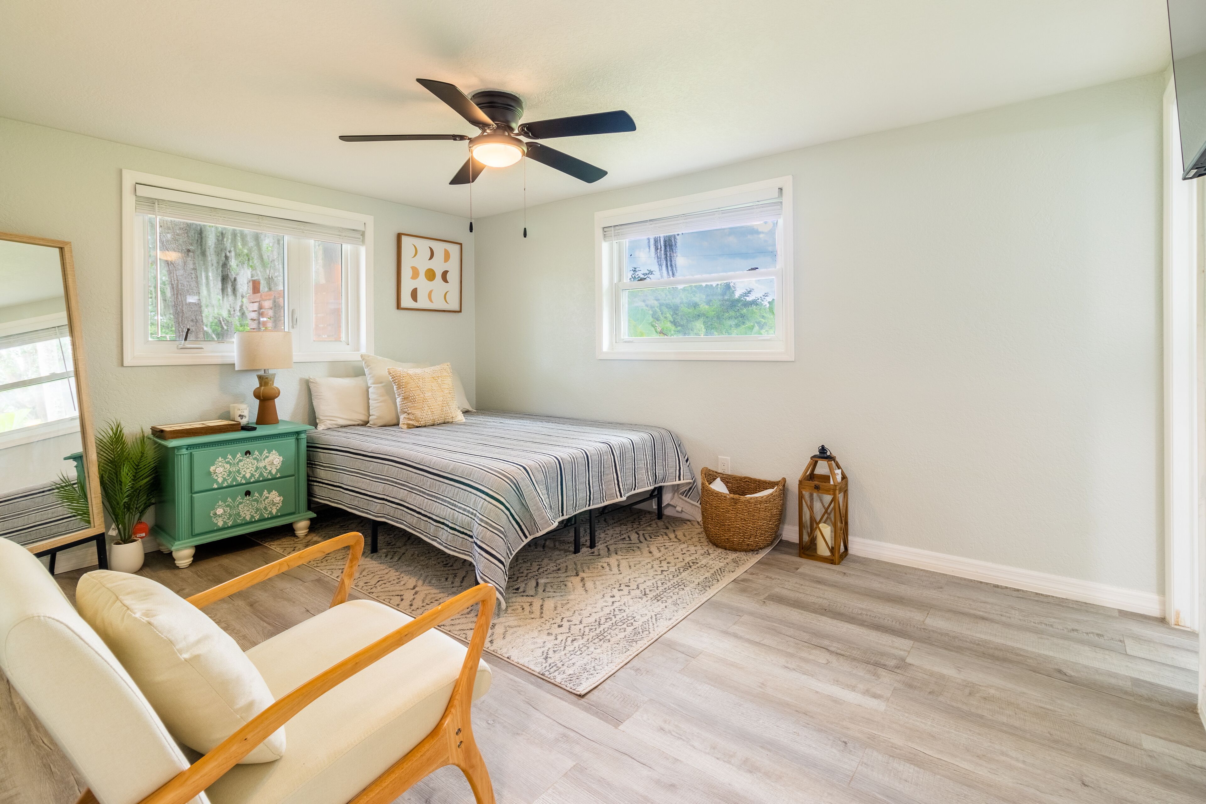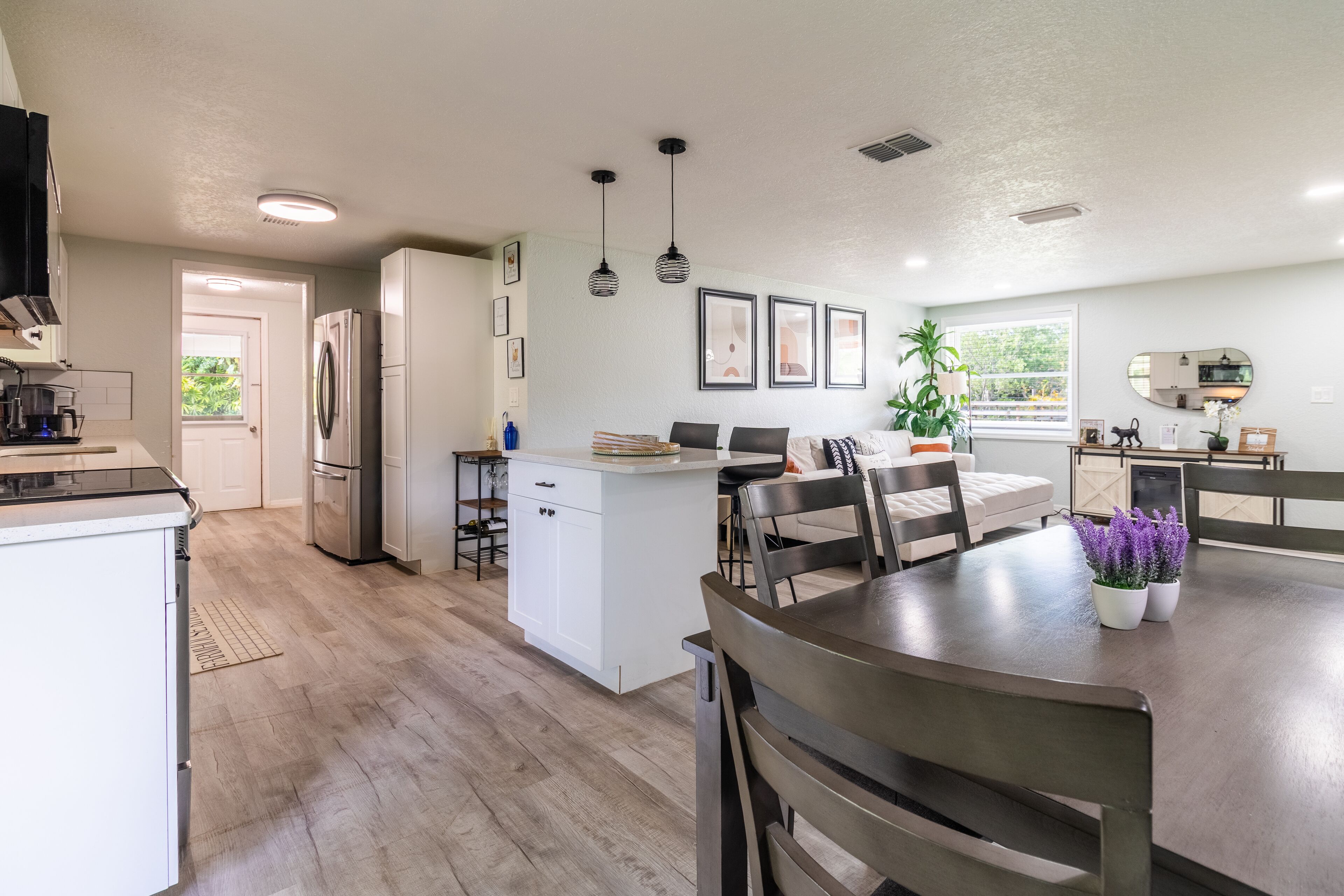 Plant City Modern Soho Farmhouse, Event Friendly!! Welcome to your personal Forest Theme oasis located in Plant City. This unique home has tons of flare and beauty with a relaxing ambiance. This gorgeous modern style farmhouse is a 4/2, 1946 total sq.ft. block home nestled on a half-acre. Property comes equipped with a full kitchen, beautiful furnishings, central AC and heat, brand new kitchen, twin sink vanity, outdoor workspace, cozy fire pit and outdoor dining area, a screened-in back patio, and full laundry room. Perfect for quiet retreats, formal gatherings, weddings, baby showers, certain private parties in a quaint and very private location. This is a place to just get away from it all, and still be close to the city. Parking is available for RVs, large campers, and even Semi trucks.