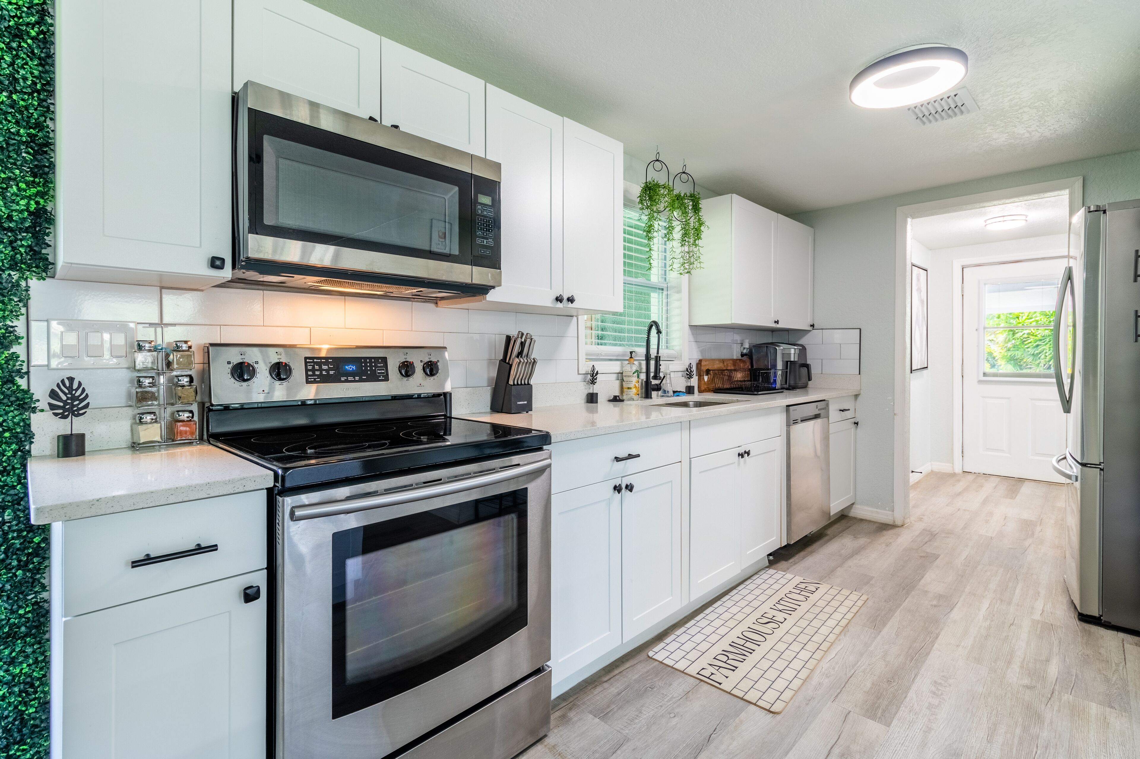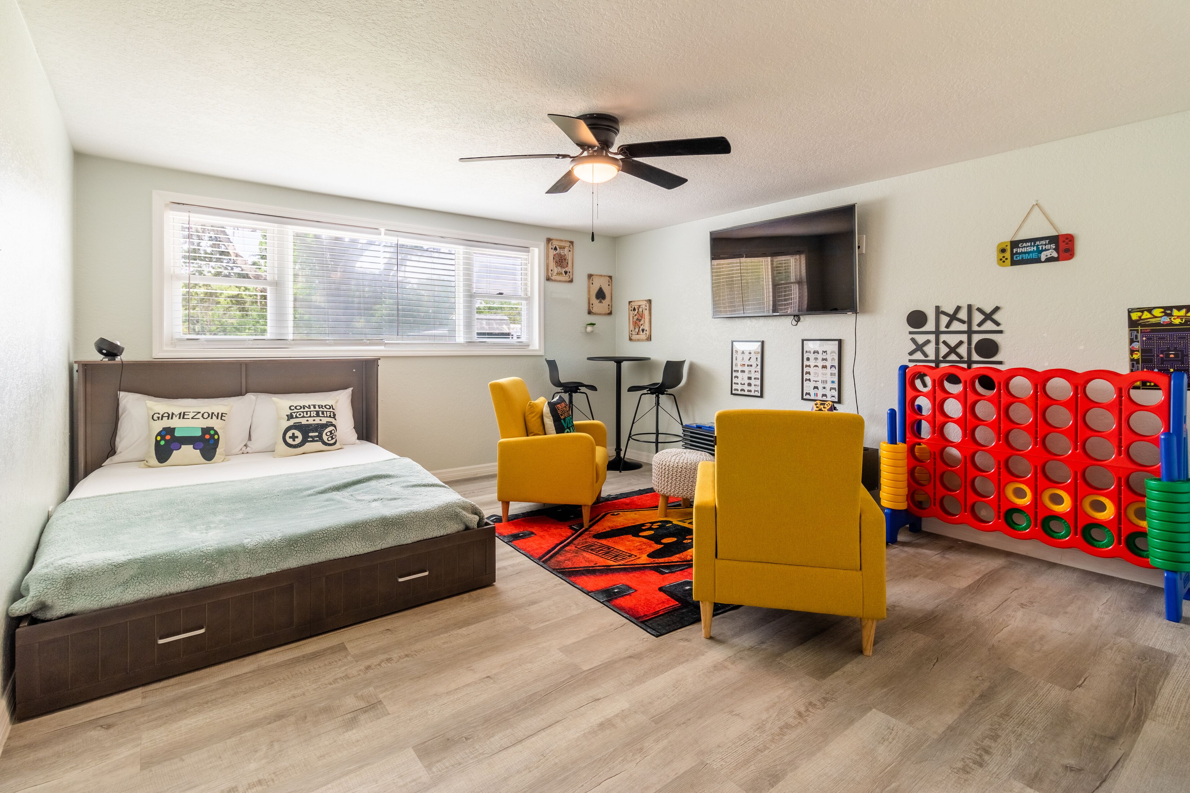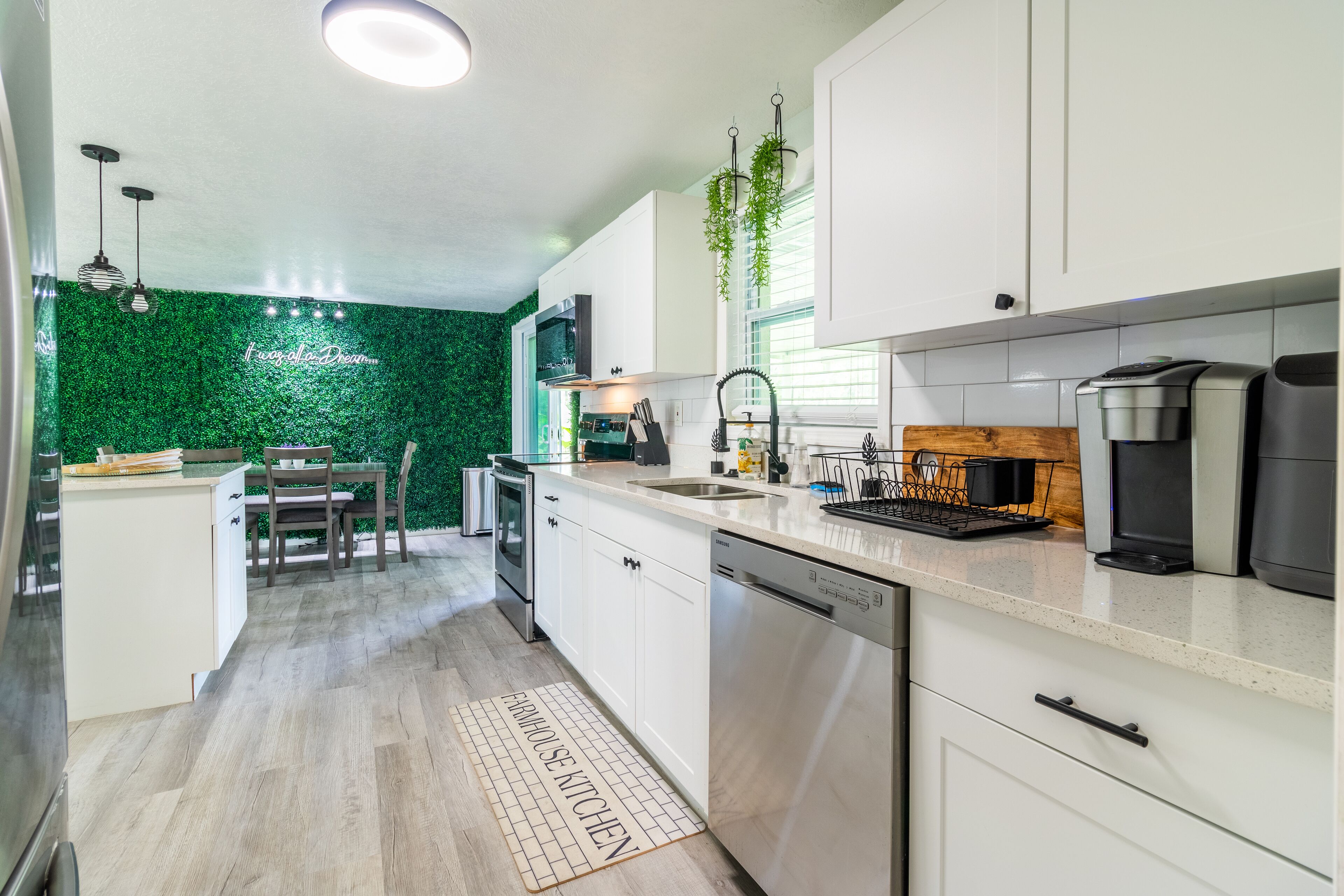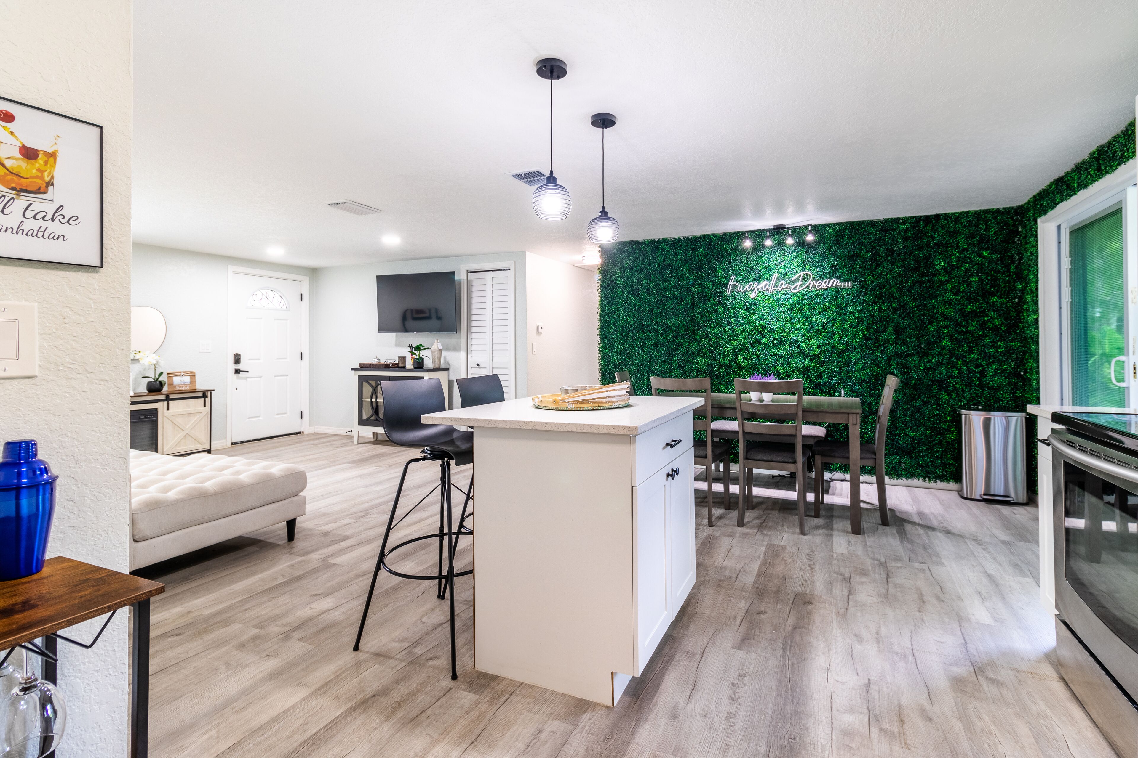 Plant City Modern Soho Farmhouse, Event Friendly!! Welcome to your personal Forest Theme oasis located in Plant City. This unique home has tons of flare and beauty with a relaxing ambiance. This gorgeous modern style farmhouse is a 4/2, 1946 total sq.ft. block home nestled on a half-acre. Property comes equipped with a full kitchen, beautiful furnishings, central AC and heat, brand new kitchen, tw...