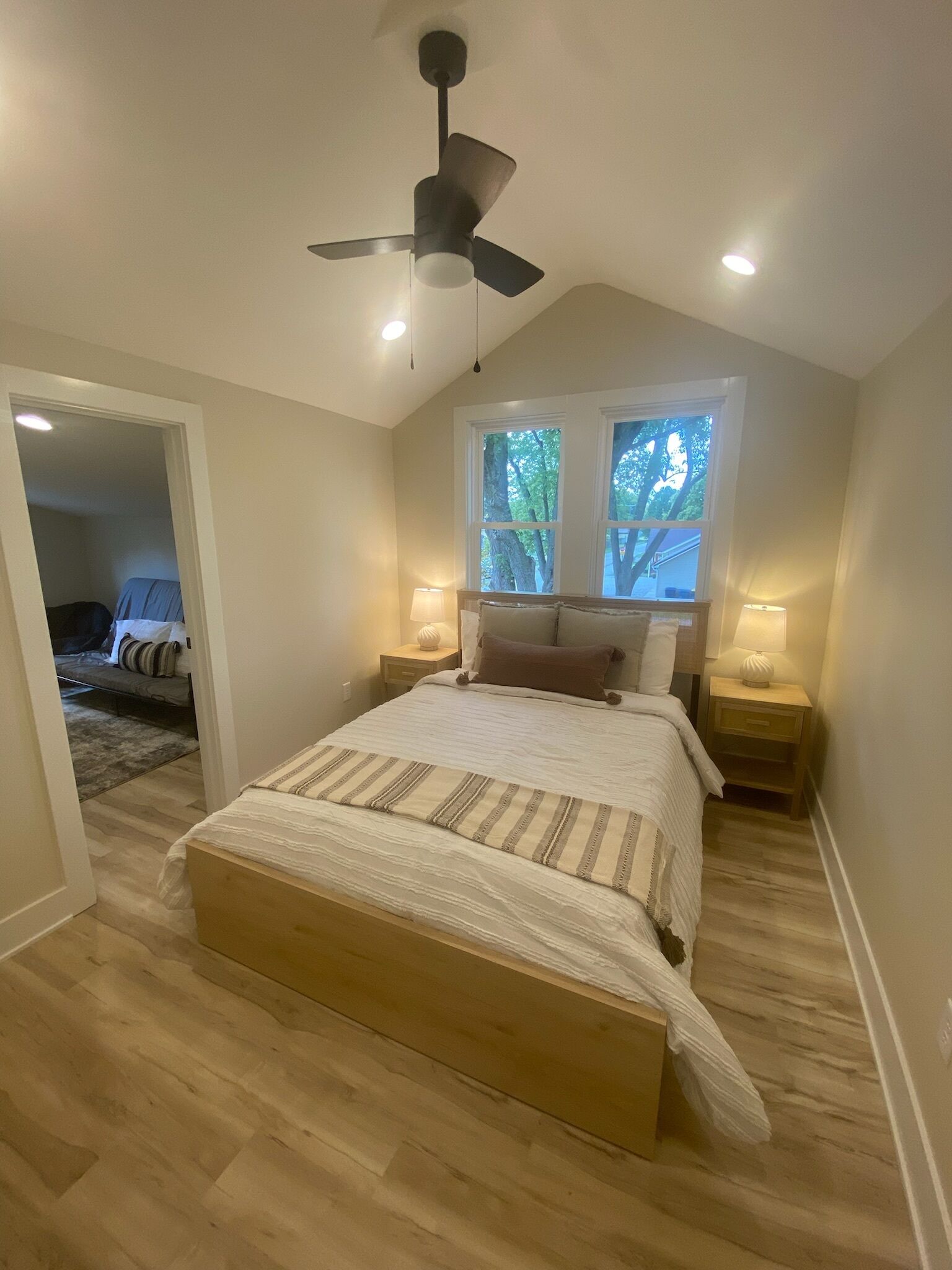 Large Group Bungalow - Spacious entire house sleeps 15 guests w/ backyard patio KING BED SUITE. Perfect group house! ALL NEW House for your group to relax, have fun, and get ready for events near Sheridan and Westfield. This 5 bedroom, 3 full bathroom house will sleep up to 15 guests without feeling cramped. Enjoy a large fully furnished group space, with ALL NEW APPLIANCES. Comfortable new beds including a King, Queen, 2 full, 3 twins, and a full pullout couch. Also a new washer and dryer in the house. Backyard with fireplace, grill, outdoor seating. Each room has a TV with Netflix, Youtube TV, Prime Video. Game room with an Xbox with games downloaded. Close to Sixpence Wedding Venue, Grand Park Sports Complex, Less than 45 minutes from Lucas Oil and Gainbridge Fieldhouse and downtown Indy. Local restaurants, parks, and the famous Monon trail just minutes away.