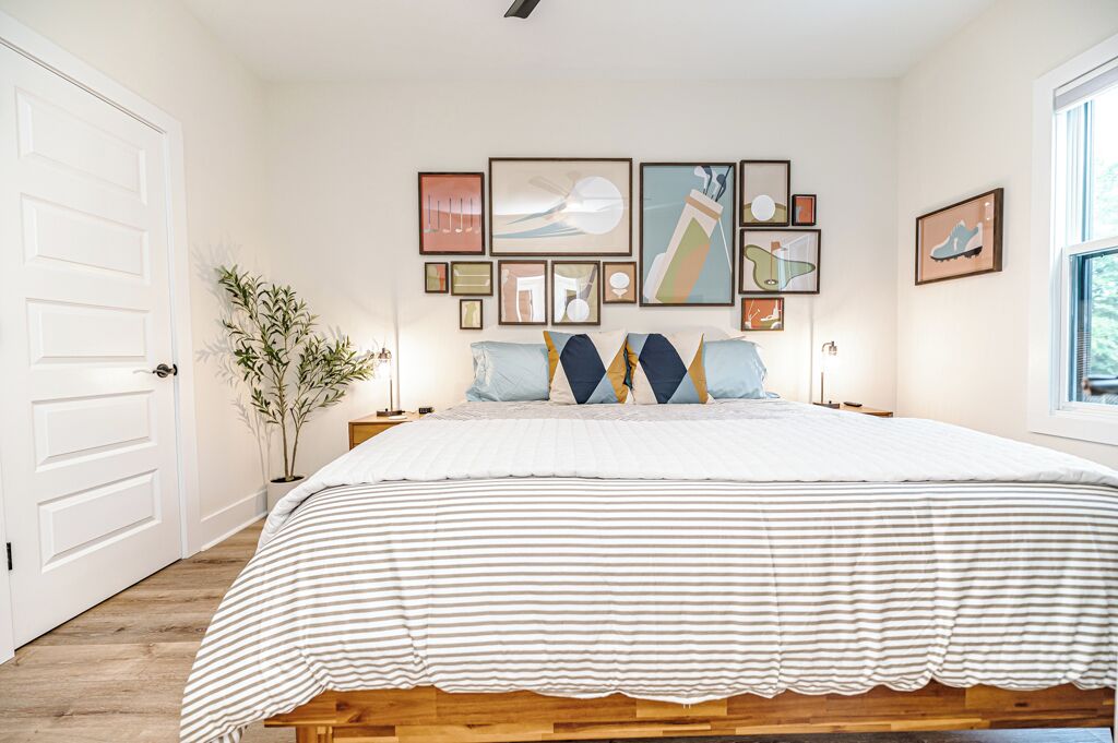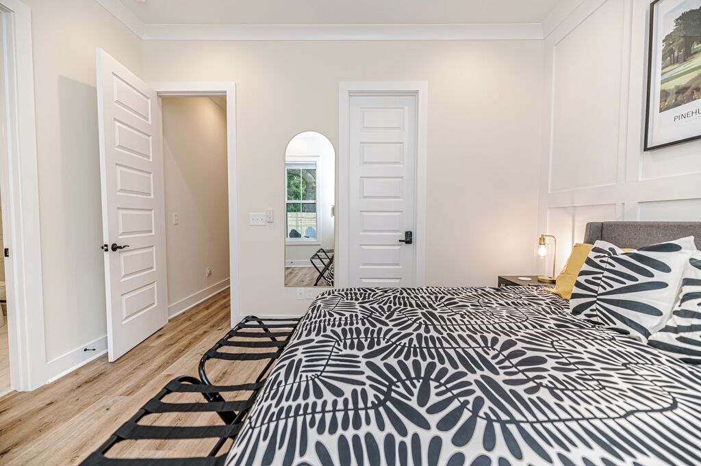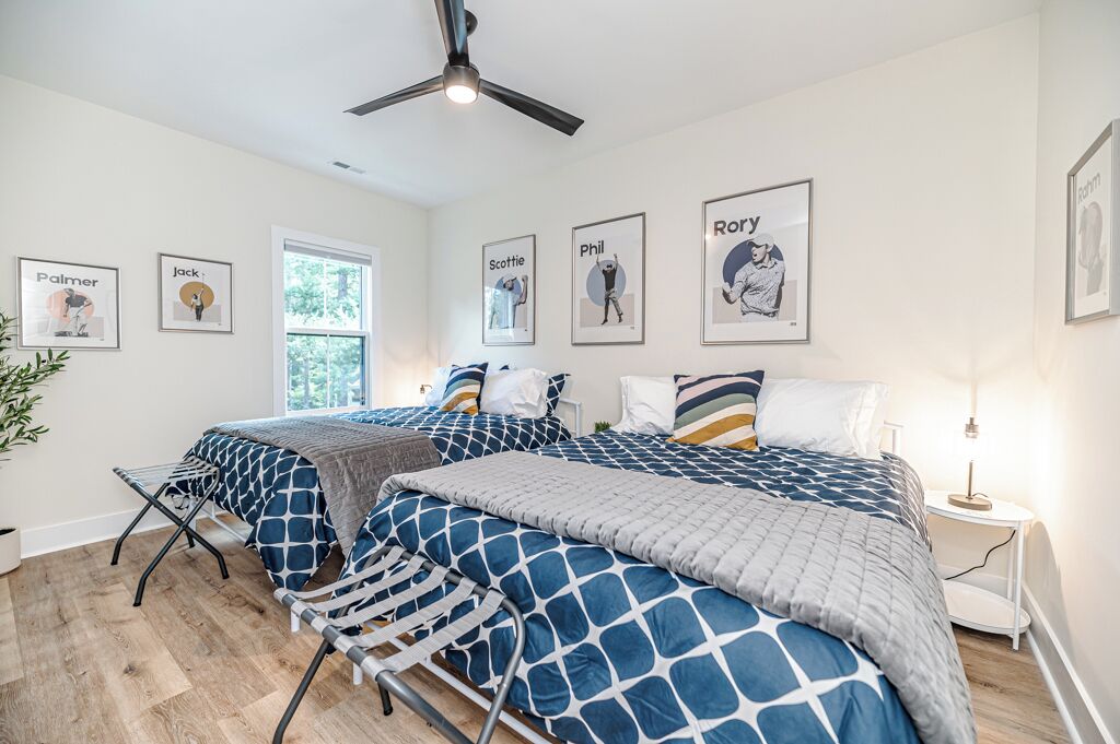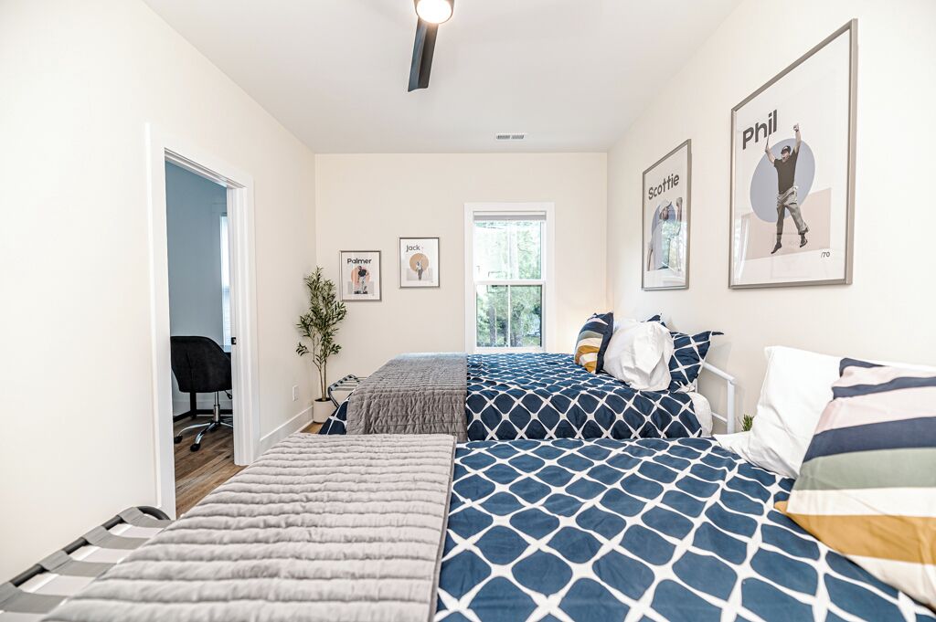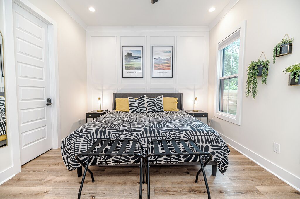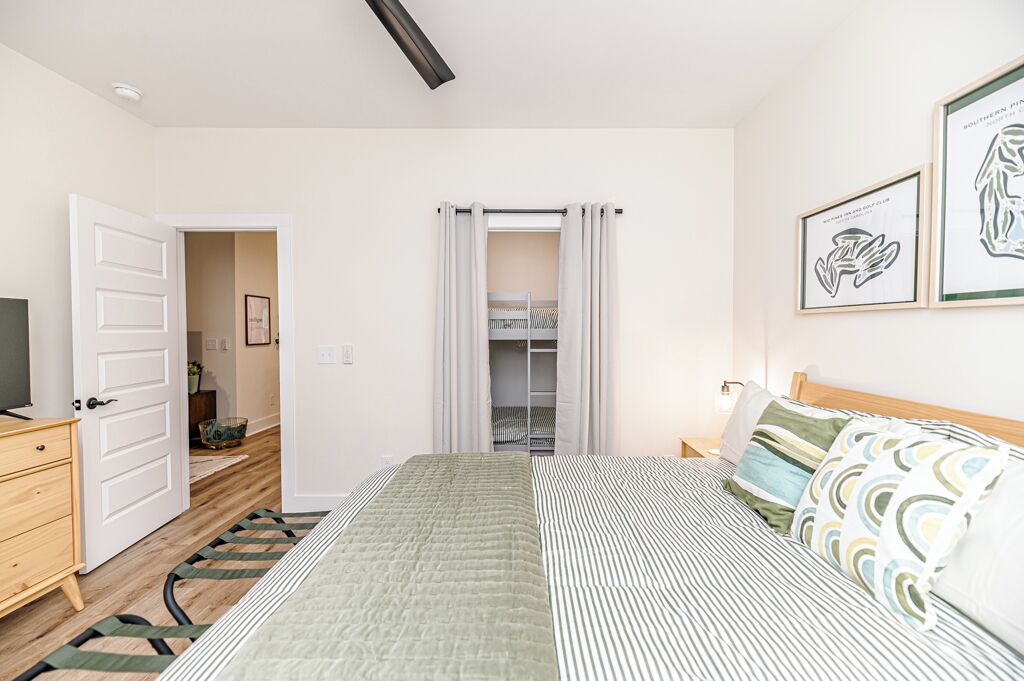 The 19th Hole - Walk to Downtown, Park, Pickleball The 19th Hole is a 4 bed, 3.5 bath brand new house minutes from world class golf courses.The property features tastefully sourced furnishings and decor that is designed to create a relaxing contemporary aesthetic that can be enjoyed by guests of all ages.We are located in the heart of downtown Southern Pines, and walking distance to several wonderful pubs, restaurants and shops. Memorial Park is directly next to the house providing an unbelievable amount of amenities.The home is designed to bring people together in the large open common spaces, while giving each guest privacy when needed. The house can comfortably sleep 12 (10 adults max & 2 children on bunk beds). Even the most discerning of chefs will fall in love with the large kitchen, with high-end stainless steel appliances, where any meal can be prepared for the entire group.The property offers a fenced in backyard, including Adirondack chairs with a firepit, dining table and grill for cooking where you can kick back after a long day of missed putts. -------More about the bedrooms:Bedroom #1 (Queen Room) - Sleeps 42nd floor. Includes 2 Queen beds (Nectar Premier Hybrid 13" Mattress), 3 nightstands, bedside lamps with USB ports, black-out cellular shades and a private office. Shared hallway bathroom.Bedroom #2 - Sleeps 22nd floor. Includes King bed (Nectar Premier Hybrid 13" Mattress), 2x nightstands, bedside lamps with USB ports, smart TV, closet, black-out cellular shades and a private office. Shared hallway bathroom.Bedroom #3 (Master Suite) - Sleeps 21st floor. Includes King bed (Nectar Premier Hybrid 13" Mattress), 2x nightstands, bedside lamps with USB ports, smart TV, attached private master-suite with shower, walk-in closet, dual vanities, and black-out cellular shades.Bedroom #4 (Master Suite) - Sleeps 2 adults and 2 kids.2nd floor. Includes King bed (Nectar Premier Hybrid 13" Mattress), 2x nightstands, bedside lamps with USB ports, smart TV, dresser, and bunk beds (children only please, under 125 lbs). Includes attached private master-suite, with shower/tub, and black-out cellular shades.Guests will have full access to all 4 bedrooms, the open concept kitchen/living room, upstairs den area and outdoor patio space.We also provide the following items for your stay:- Wifi internet access is provided (via Spectrum speeds up to 1 Gig)- 5 smart TVs including access to YouTube TV for live and local broadcast programming- 1x pack-n-play - 1x high chair- 1x baby monitor (incase you forget yours)- 3x hair-dryers - Sound machines in each bedroom- Shampoo, conditioner, and body-wash in each bathroom- Other key bathroom amenities incase you forgot something- Multiple smoke/carbon detectors- 1x fire extinguisher- 1x burn kit- 2x first-aid kits- Each bed includes cotton sheets, pillows, and a comforter plus extra blankets and pillows- Ceiling fans in each bedroom- 8x foldable luggage storage racks- 1x crockpot- 1x blender- 1x insta Pot- 1x popcorn maker- 1x electric tea kettle- 1x toaster- 1x coffee maker- 1x hand mixer- 1x iron and iron board- Ample plates, bowls, glasses, coffee mugs, and silverware for all guests- Various Baking Sheets, serving platters, and bowls- Plastic dinnerware & drinkware for kids- Coffee, creamer and filters to use in the provided coffee pot- Cooking spices, foil and Tupperware for cooking- Wine bottle opener- Heating pad - Touchless thermometer - Plenty of towels for all guests - Various board games- Washer/Dryer for clothes- Equipment to use for all amenities at Memorial Park (basketball, bocce ball, football, horseshoes, pickleball, tennis, volleyball)-----------------------------------------------------------------Why you should consider staying with us:1. We love our home - We are not just home-owners trying to offset our mortgage costs with the occasional short-term guest. We treat our vacation rental property as if we were staying there and strive to create an exceptional and memorable experience with each and every stay.2. We believe communication is key -- From your initial booking request, through the day you check-out, we are available to answer any and all questions or concerns. We also provide detailed documentation needed to access the property, including driving directions, access codes, and an on-site welcome guide.3. We Self and Co-Manage -- This means you wont be speaking with some property management company staffer who has never stayed at the home, and who may not be familiar with the Southern Pines area.4. Amenities -- We go above and beyond to provide many extra kitchen and bath accessories as we want to make sure that you have what you need to enjoy your stay. 5. Beds and Mattresses -- We believe that a poor night's sleep can really undercut one's vacation. That is why we invest in high-quality beds, mattresses, pillows, and sheets for each and every room. All of our mattresses are brand new as of March 2024.6. Furnishings and Decor -- Our property has been carefully designed to create a feel that is functional, inviting, and enjoyable for guests of all ages.Depending on traffic, our home is 1hr 10min drive from Raleigh-Durham International Airport.As stated our house is directly next to Memorial Park.Free admission to:Ballfield - LightedBaseball / SoftballBasketball Court - Outdoor, LightedBocce Ball CourtFootball FieldGreenspace / Open Play AreaHorseshoesPickleball Court - Outdoor, LightedPicnic TablesPicnic Tables with Grills - OutdoorPlayground EquipmentRacquetball Courts - Outdoor, LightedRestroomsShuffleboard CourtsTennis Courts - Outdoor, LightedVolleyball Court - Outdoor, Sand Restaurants/pubs within walking distance:Beefeaters 0.3mSpice Cafe 0.3m715 Bar & Grill 0.4mThe Sly Fox Pub 0.4mHatchet Brewing Company 0.4mRec Room Bar and Arcade 0.4mJava Bean Roasting Company 0.4mRed's Corner 0.5mPony Espresso 0.5mTaqueria La Mexicana 0.5mVito's Ristorante & Pizzeria 0.5mScott's Table 0.5mSouthern Pines Growler 0.5mSouthern Prime Steakho