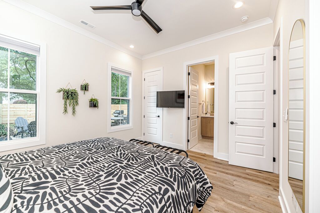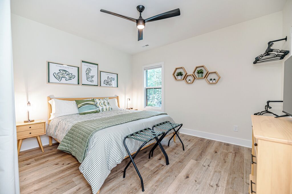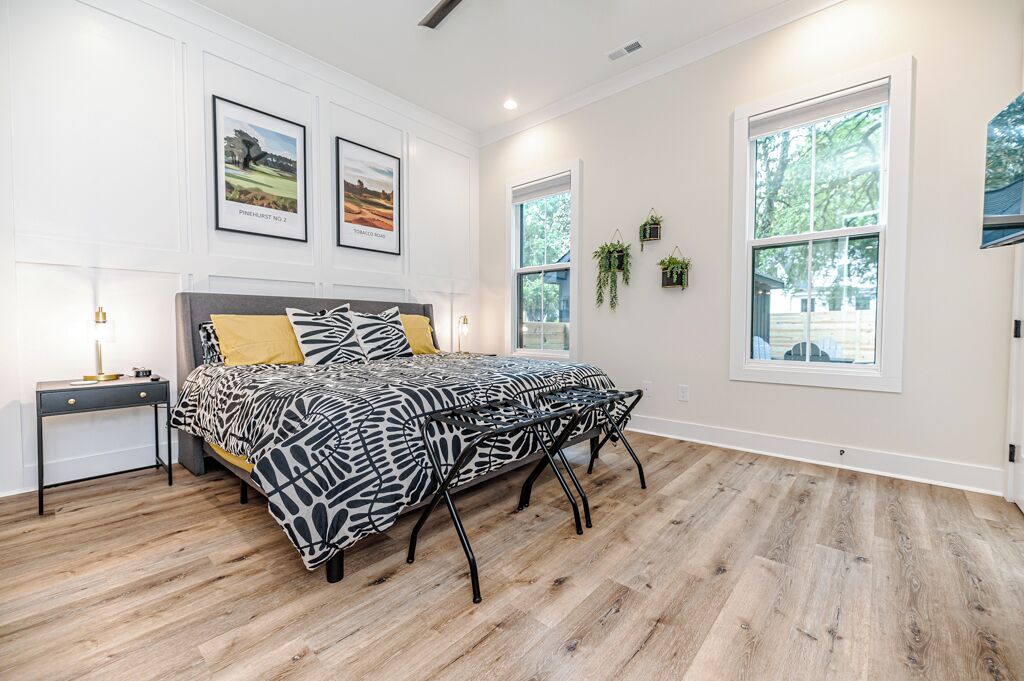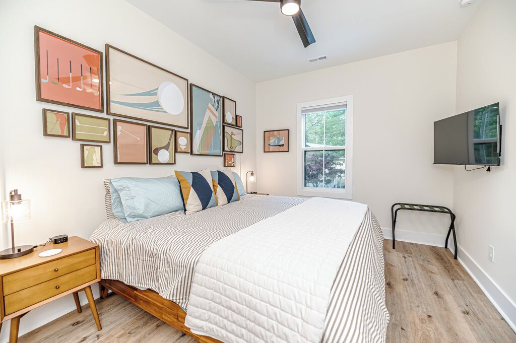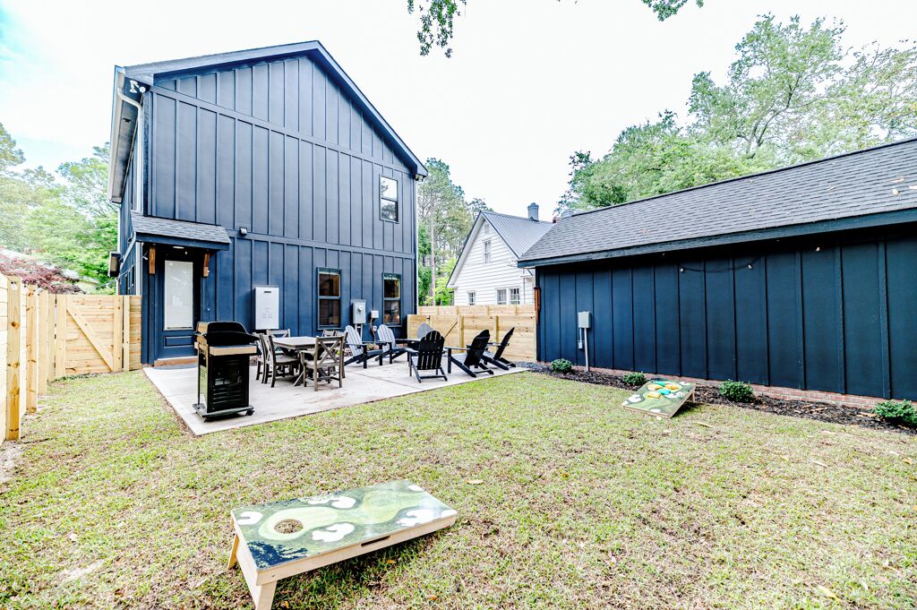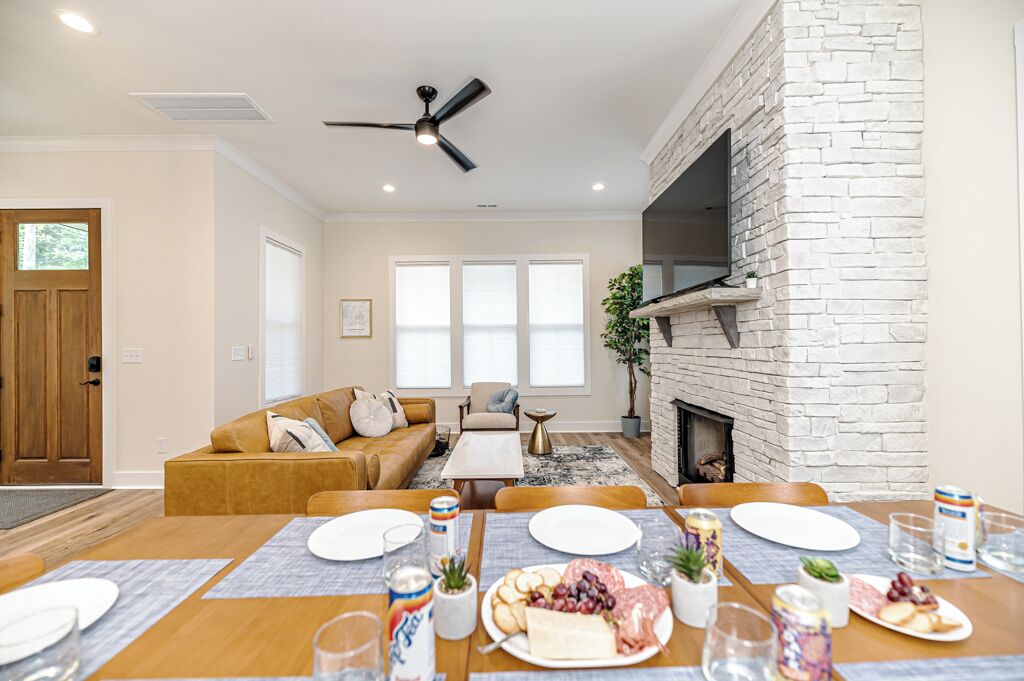 The 19th Hole - Walk to Downtown, Park, Pickleball The 19th Hole is a 4 bed, 3.5 bath brand new house minutes from world class golf courses.The property features tastefully sourced furnishings and decor that is designed to create a relaxing contemporary aesthetic that can be enjoyed by guests of all ages.We are located in the heart of downtown Southern Pines, and walking distance to several wonderful pubs, restaurants and shops. Memorial Park is directly next to the house providing an unbelievable amount of amenities.The home is designed to bring people together in the large open common spaces, while giving each guest privacy when needed. The house can comfortably sleep 12 (10 adults max & 2 children on bunk beds). Even the most discerning of chefs will fall in love with the large kitchen, with high-end stainless steel appliances, where any meal can be prepared for the entire group.The property offers a fenced in backyard, including Adirondack chairs with a firepit, dining table and grill for cooking where you can kick back after a long day of missed putts. -------More about the bedrooms:Bedroom #1 (Queen Room) - Sleeps 42nd floor. Includes 2 Queen beds (Nectar Premier Hybrid 13" Mattress), 3 nightstands, bedside lamps with USB ports, black-out cellular shades and a private office. Shared hallway bathroom.Bedroom #2 - Sleeps 22nd floor. Includes King bed (Nectar Premier Hybrid 13" Mattress), 2x nightstands, bedside lamps with USB ports, smart TV, closet, black-out cellular shades and a private office. Shared hallway bathroom.Bedroom #3 (Master Suite) - Sleeps 21st floor. Includes King bed (Nectar Premier Hybrid 13" Mattress), 2x nightstands, bedside lamps with USB ports, smart TV, attached private master-suite with shower, walk-in closet, dual vanities, and black-out cellular shades.Bedroom #4 (Master Suite) - Sleeps 2 adults and 2 kids.2nd floor. Includes King bed (Nectar Premier Hybrid 13" Mattress), 2x nightstands, bedside lamps with USB ports, smart TV, dresser, and bunk beds (children only please, under 125 lbs). Includes attached private master-suite, with shower/tub, and black-out cellular shades.Guests will have full access to all 4 bedrooms, the open concept kitchen/living room, upstairs den area and outdoor patio space.We also provide the following items for your stay:- Wifi internet access is provided (via Spectrum speeds up to 1 Gig)- 5 smart TVs including access to YouTube TV for live and local broadcast programming- 1x pack-n-play - 1x high chair- 1x baby monitor (incase you forget yours)- 3x hair-dryers - Sound machines in each bedroom- Shampoo, conditioner, and body-wash in each bathroom- Other key bathroom amenities incase you forgot something- Multiple smoke/carbon detectors- 1x fire extinguisher- 1x burn kit- 2x first-aid kits- Each bed includes cotton sheets, pillows, and a comforter plus extra blankets and pillows- Ceiling fans in each bedroom- 8x foldable luggage storage racks- 1x crockpot- 1x blender- 1x insta Pot- 1x popcorn maker- 1x electric tea kettle- 1x toaster- 1x coffee maker- 1x hand mixer- 1x iron and iron board- Ample plates, bowls, glasses, coffee mugs, and silverware for all guests- Various Baking Sheets, serving platters, and bowls- Plastic dinnerware & drinkware for kids- Coffee, creamer and filters to use in the provided coffee pot- Cooking spices, foil and Tupperware for cooking- Wine bottle opener- Heating pad - Touchless thermometer - Plenty of towels for all guests - Various board games- Washer/Dryer for clothes- Equipment to use for all amenities at Memorial Park (basketball, bocce ball, football, horseshoes, pickleball, tennis, volleyball)-----------------------------------------------------------------Why you should consider staying with us:1. We love our home - We are not just home-owners trying to offset our mortgage costs with the occasional short-term guest. We treat our vacation rental property as if we were staying there and strive to create an exceptional and memorable experience with each and every stay.2. We believe communication is key -- From your initial booking request, through the day you check-out, we are available to answer any and all questions or concerns. We also provide detailed documentation needed to access the property, including driving directions, access codes, and an on-site welcome guide.3. We Self and Co-Manage -- This means you wont be speaking with some property management company staffer who has never stayed at the home, and who may not be familiar with the Southern Pines area.4. Amenities -- We go above and beyond to provide many extra kitchen and bath accessories as we want to make sure that you have what you need to enjoy your stay. 5. Beds and Mattresses -- We believe that a poor night's sleep can really undercut one's vacation. That is why we invest in high-quality beds, mattresses, pillows, and sheets for each and every room. All of our mattresses are brand new as of March 2024.6. Furnishings and Decor -- Our property has been carefully designed to create a feel that is functional, inviting, and enjoyable for guests of all ages.Depending on traffic, our home is 1hr 10min drive from Raleigh-Durham International Airport.As stated our house is directly next to Memorial Park.Free admission to:Ballfield - LightedBaseball / SoftballBasketball Court - Outdoor, LightedBocce Ball CourtFootball FieldGreenspace / Open Play AreaHorseshoesPickleball Court - Outdoor, LightedPicnic TablesPicnic Tables with Grills - OutdoorPlayground EquipmentRacquetball Courts - Outdoor, LightedRestroomsShuffleboard CourtsTennis Courts - Outdoor, LightedVolleyball Court - Outdoor, Sand Restaurants/pubs within walking distance:Beefeaters 0.3mSpice Cafe 0.3m715 Bar & Grill 0.4mThe Sly Fox Pub 0.4mHatchet Brewing Company 0.4mRec Room Bar and Arcade 0.4mJava Bean Roasting Company 0.4mRed's Corner 0.5mPony Espresso 0.5mTaqueria La Mexicana 0.5mVito's Ristorante & Pizzeria 0.5mScott's Table 0.5mSouthern Pines Growler 0.5mSouthern Prime Steakho
