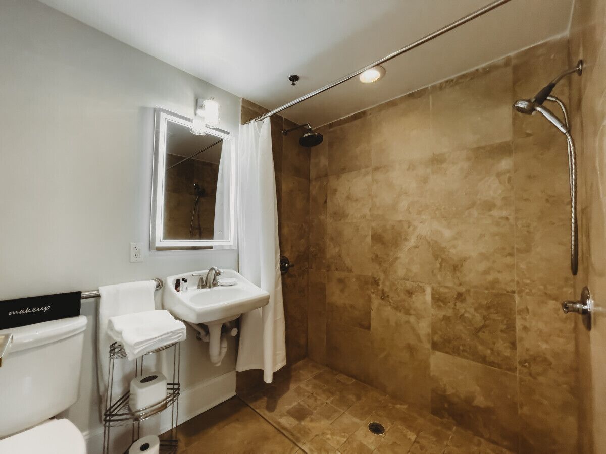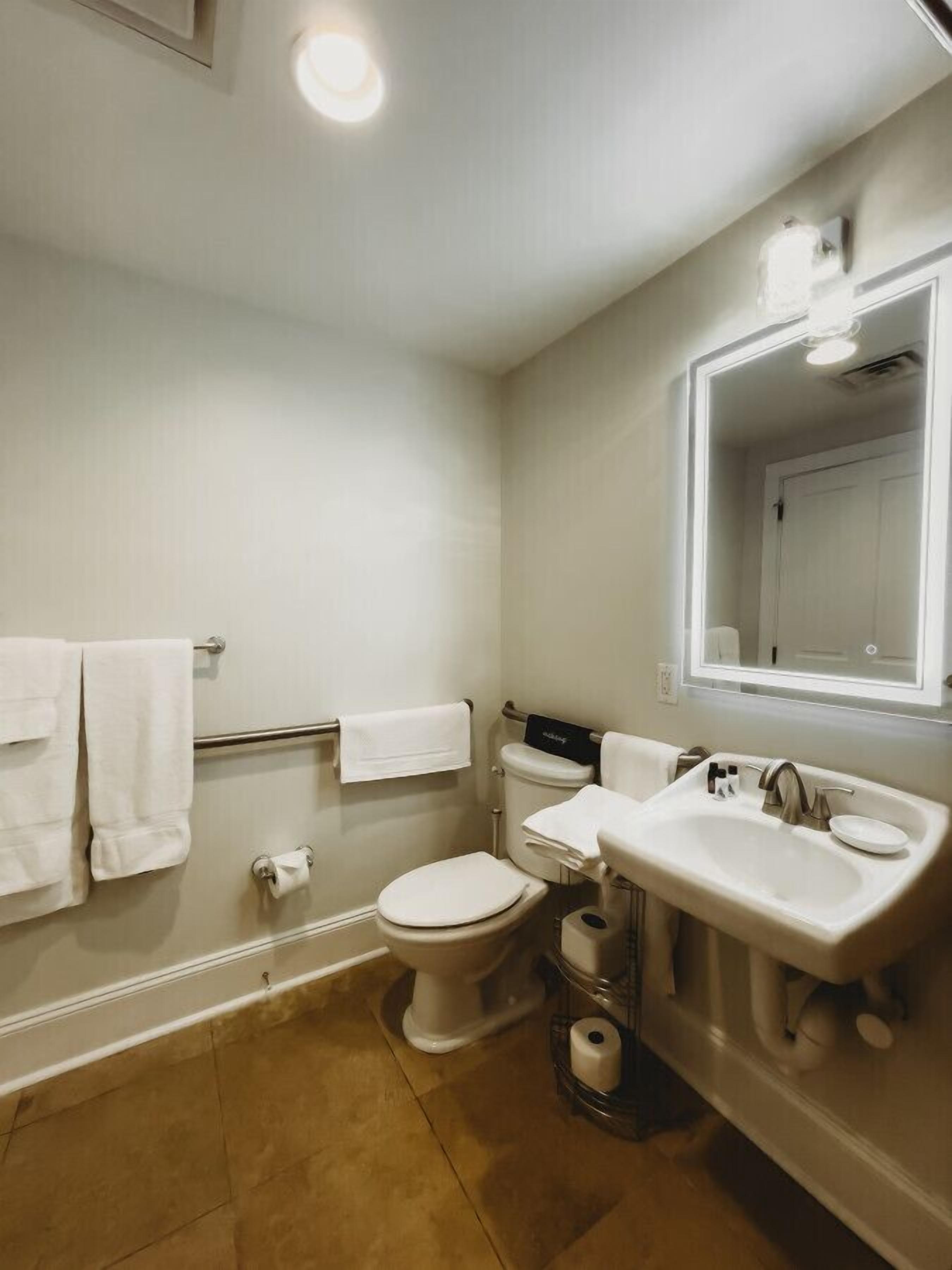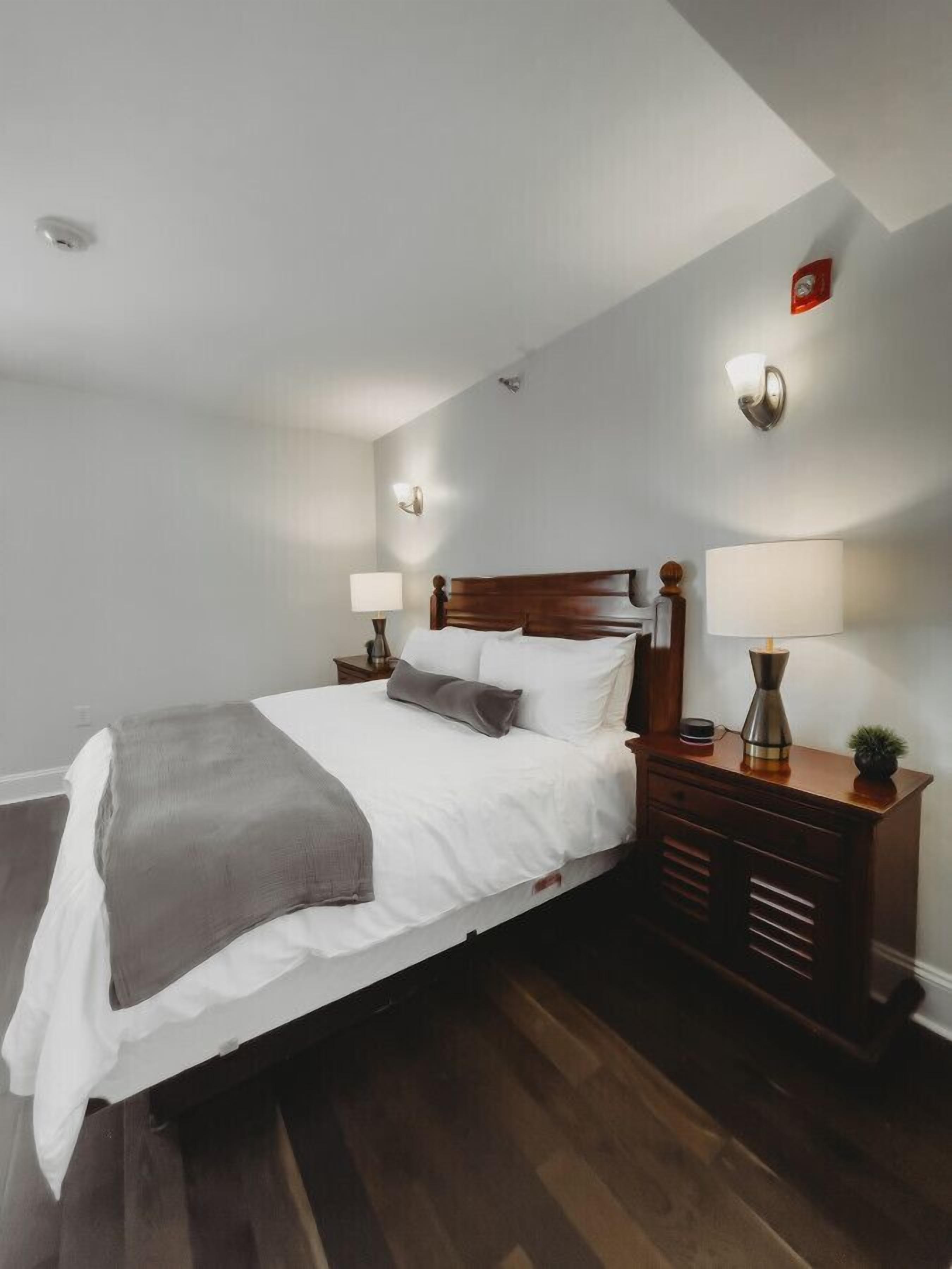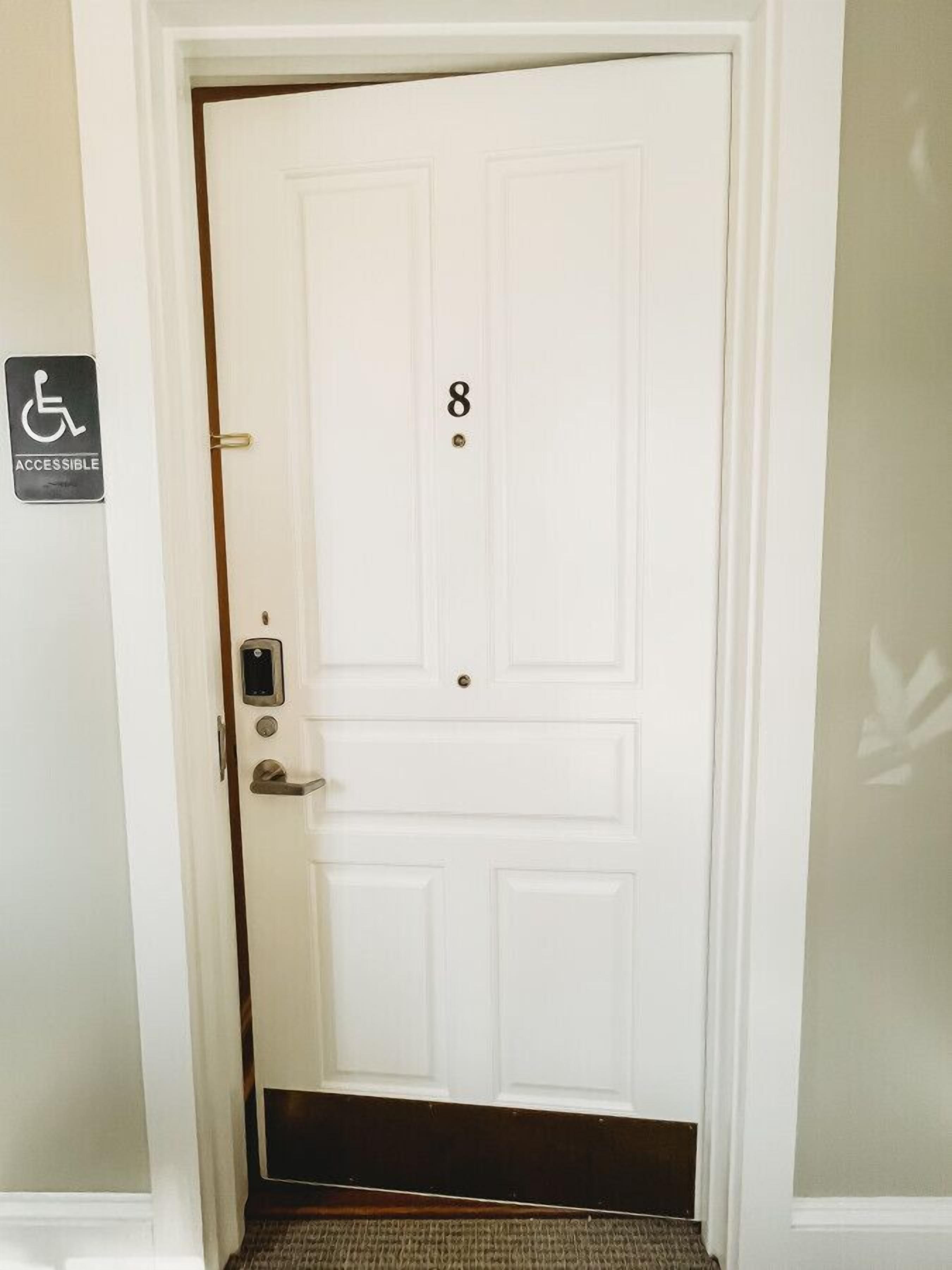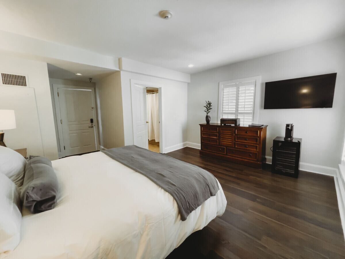 Standard Guestroom (ADA) - 1 King · The Jefferson Inn Rm. 8 Welcome to The Jefferson Inn & 1901 Lounge in beautiful Southern Pines, NC!Room 8 is an ADA accessible standard guestroom featuring a King bed.From the cottage style furniture, to the luxurious linens, to the spacious bathroom, you’ll feel pampered by the amenities and comfort features of our accommodations. The Jefferson Inn is a digital entry property, allowing guests ease of both arrival and departure.Make sure to visit 1901 Lounge, located in the lobby, to enjoy a speakeasy-style craft cocktail and local bite during your stay.Book your stay today and don't miss the historic charm of Southern Pines, NC right out your front door! We can't wait to welcome you.There will be a $300 security deposit hold on your card at check in that gets released 7 days after check in provided there are no damages in the unit.