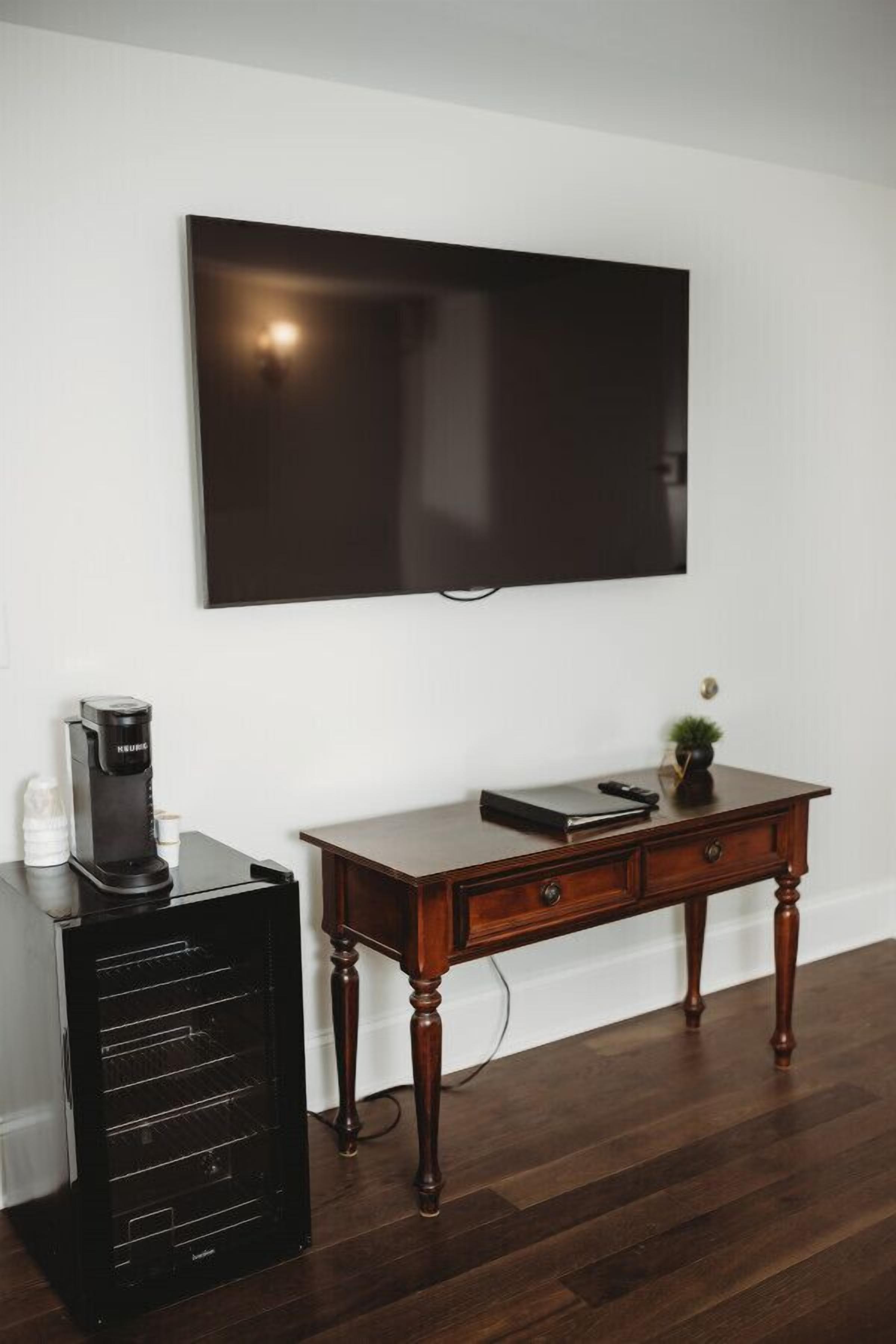 Standard Suite - 2 Queens · The Jefferson Inn Rm. 9 Welcome to the historic Jefferson Inn & 1901 Lounge in beautiful Southern Pines, NC!Room 9 is one of our loveliest suites, featuring two queen beds. The bedroom, which is separated from the living area by covered french doors, has a smart TV. The living area, features a second smart TV and sitting area, along with mini fridge and coffee maker is...