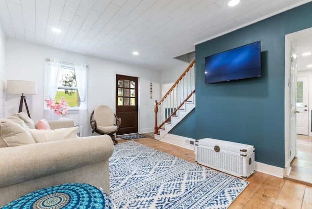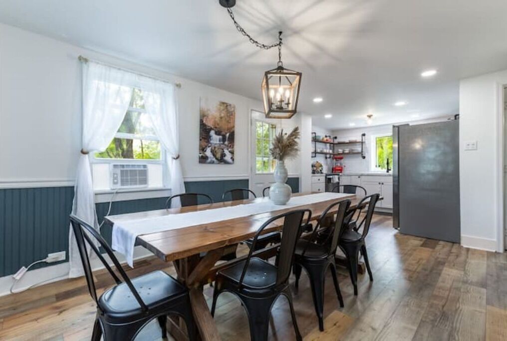 Unique Stay! Ricketts Chic Farmhouse Retreat w/ BUBBLE Tent ***Featured on PA Bucket List and Discover NEPA!***https://pabucketlist.com/spending-the-night-in-a-star-bubble-in-columbia-county-pa/https://www.youtube.com/watch?v=xrWny0jwdegGet ready for amazing stargazing, beautiful sunsets, and comfortable seclusion in this beautifully modernized farmhouse tucked between farm field and forest. This newly renovated farmhouse has tons of amenities (including a stargazing BUBBLE TENT!), allows for you to curl up in cozy comfort, and is perfect for families. Conveniently located 19 min from Ricketts Glen, 20 min from Bloomsburg, and 45 minutes from Knoebels Amusement Park!Upon arrival you will drive down an old dirt/gravel road through beautiful farm fields and will possibly be greeted by a deer or wild turkey. The house sits on a 1+ acre secluded plot surrounded by mature trees and lovely farm fields; it is safe and perfect for the kids to run around on! There is a new deck overlooking the forest with an outdoor dining area and BBQ. There's also a fire pit equipped with outdoor lighting, recliner chairs, and a fully stocked S'mores station. And did we mention there is a BUBBLE tent with a telescope for stargazing? Stillwater is one of the best stargazing areas in all of Pennsylvania so whether you want to enjoy an hour looking up at the heavens or feel adventurous and want to sleep out under the stars (the tent is furnished with a queen bed), this is a unique opportunity you won’t find in many places!Inside you will enter into a comfortable, modern farmhouse living room equipped with couch, rattan chair, and streaming TV, which includes Disney + and Netflix among other channels (note: the Wifi is a bit spotty at times. Streaming can be slow but I work from home and have not had any difficulties with video calls.) The kitchen features an oven, stovetop, full-sized refrigerator, farmhouse sink, waffle maker, popcorn machine, dishwasher, and microwave as well as any cooking utensils you need to cook a proper meal. The coffee and tea station is equipped with a glass pour-over coffee pot, single-serve coffee machine, coffee grinder, and your choice of complimentary coffees and teas. Also downstairs you will enjoy a lovely 8-seat farmhouse dining table with a beautiful chandelier overhead. And finally, grab a good book or enjoy a cup of tea while taking in stunning forest views in the sunroom, which boasts a large daybed and hanging succulent décor.The second floor hosts three bedrooms and a full bathroom. The first bedroom is decorated with simple farmhouse elegance and boasts a queen bed with memory foam mattress, microfiber sheets, and plush pillows. The second bedroom is astronomy themed and contains a queen memory foam mattress/pillows as well as microfiber sheets. The final bedroom houses 2 bunk beds and is perfect for children. With a whimsical firefly mural, children’s tent, star night light, TV with DVD player, and plenty of children’s toys, it is a space that is designed for both play and for rest.We want you to feel as comfortable as possible and offer the following amenities:• Memory foam mattresses for each queen bedroom. Overall there are 2 queen beds, 2 bunk beds (4 twin beds), and one twin day bed. An additional queen bed is outside in the bubble tent if you want to enjoy a night under the stars.• Microfiber sheets and memory foam pillows• A fully equipped bathroom with hair dryer and comfortable towels• Pour over coffee and tea station with Pirouline chocolate wafer sticks• Popcorn machine with popcorn• Box air conditioning units in dining room and both queen bedrooms. The other bedroom has a window fan that will keep the room quite comfortable.• Wifi• Keyless entry system• Large firepit with large outdoor seating and smores station• Deck with outdoor dining area• Lawn games, including badminton, cornhole, wiffle ball, and horseshoes• Foosball table• Bubble stargazing tent• Telescope• Children’s accessories (i.e. Pack N Play, toys, games)• Welcome traysThe entire house is accessible for you, with the exception of the unfinished basement, which is locked. The grass yard and amenities surrounding the house are also completely at your disposal. For your safety and out of respect for our neighbors we ask that you do not trespass on their property (signs are posted).