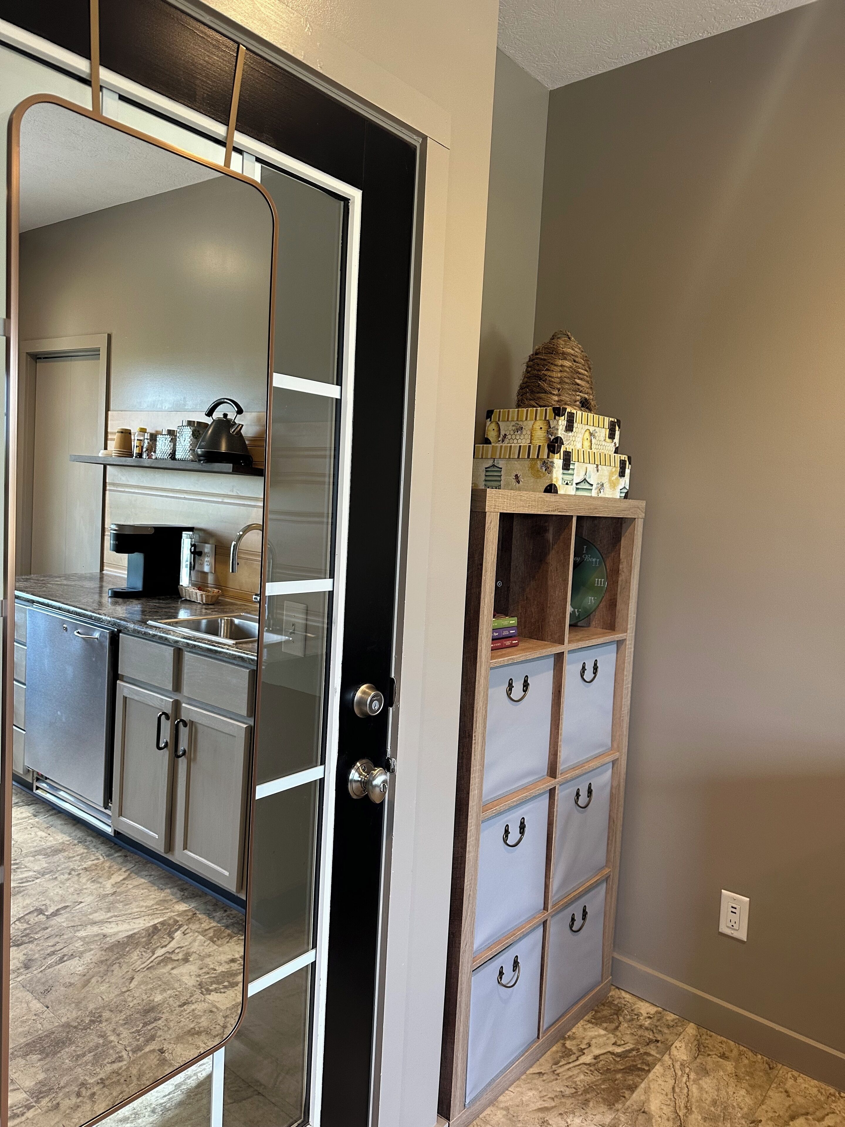 One Bedroom with private bathroom & Lounge This space is private and includes a bedroom with it's own private bathroom, sitting area with a desk, and a dresser and hanging rack for your clothes. You will also have access to the private lounge; feel free to make a cup of coffee/tea, enjoy the snacks, use the fridge/microwave and to hang out and watch TV, read a book or play games.