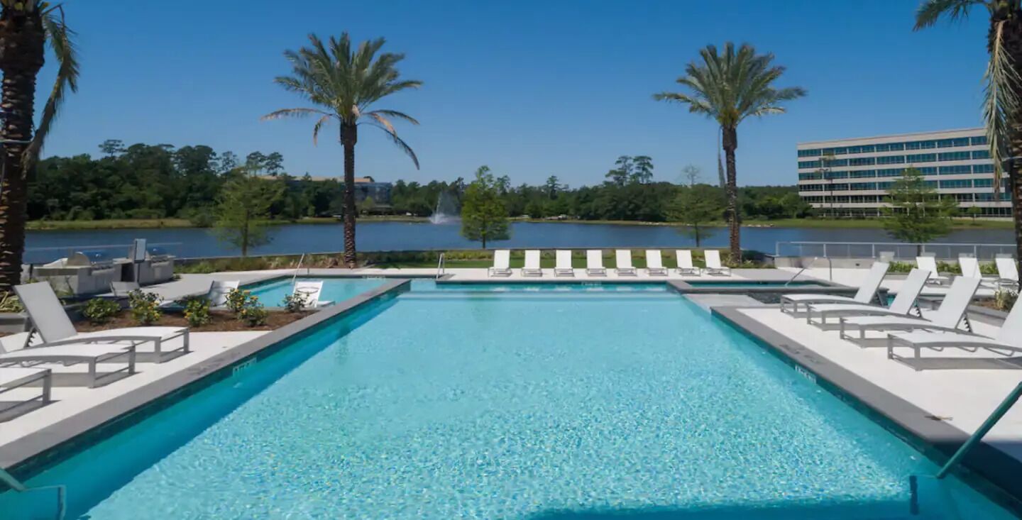 Luxury Living Lakeside A perfect blend of luxury resort living with style in a tight-knit community. You are steps away from upscale restaurants and lakeside activities. This location has necessities of home including washer & dryer, work/study area, gas stove & oven, and free Wi-Fi. In addition to those things, enjoy state-of-the-art amenities such as: fully equipped fitness area, business area, sports lounge w/interactive golf, and a sky lounge to see the beautiful skyline of the #1 town in America...The Woodlands.
