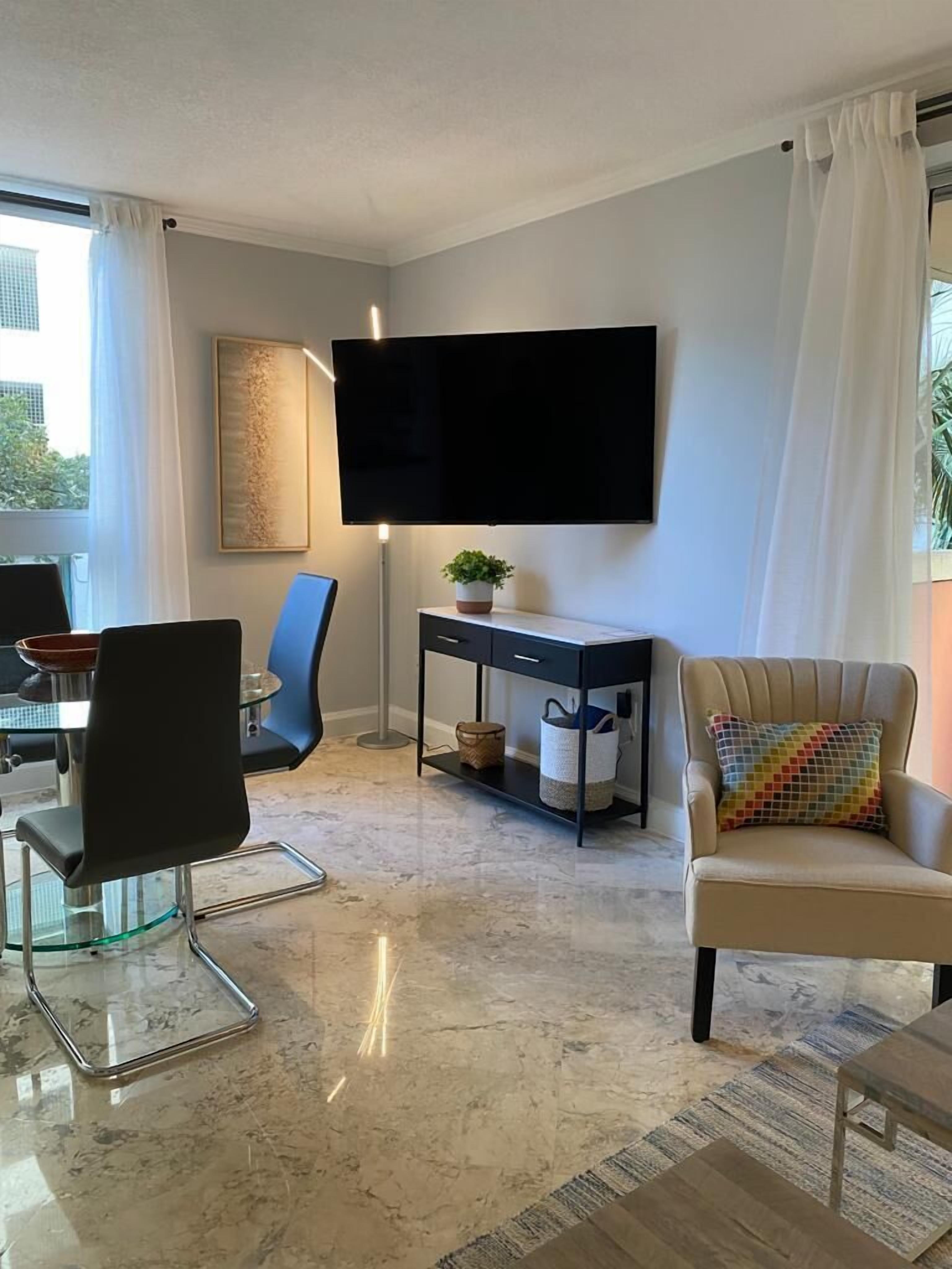 Cozy 1 bedroom unit located in a Condo/Hotel in the heart of Coconut Grove-Free Parking ABOUT THE APARTMENT: Stay in this newly decorated unit that can accommodate up to 4 people comfortably! The unit has a fully equipped kitchen with new appliances & Keurig Coffee machine. Living area includes a queen sized sleeper sofa, dining area/workspace for checking emails. Bedroom has a queen sized bed. T...
