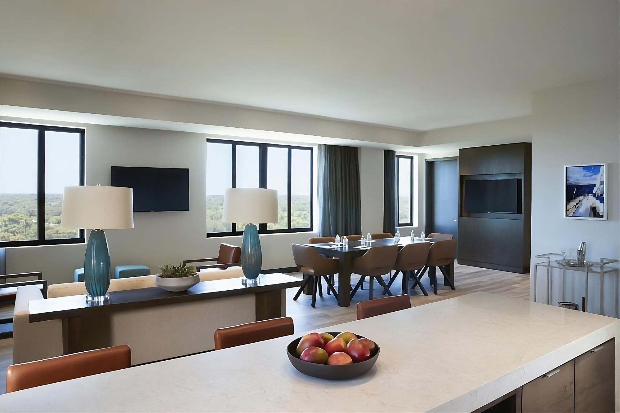 Relax and Recharge! Rooftop Pool, Pets Allowed! Close to University of Miami! Our well-appointed rooms offer the perfect blend of comfort and style. Stay connected with our free in-room WiFi and catch up on your favorite shows on the flat-screen TV. Experience the vibrant flavors of the Caribbean at our onsite restaurant. Indulge in delicious brunch options and relax with a refreshing drink during happy hour. Looking to soak up the sun? Our rooftop pool is the ideal place to unwind, complete with sun loungers and pool umbrellas. For those looking to explore the area, we offer bike rentals to help you discover Miami at your own pace. For those looking to stay active, our gym is equipped with state-of-the-art equipment to help you maintain your fitness routine. The hotel features laundry facilities, ensuring that you can conveniently freshen up your wardrobe during your stay. Our hotel is the perfect choice for both business and leisure travelers looking for a comfortable and enjoyable stay in Miami.PLEASE NOTE:- The resort fee is not included in the daily rate. A MANDATORY RESORT FEE OF $27/DAY/UNIT PLUS TAX WILL BE COLLECTED UPON ARRIVAL.- The listing is distributed and managed by RoomPicks Accommodations.THE SPACE This 1150sf THesis Penthouse Suitefeatures:- 1 King bed;- Panoramic park and Biscayne Bay water views;- Separate living room with ample seating;- Complimentary high-speed wireless internet;- Charging station for electronics;- Desk with electrical outlet;- 55-inch flatscreen TV with premium movie channels;- Kitchenette with a microwave, refrigerator, and tableware;- All linens, towels, and bathroom essentials are provided. You don’t need to bring a thing!!THE PROPERTY Our family-friendly property provides the following on-site amenities:- 24/7 Front desk and Security;- Rooftop swimming pool;- Loungers, umbrellas, and towels by the pool;- On-site restaurant and bar;- Snack bar;- Fitness center;- Bike rental;- Business center;- ATM/cash machine on site;- Pet fee: USD 150 per pet, per stay;- Electric vehicle charging station;- Valet parking is available and costs USD 39 per day.Please ensure you have a valid ID for check-in, as it is mandatory for entry.