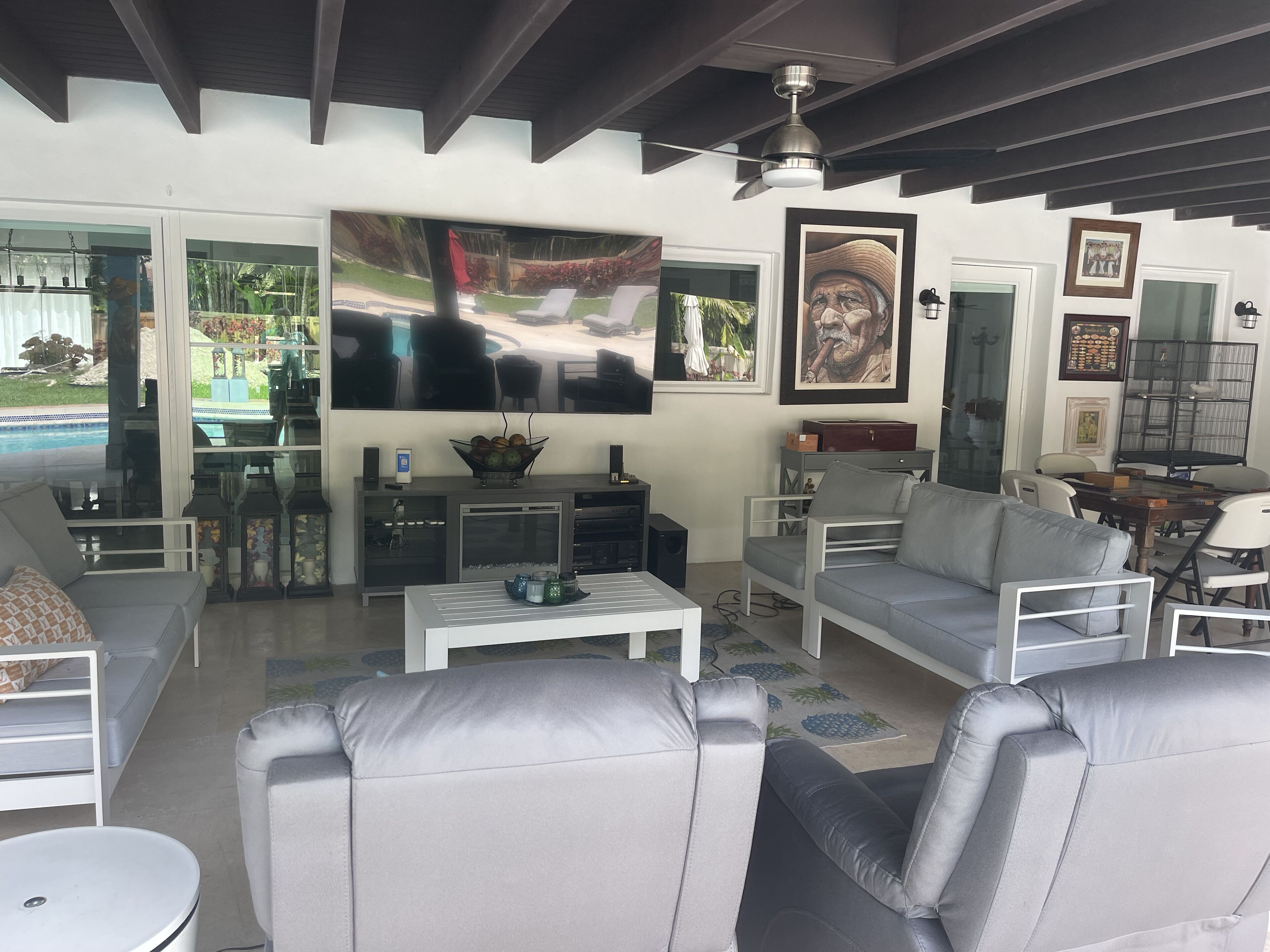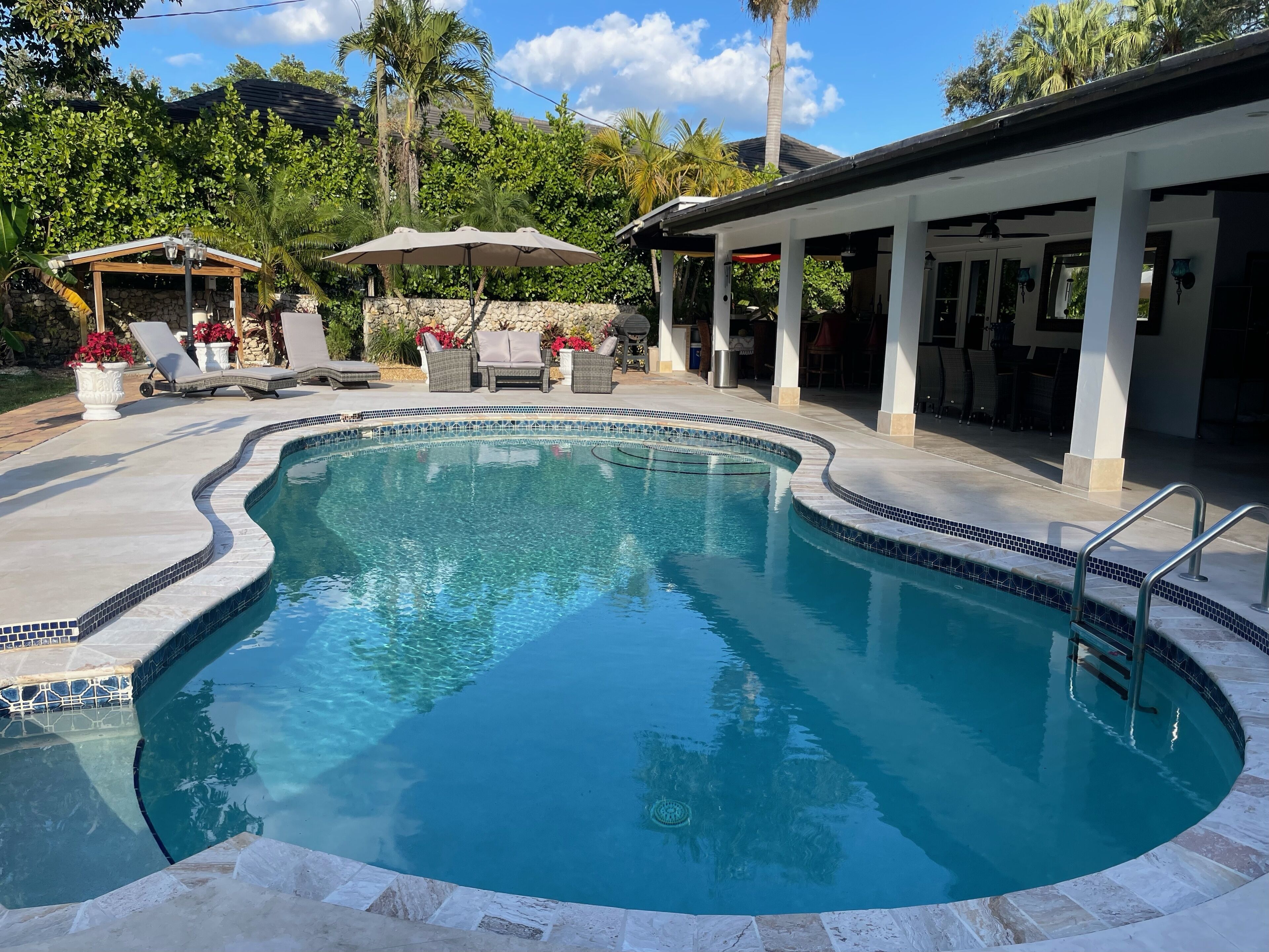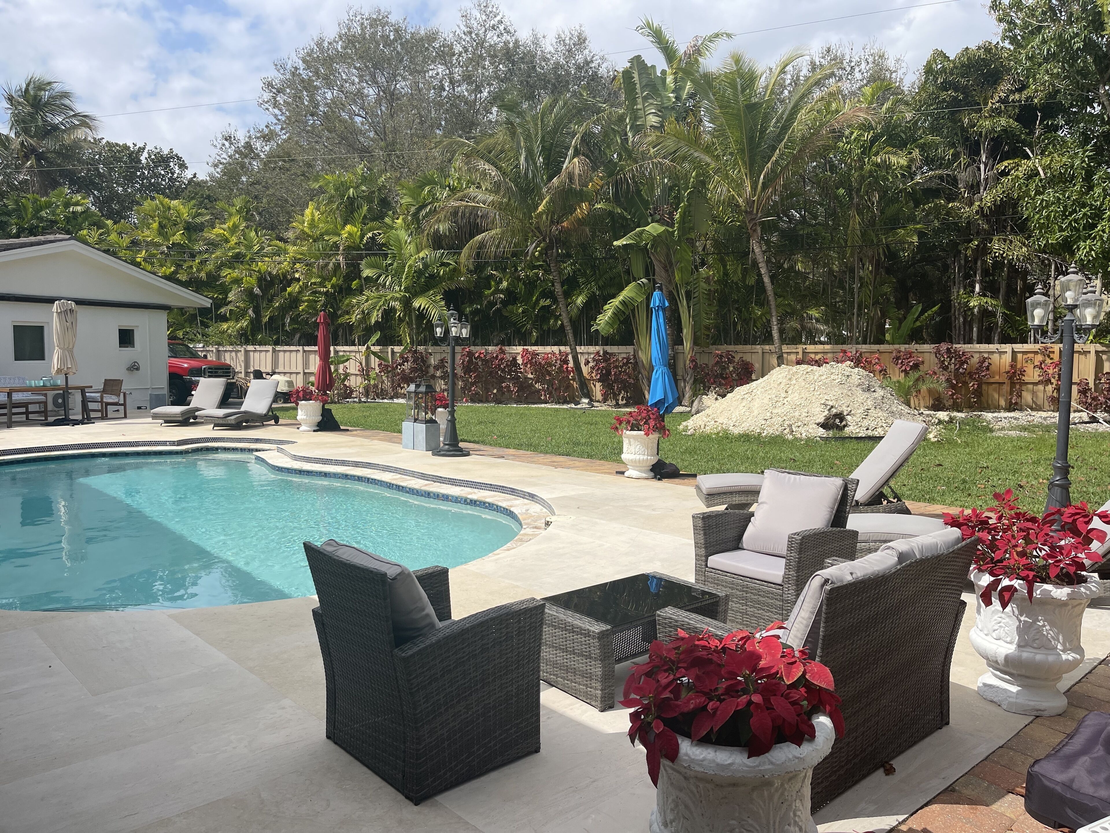 Luxury Estate In Historic Old Cutler Rd This beautiful property sits on a corner acre in the historic Old Cutler Road in Palmetto Bay Florida.The property has beautiful landscaping and century old Oak and Banyan trees as well as beautiful plush gardens. It is located in an area where homes are all high end and blocks from Byscane Bay.Some of the must sees in the area are Fairchild Tropical Gardens, Matheson Hammock Park and Marina, The Deering Estate, Thalatta Estate Park and for great dining you can visit the famous Red Fish Restaurant on the water or go to downtown South Miami for restaurants for all tastes.You are 7.5 miles to Coconut Grove, 9 miles to the beaches in Key Biscayne, 15 miles to South Beach and 39 miles to the entrance of the Florida Keys.This estate has marble floors throughout and beautiful furniture. The walls are covered with art work from many famous artist. It is an open floor plan with very large open areas.The bedrooms are very spacious with extremely comfortable beds. The master bedroom has a King bed, two rooms have 2 queen beds each and another room has a Queen and a single bed. We also have several inflatable mattresses available if needed.For those who enjoy cooking the kitchen is very spacious and equipped with everything a chef could want. Every bedroom has direct access to the large covered terrace where comfortable seating and an 85" HDTV awaits.The pool area is also very large with additional poolside seating and loungers are plentiful. There is a cigar humidor and dominos table for your enjoyment.There is also a full outdoor kitchen with a dining table for six. In addition there is another outdoor dining area that seats eight. There are also three conversation area with sofas, loveseats, arm chairs, recliners and a fireplace. For those who enjoy the open the estate also offers an open terrace with a beautiful garden view just steps from the pool area.For your security this home has hurricane proof impact windows and doors as well as outdoor security cameras. This is an upscale neighborhood and very safe. South Dixie Hwy. is just 1 mile away where there are all types of restaurants, shops, boutiques and the beautiful open air mall "The Falls"This beautiful and welcoming estate has it all. It is a fantastic for large groups and families. We have an in-house chef which if you want to indulge in latin fusion or traditional Latin American or cuban dishes, Hope you join us soon.