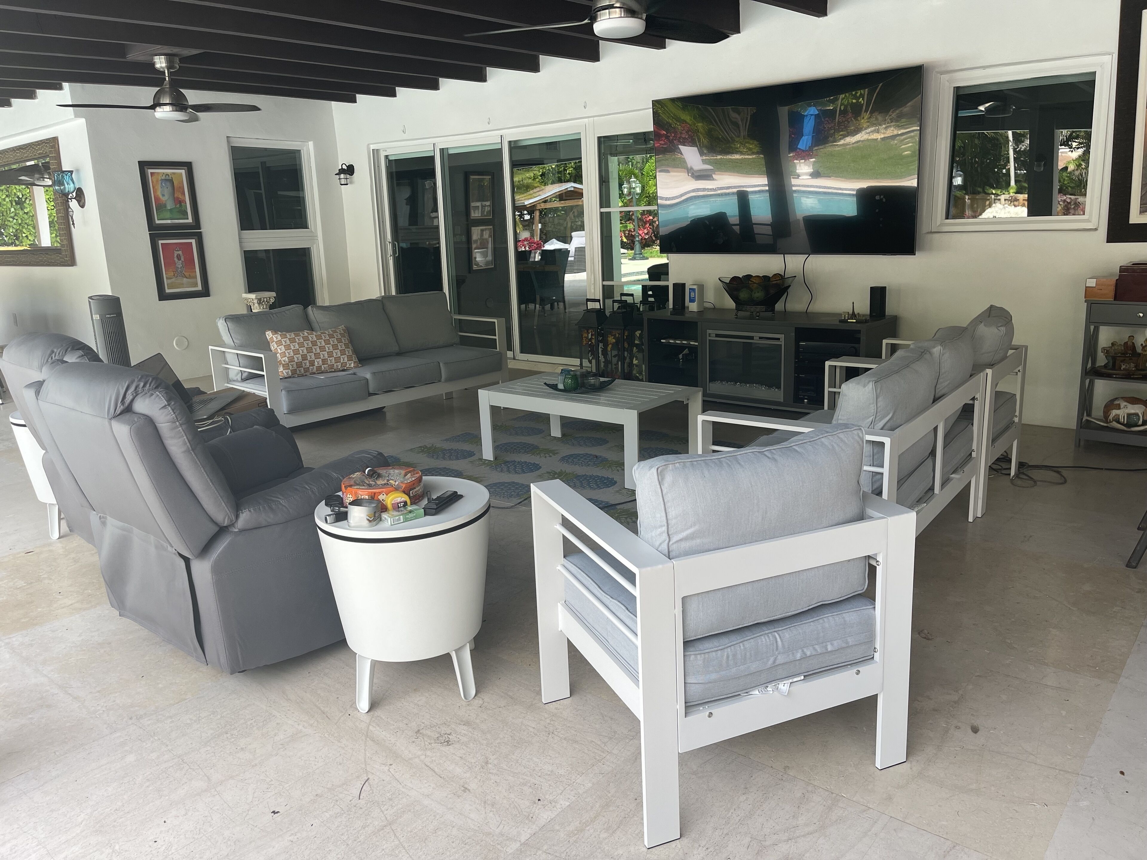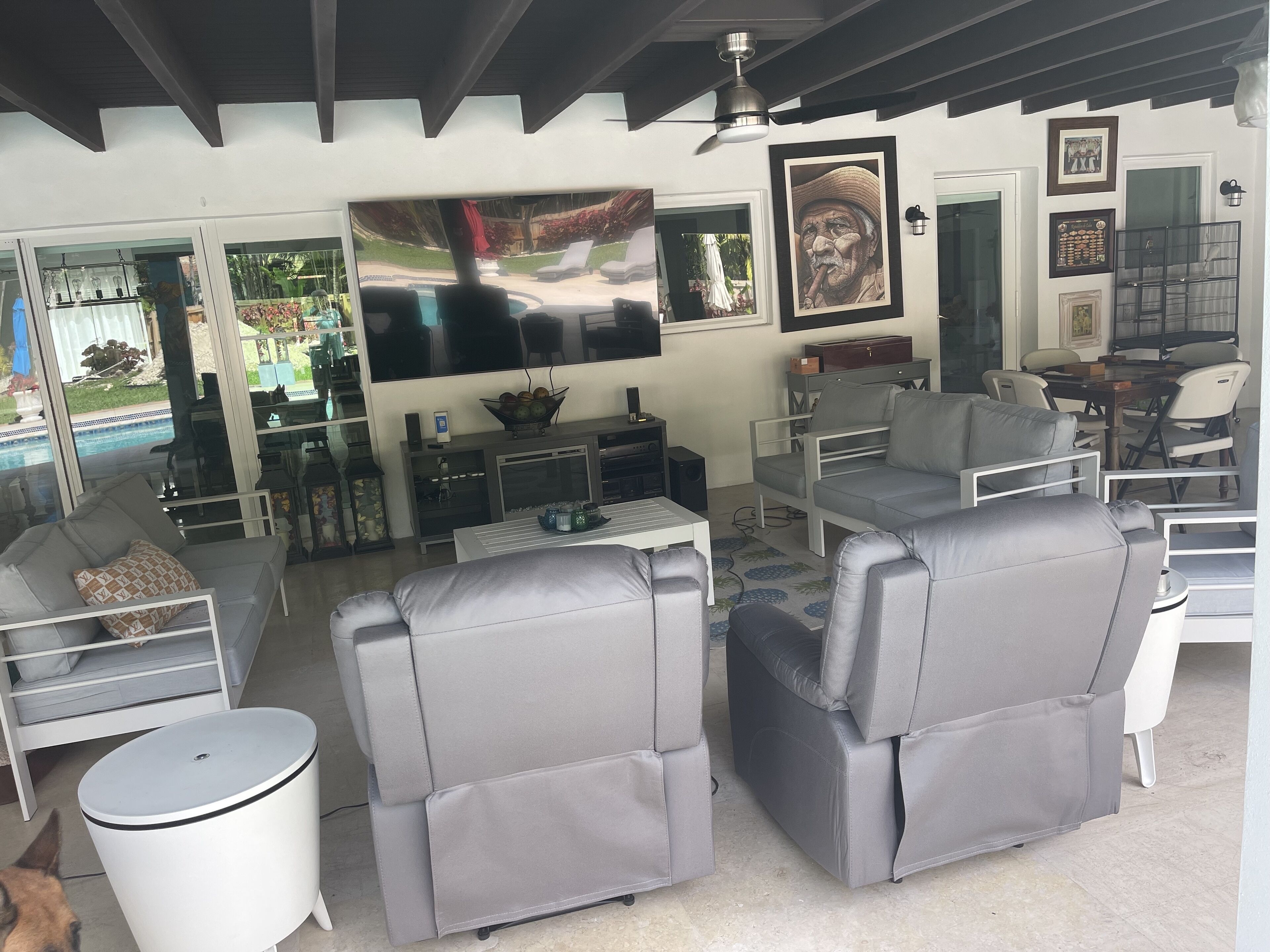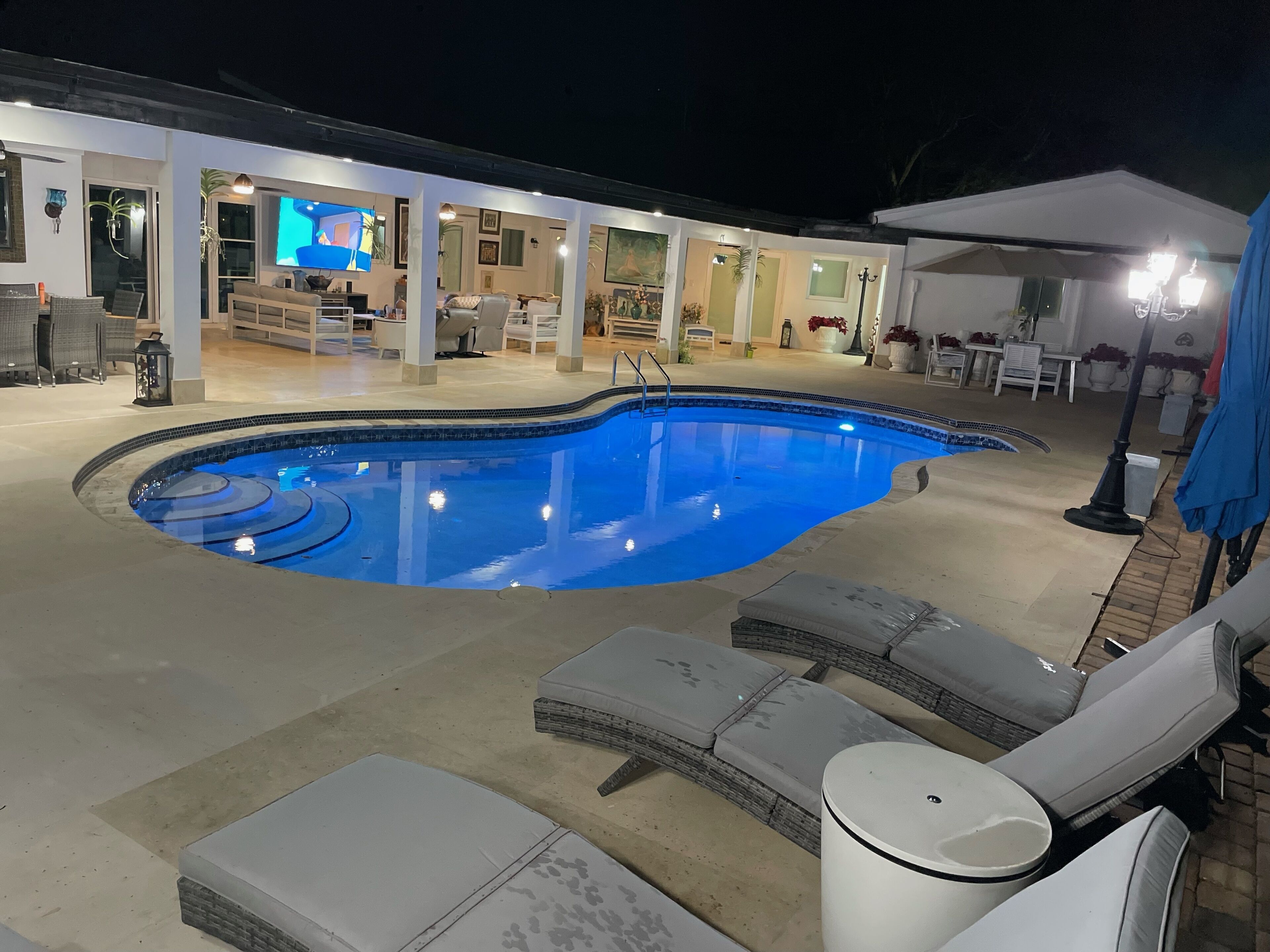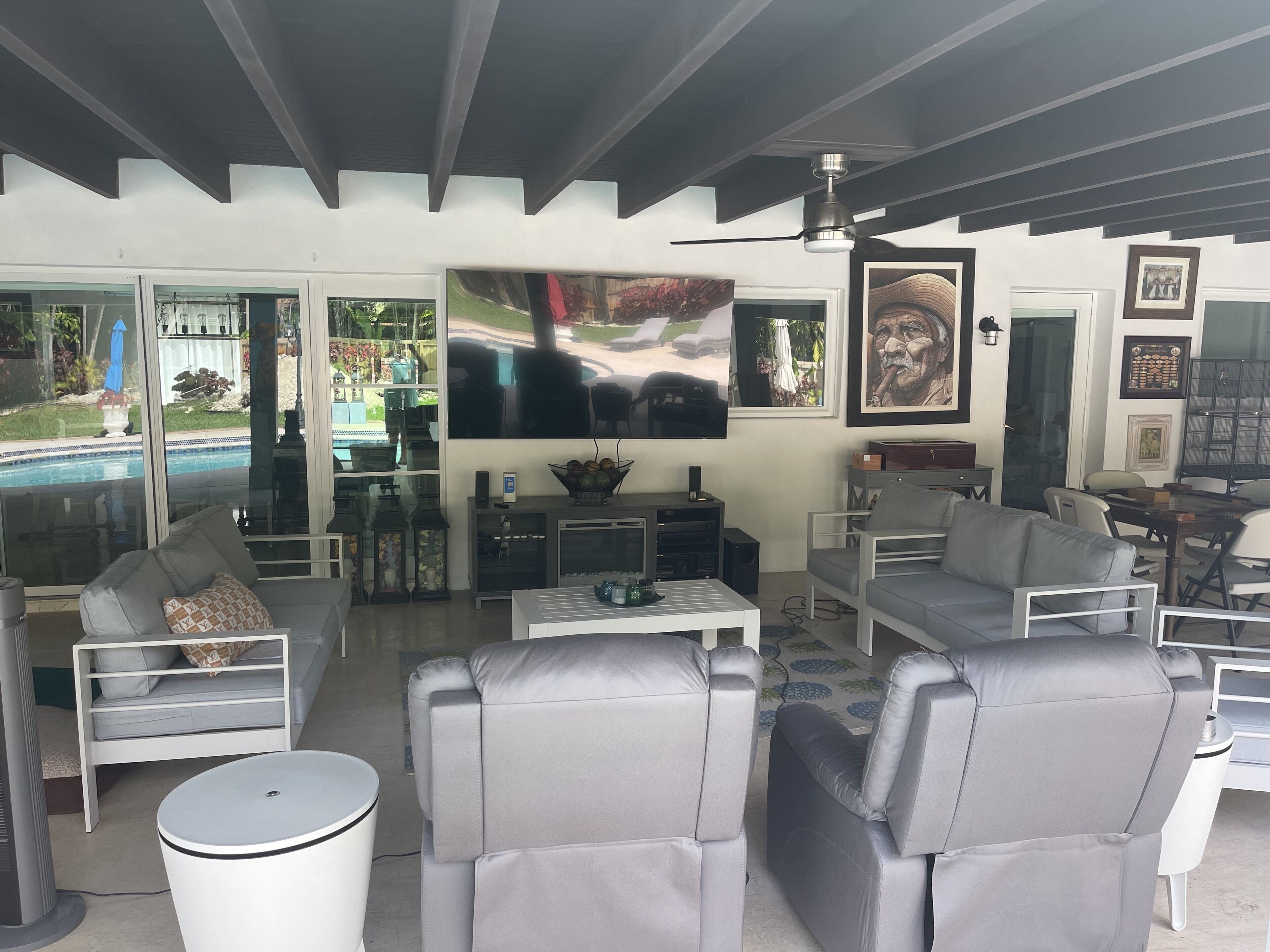 Luxury Estate In Historic Old Cutler Rd This beautiful property sits on a corner acre in the historic Old Cutler Road in Palmetto Bay Florida.The property has beautiful landscaping and century old Oak and Banyan trees as well as beautiful plush gardens. It is located in an area where homes are all high end and blocks from Byscane Bay.Some of the must sees in the area are Fairchild Tropical Gardens, Matheson Hammock Park and Marina, The Deering Estate, Thalatta Estate Park and for great dining you can visit the famous Red Fish Restaurant on the water or go to downtown South Miami for restaurants for all tastes.You are 7.5 miles to Coconut Grove, 9 miles to the beaches in Key Biscayne, 15 miles to South Beach and 39 miles to the entrance of the Florida Keys.This estate has marble floors throughout and beautiful furniture. The walls are covered with art work from many famous artist. It is an open floor plan with very large open areas.The bedrooms are very spacious with extremely comfortable beds. The master bedroom has a King bed, two rooms have 2 queen beds each and another room has a Queen and a single bed. We also have several inflatable mattresses available if needed.For those who enjoy cooking the kitchen is very spacious and equipped with everything a chef could want. Every bedroom has direct access to the large covered terrace where comfortable seating and an 85" HDTV awaits.The pool area is also very large with additional poolside seating and loungers are plentiful. There is a cigar humidor and dominos table for your enjoyment.There is also a full outdoor kitchen with a dining table for six. In addition there is another outdoor dining area that seats eight. There are also three conversation area with sofas, loveseats, arm chairs, recliners and a fireplace. For those who enjoy the open the estate also offers an open terrace with a beautiful garden view just steps from the pool area.For your security this home has hurricane proof impact windows and doors as well as outdoor security cameras. This is an upscale neighborhood and very safe. South Dixie Hwy. is just 1 mile away where there are all types of restaurants, shops, boutiques and the beautiful open air mall "The Falls"This beautiful and welcoming estate has it all. It is a fantastic for large groups and families. We have an in-house chef which if you want to indulge in latin fusion or traditional Latin American or cuban dishes, Hope you join us soon.