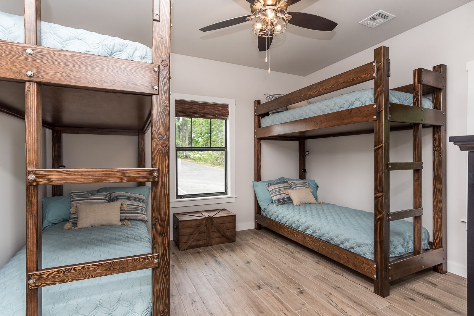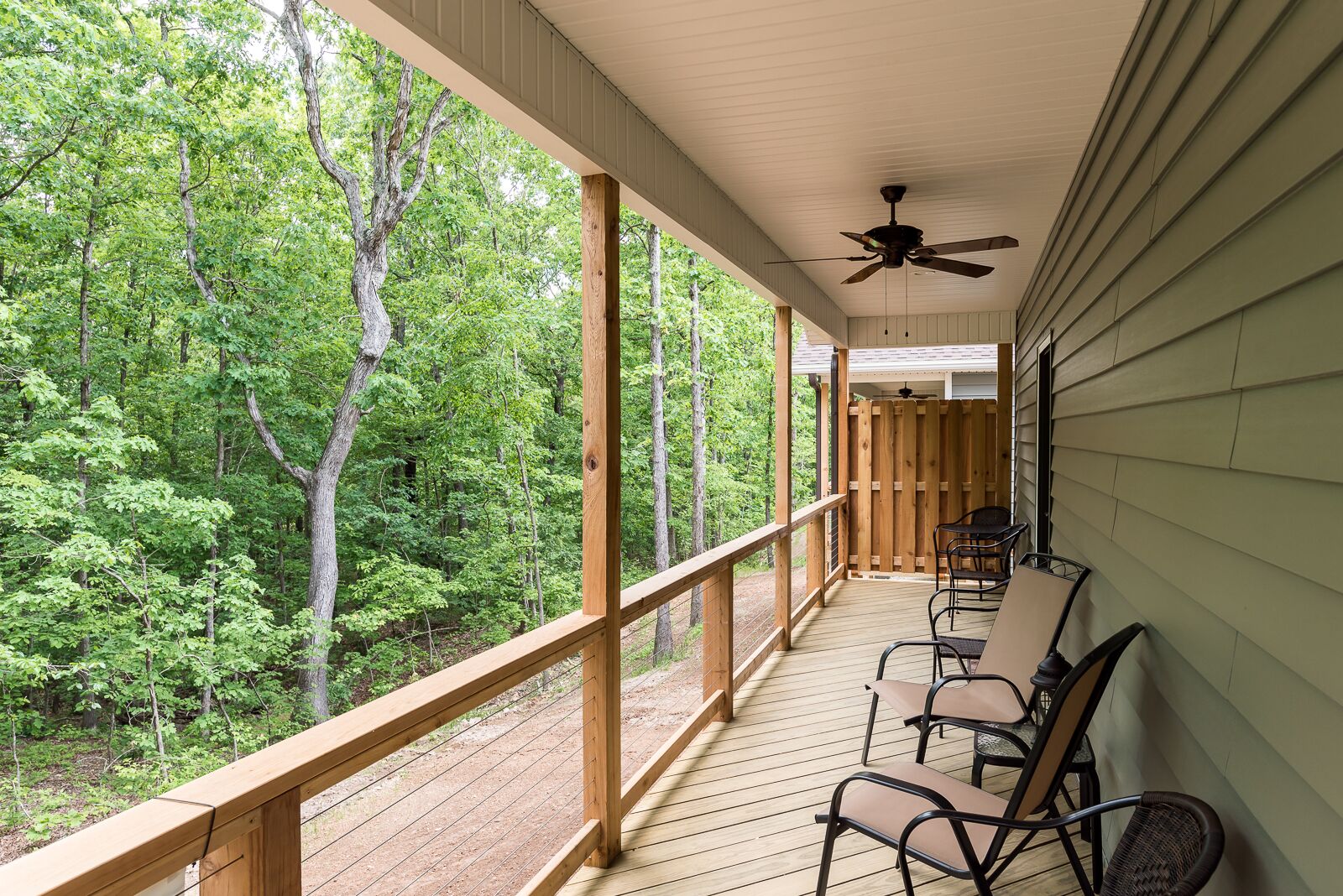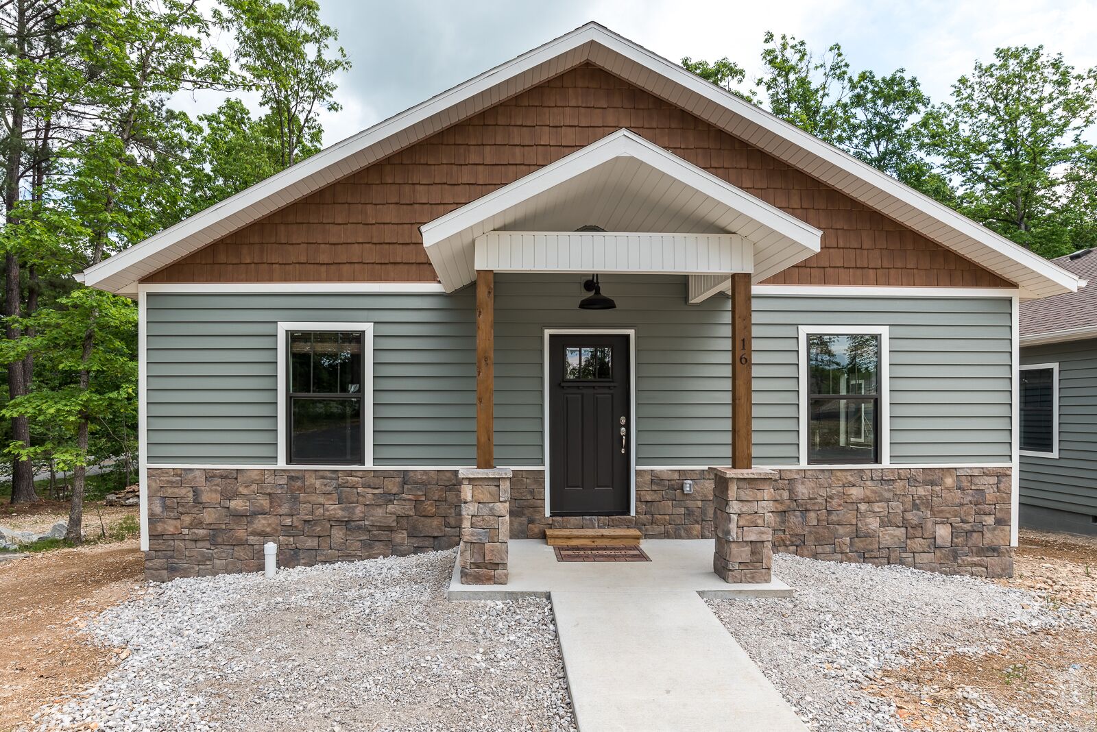 Entire Back 40 Bungalow 2bd 2ba Sleeps 6 Each unit sleeps 4 - 8 people and offers 2 bedrooms and 2 bathrooms. These custom built bungalows have all the bells and whistles welcoming cyclists, golf groups, family reunions, wedding parties, corporate gatherings and more! Built right on the Back 40 Trail each home has tile floors throughout. Escape to an outdoor lovers dream! Trails Edge Cabins offer the perfect, convenient and adventurous retreat to the great outdoors! Stay in the newly constructed cabins with all the amenities you need, right on the biking and walking trails! Beautiful scenery of wooded hills, rocky bluffs, and lake view sunsets. Perfect for couples looking to escape and families looking for adventure! These state of the art cabins were built with bicyclists in mind. They offer secure bike storage, special mud rooms with slat walls for all your biking gear, and modern home finishes that make your stay comfortable. Rent one unit or the entire neighborhood! These cabins are great for family gatherings, reunions, groups, outings, accommodations for wedding parties, and so much more! Think outside the box and book your stay at a Trails Edge Cabin!