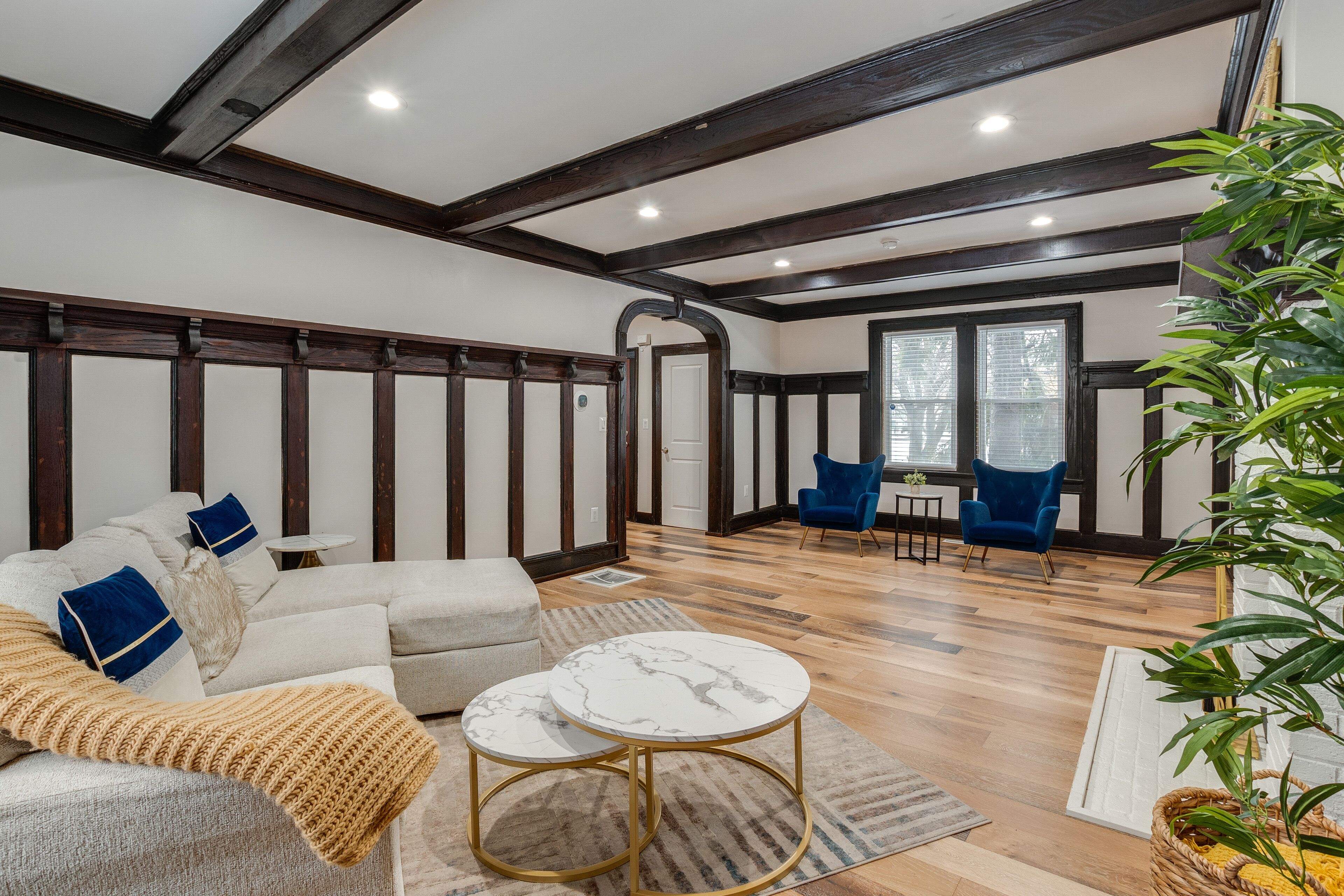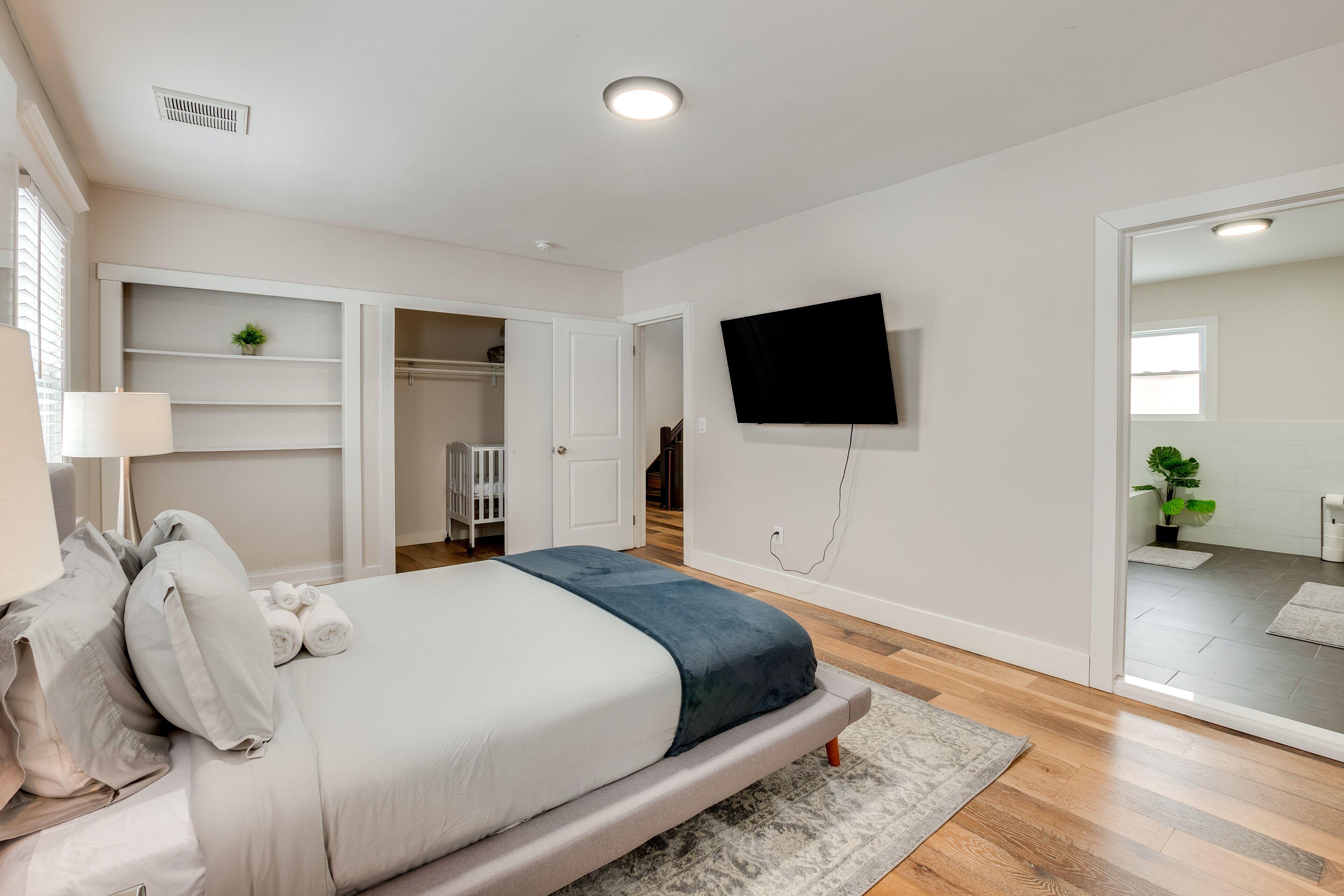 Spacious East Orange Home: Steps to Elmwood Park! A memorable New Jersey getaway awaits at this East Orange vacation rental! Conveniently located just 1 mile from a train that'll take you to New York City, this 3-bedroom, 3-bath home offers easy access to the Big Apple's attractions and boasts plenty of room for your family or group to relax. Take a stroll in Elmwood Park, attend an event at Prudential Center, or head into the city for some sightseeing. After fun-filled days, cook a delicious dinner and unwind while watching the Smart TVs.-- THE PROPERTY --Pet Friendly w/ Fee | Fully Equipped Kitchen | WFH FriendlyBedroom 1: Queen Bed, Full Sleeper Sofa | Bedroom 2: Queen Bed | Bedroom 3: 2 Twin Beds | Additional Sleeping: CribMAIN FEATURES: 3 Smart TVs, private yard, jetted tub, desk workspace, dining table, en-suite bathroomKITCHEN: Keurig coffee maker, dishwasher, microwave, refrigerator, stove/oven, cooking basicsGENERAL: Free WiFi, central A/C & heating, linens/towels, complimentary toiletries, hair dryer, trash bags/paper towelsFAQ: 9 exterior security cameras (facing out), pet fee (paid pre-trip)ACCESSIBILITY: 3-story home, exterior stairs required to enter, all bedrooms on 2nd floorPARKING: Shared driveway parking, free street parking (first-come, first-served)-- THE LOCATION --THINGS TO DO: Elmwood Park (steps away), Branch Brook Park (3 miles), Prudential Center (3 miles), Red Bull Arena (5 miles), South Mountain Reservation (5 miles), Liberty Science Center (16 miles), SoJo Spa Club (20 miles)ENTERTAINMENT: New Jersey Performing Arts Center (3 miles), The Wellmont Theater (6 miles), American Dream (12 miles)NEW YORK CITY (~13 miles) Times Square, Empire State Building, Radio City Music Hall, The Museum of Modern Art, Statue of Liberty, The Museum of Modern ArtPUBLIC TRANSIT: East Orange Station (0.8 miles), Brick Church Station - train to NYC (1 mile)AIRPORT: Newark Liberty International Airport (10 miles)-- REST EASY WITH US --Evolve makes it easy to find and book properties you’ll never want to leave. You can relax knowing that our properties will always be ready for you and that we’ll answer the phone 24/7. Even better, if anything is off about your stay, we’ll make it right. You can count on our homes and our people to make you feel welcome--because we know what vacation means to you.-- POLICIES --- No smoking- Pet friendly w/ $50 fee (+ fees & taxes)- No events, parties, or large gatherings- Must be at least 21 years old to book- Additional fees and taxes may apply- Photo ID may be required upon check-in- NOTE: This 3-story home requires using exterior stairs to enter. All bedrooms are located on the 2nd floor and require additional interior stairs to access- NOTE: Your safety matters. This property features 9 exterior security cameras: 1 camera is located on the front of the home facing the driveway, 1 camera is located on the front of the home facing the front driveway/sidewalk and front outdoor entry, 1 camera is located on the side of the home facing Freeman Avenue, 1 camera is located on the side of the home facing the side yard between the home and the neighbors' home, 1 camera is located on the back of the home facing the backyard from Elmwood Avenue, 1 camera is located on the back of the home facing the back door, 1 camera is located on the back of the home facing the backyard from the door to Elmood Avenue, 1 camera is located on the back of the home facing the middle of the backyard to the back door, 1 camera is located on the side door facing the side outdoor entry on Elmwood Avenue, and 1 camera is located on the front door facing the facing the front outdoor entry on Freeman Avenue. The cameras are outward facing and do not look into interior spaces. The cameras actively record video and sound while guests are in residence