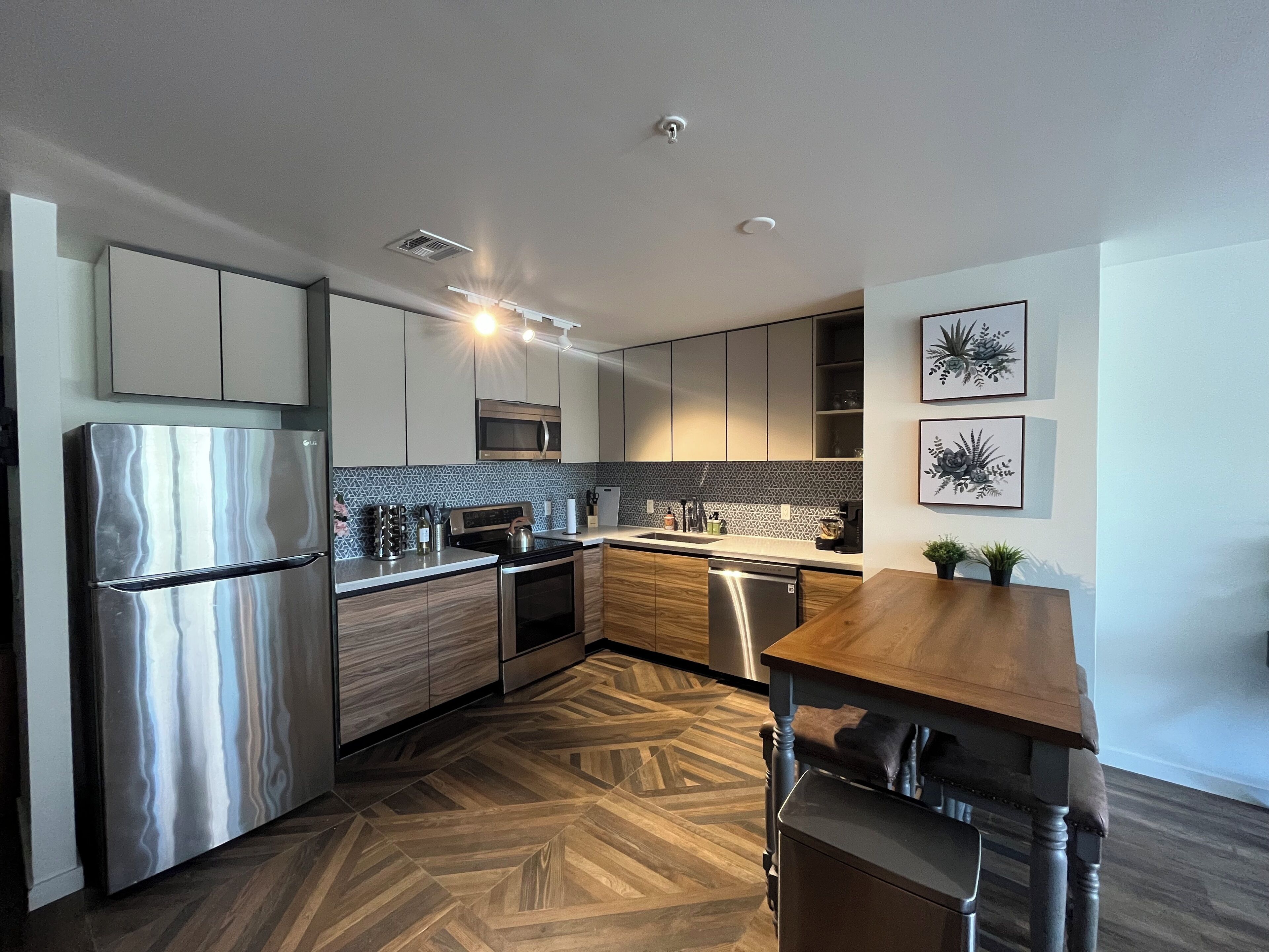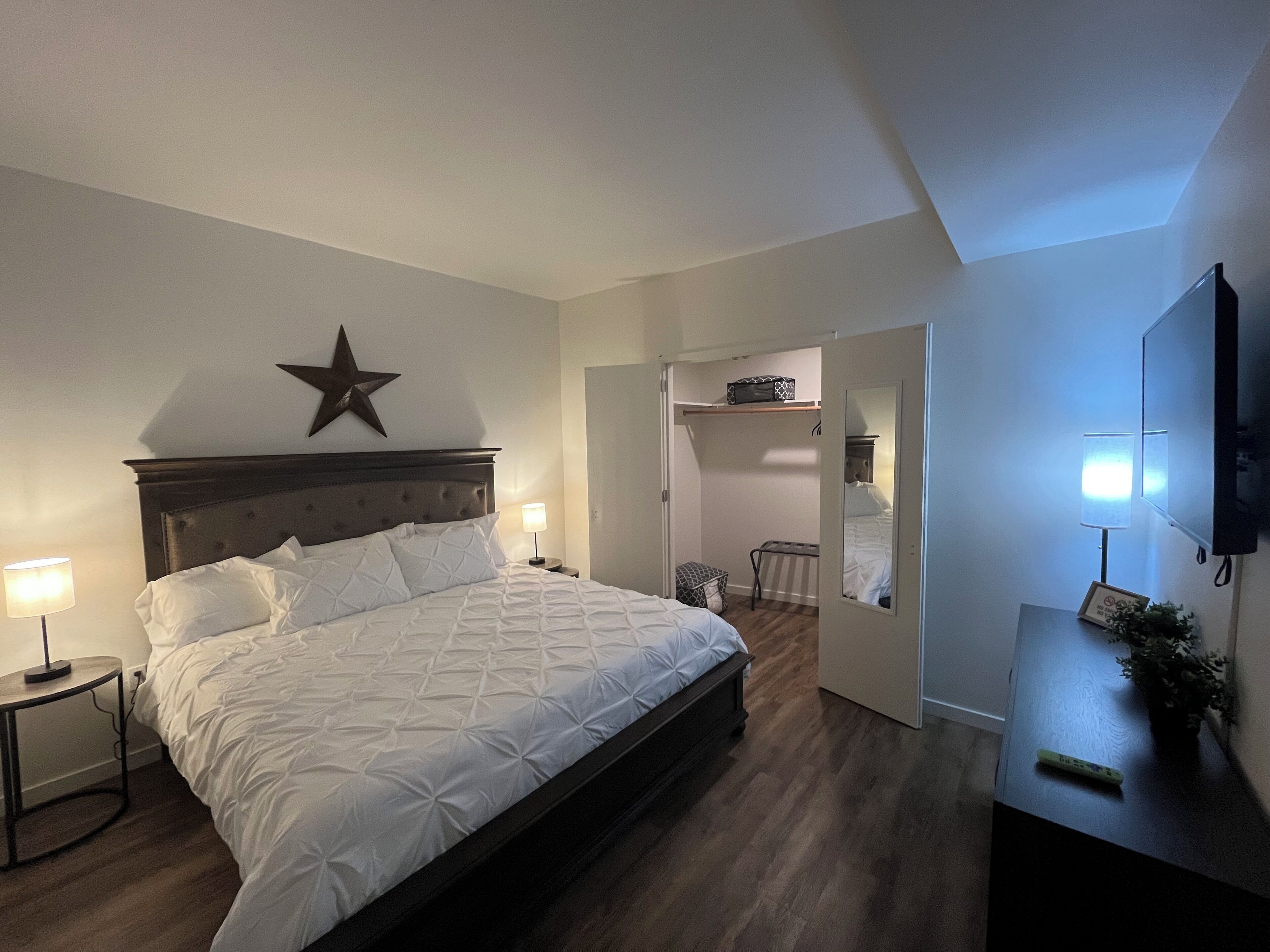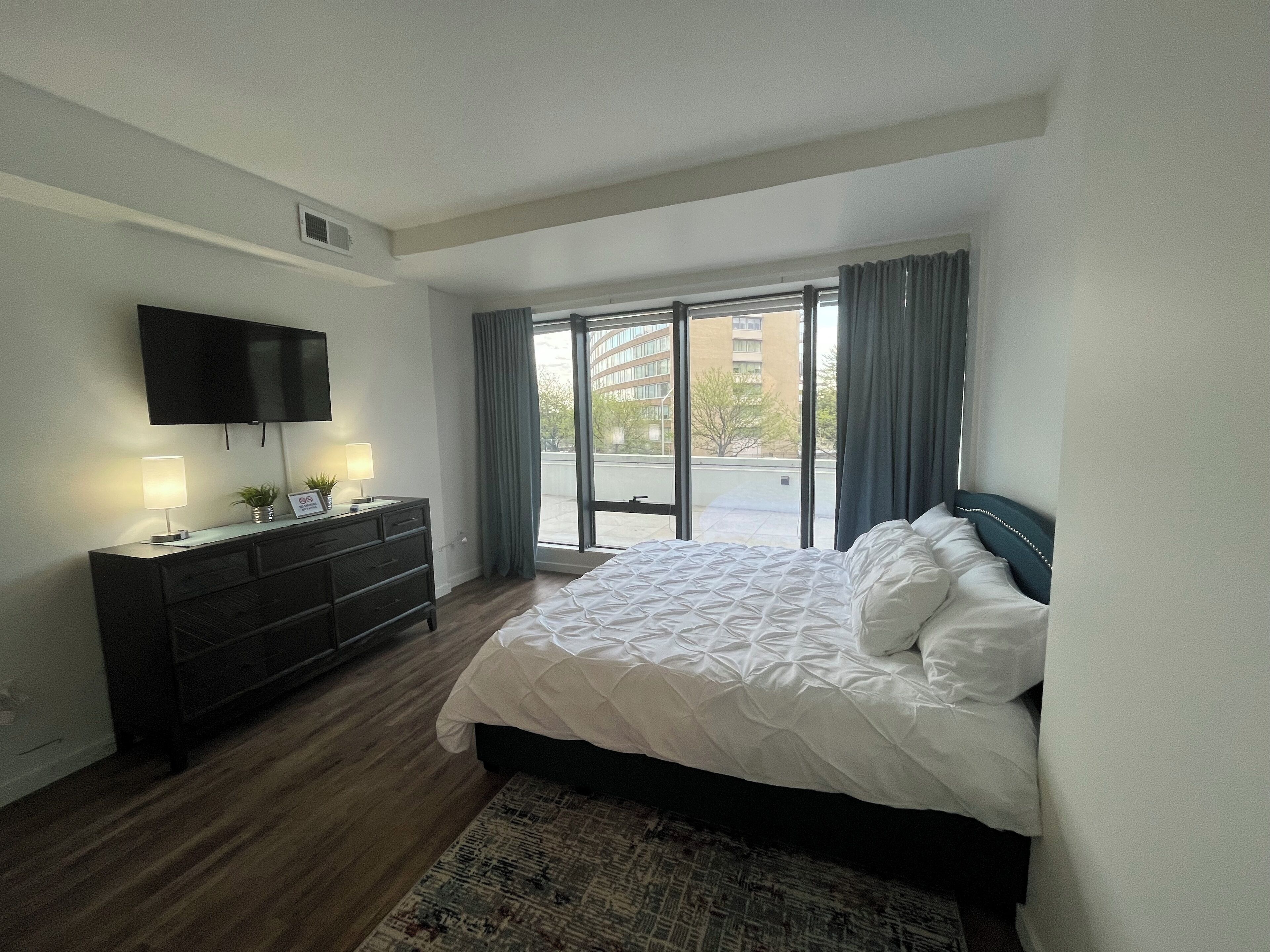 2BR Suite w/patio near NYC train & Seton Hall, w/ WiFi, fitness room, parking Consider this apartment your home away from home while you visit East Orange. 2 king bedrooms, ensuring a comfortable stay for up to 6 guests. The bathroom is equipped with a hair dryer and a relaxing bathtub. In addition to the cozy bedrooms, there is a spacious living room with a sofa bed, providing an extra sleeping...