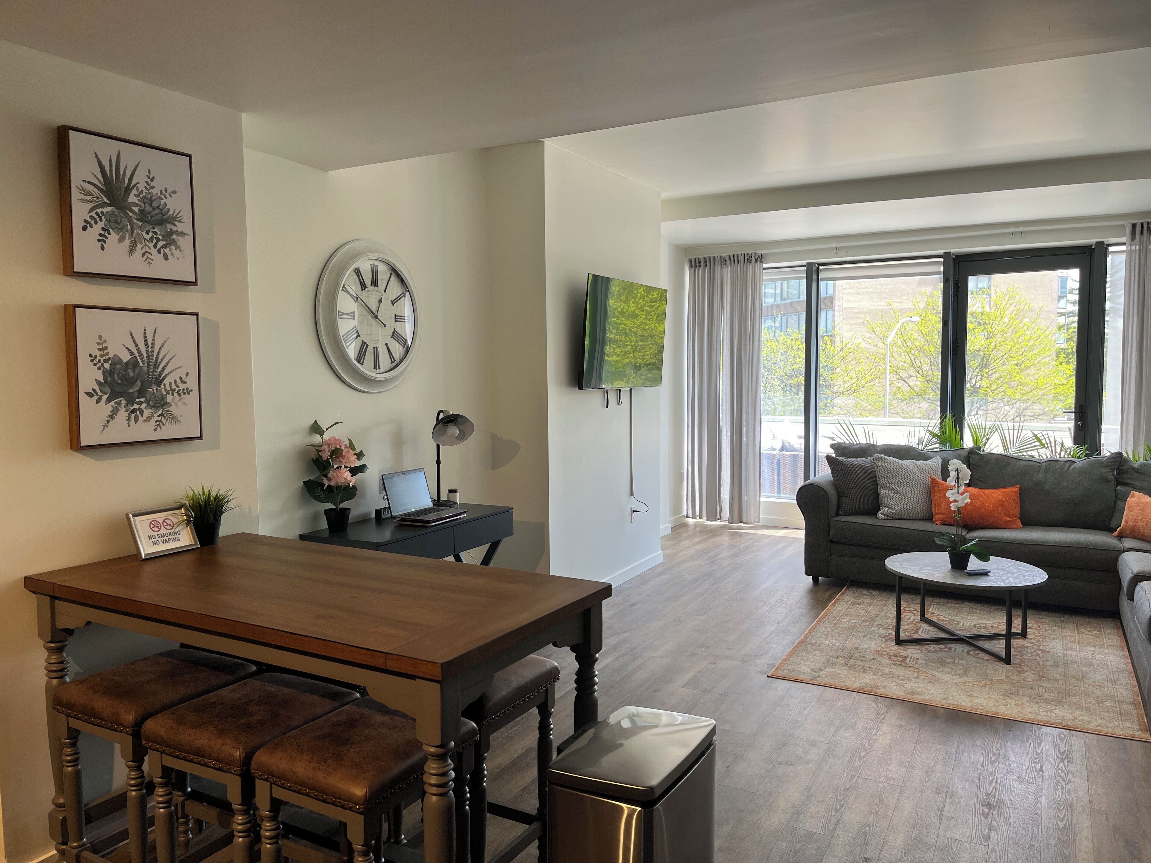 2BR Suite w/patio near NYC train & Seton Hall, w/ WiFi, fitness room, parking