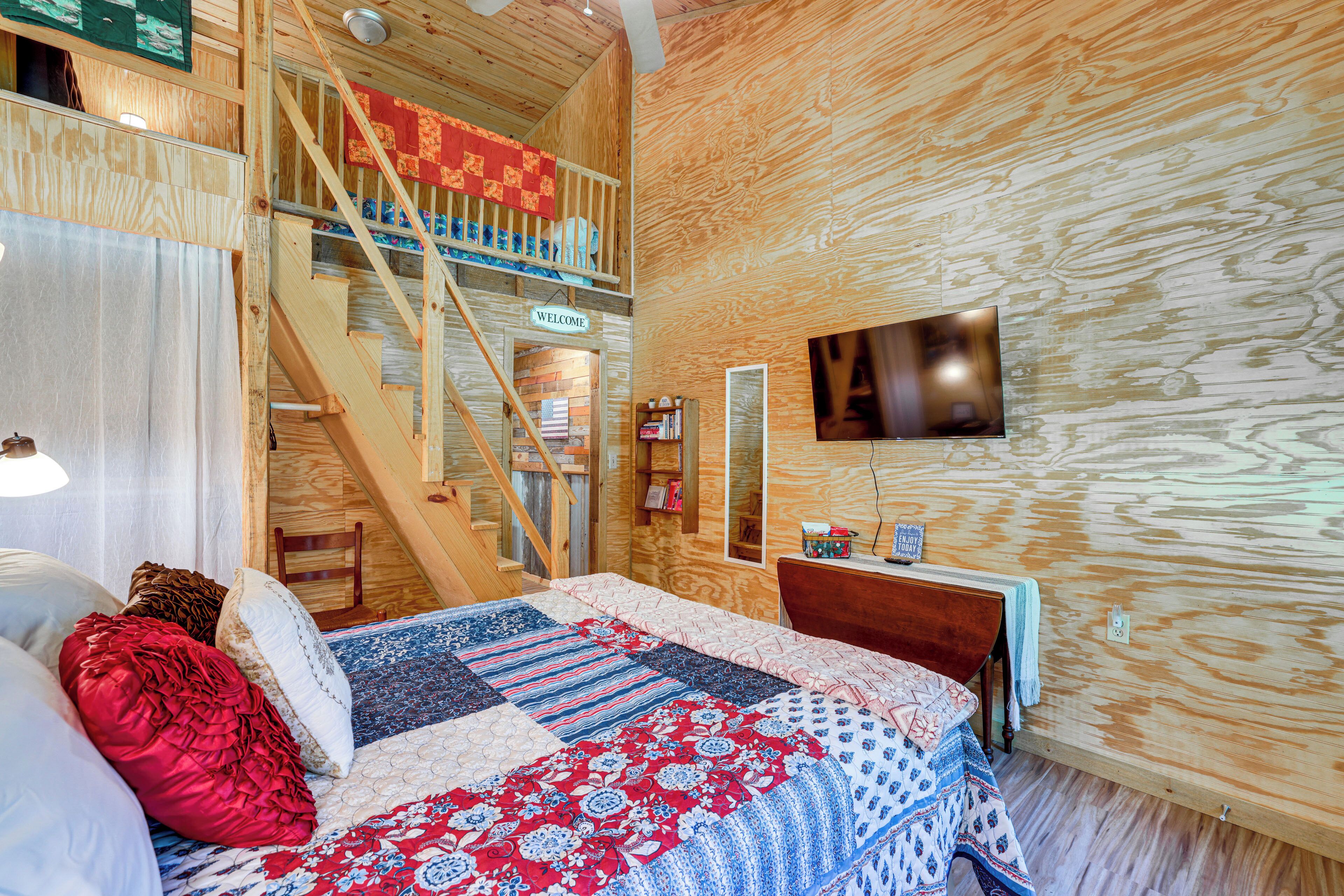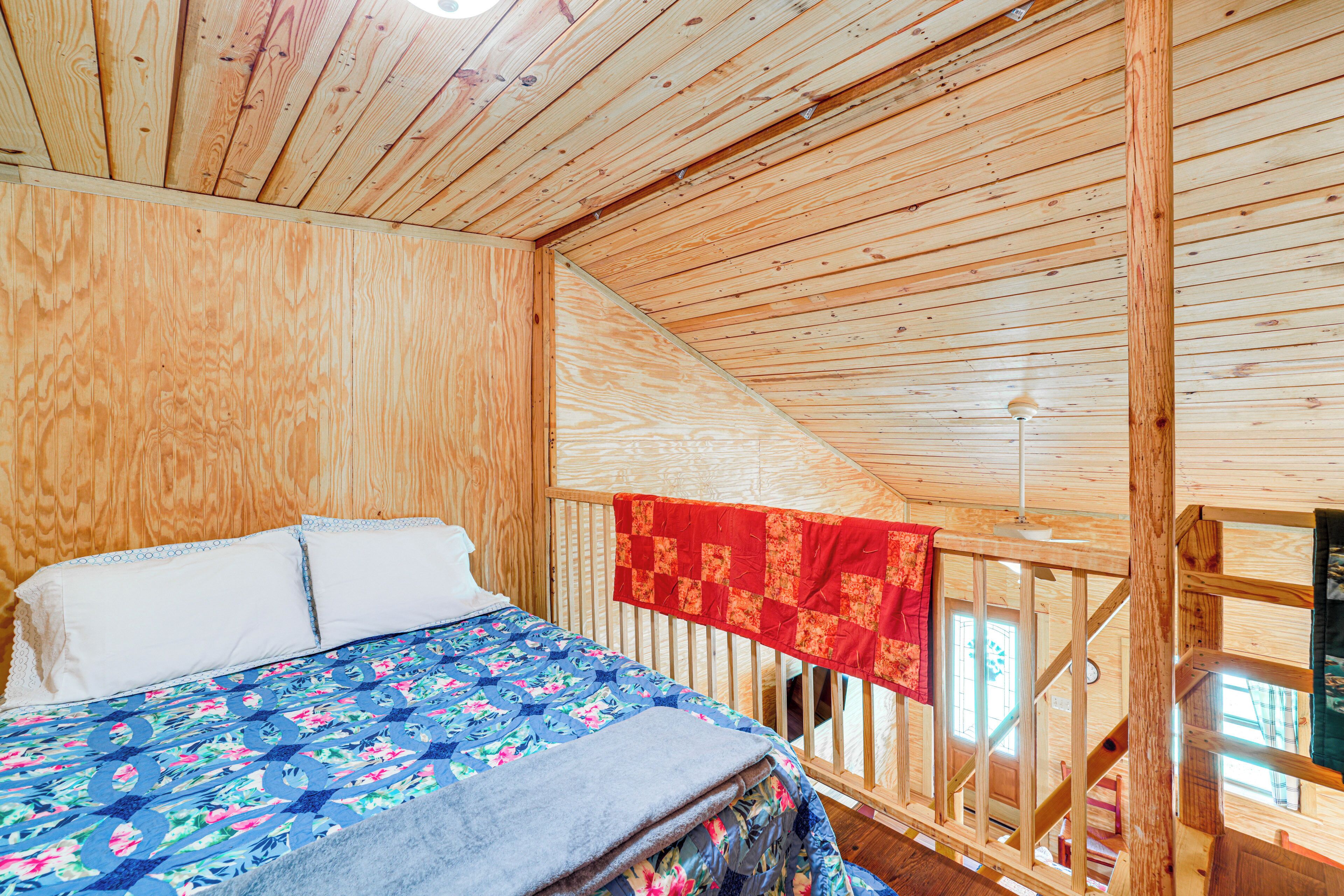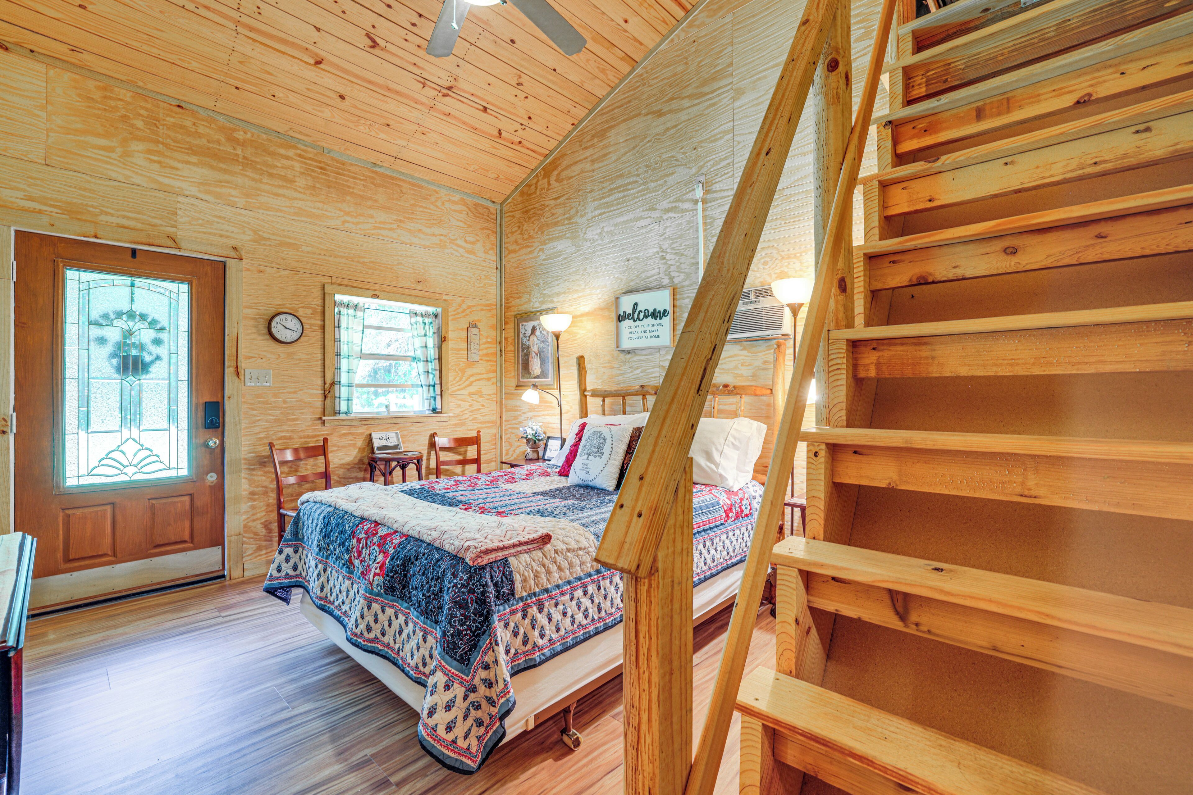 Lake Butler Cabin on 5 Acres w/ Fire Pit! Experience the ultimate countryside getaway at this tranquil 1-bath studio cabin in Lake Butler, FL! Nestled on a sprawling 5 acres with all the essentials, this vacation rental is centrally located for those seeking outdoor adventure or quality time with loved ones. When you’re not exploring the on-site walking trails, coast around Lake Butler or enjoy a relaxing soak at Ichetucknee Springs State Park. At day’s end, gather around the wood-burning fire pit for s’mores and stargazing!-- THE PROPERTY --Walking Trails On-Site | Quiet Country Setting | Private Fire Pit (Bring Your Own Wood)Studio: Queen Bed | Additional Sleeping (Loft): Queen Air Mattress, Twin Air Mattress, Pack ‘n PlayOUTDOOR LIVING: Front patio w/ outdoor seating, charcoal grillINDOOR LIVING: Smart TV, fold-out dining table, high-top seatingKITCHENETTE: Cooking basics, microwave, refrigerator, drip coffee maker (starter coffee provided), air fryer, 2 hot plates, toaster oven, dishware/flatwareGENERAL: Free WiFi/internet, linens/towels, window A/C, electric heating, complimentary toiletriesFAQ: Homeowner on-site (main house), 1 exterior security camera (facing out)ACCESSIBILITY: Small step required to enter, steep steps to loft area, 2-story studio cabinPARKING: Covered parking (2 vehicles), RV/trailer parking allowed on-site (no dumping)-- THE LOCATION --EXPLORE OUTDOORS: Lake Butler (10 miles), River Rise Preserve State Park (16 miles), Poe Springs Park (20 miles), Ichetucknee Springs State Park (21 miles), Ruth B. Kirby Gilchrist Blue Springs State Park (21 miles), Devil's Millhopper Geological State Park (22 miles), Rum Island Springs County Park (24 miles), Ginnie Springs (25 miles)GAINESVILLE (~25 miles): University of Florida, Depot Park, Florida Museum of Natural History-Exhibits, Harn Museum of Art, Butterfly Rainforest at the Florida Museum of Natural History, Ben Hill Griffin StadiumCOAST TO COAST: Jacksonville (62 miles), Ocala (68 miles), Silver Springs (71 miles), Hernando (89 miles), Tallahassee (130 miles)AIRPORT: Gainesville Regional Airport (26 miles)-- REST EASY WITH US --Evolve makes it easy to find and book properties you’ll never want to leave. You can relax knowing that our properties will always be ready for you and that we’ll answer the phone 24/7. Even better, if anything is off about your stay, we’ll make it right. You can count on our homes and our people to make you feel welcome — because we know what vacation means to you.-- POLICIES --- No smoking- No pets allowed- No events, parties, or large gatherings- Must be at least 25 years old to book- Additional fees and taxes may apply- Photo ID may be required upon check-in- NOTE: This 2-story property requires a small step to enter and steep steps to access the sleeping arrangement in the loft area- NOTE: The homeowner lives in the main house on-site, with a completely separate and private entrance- NOTE: This property sleeps 2 guests in 1 bed, with room for 5 total by using the queen air mattress and twin air mattress- NOTE: Your safety matters. This property features 1 exterior security camera located in the back of the house facing the cabin and barn entrances. It does not look into any interior spaces. The camera only records video and sound when the alarm is triggered