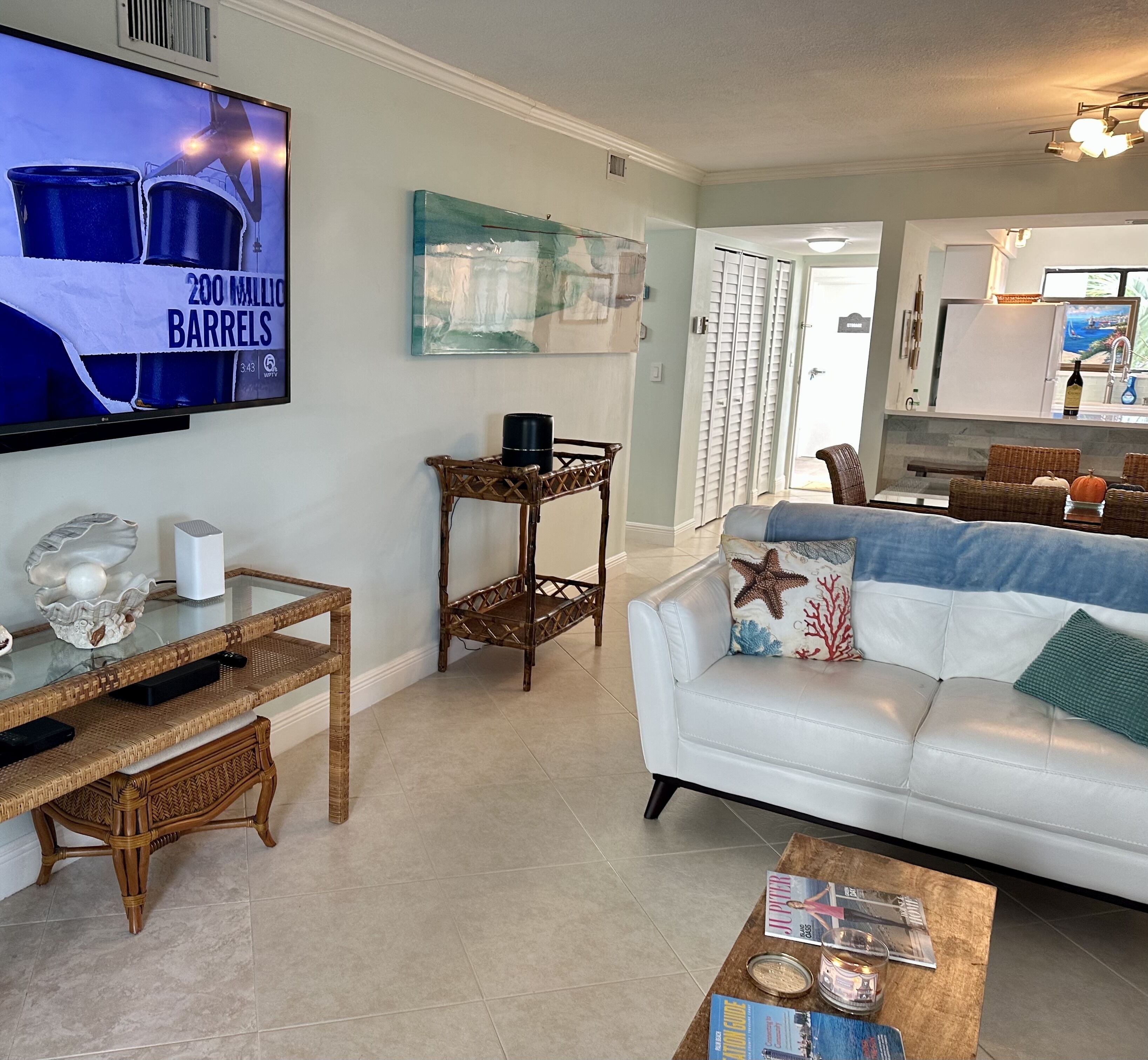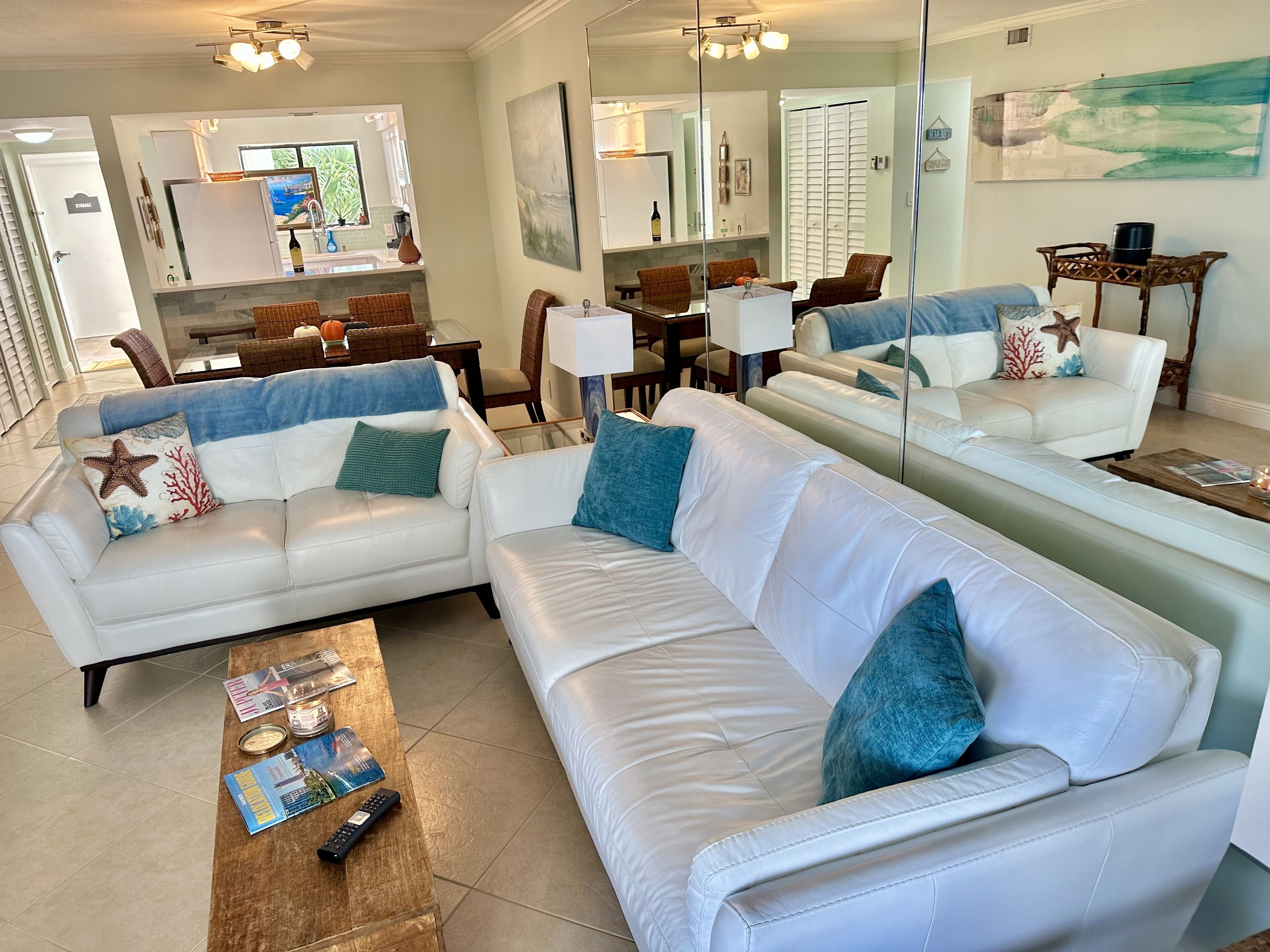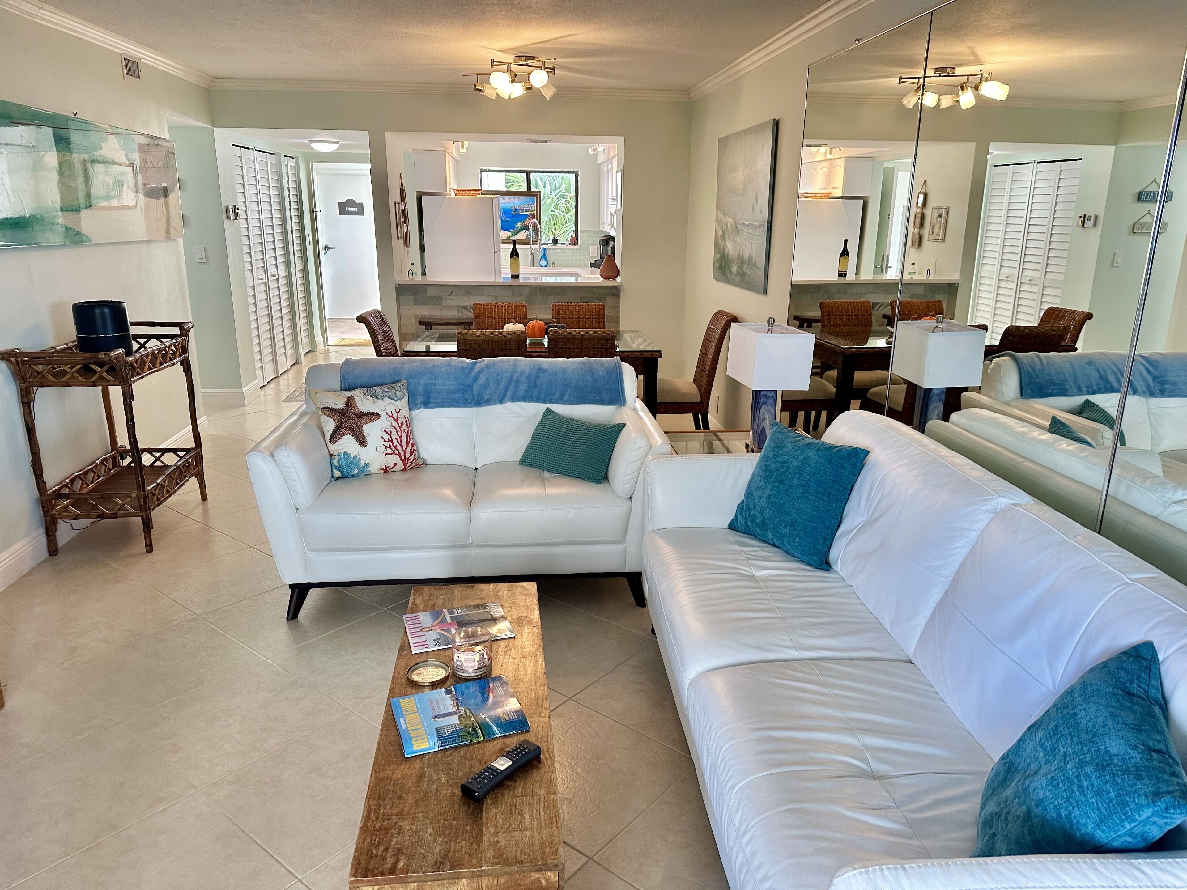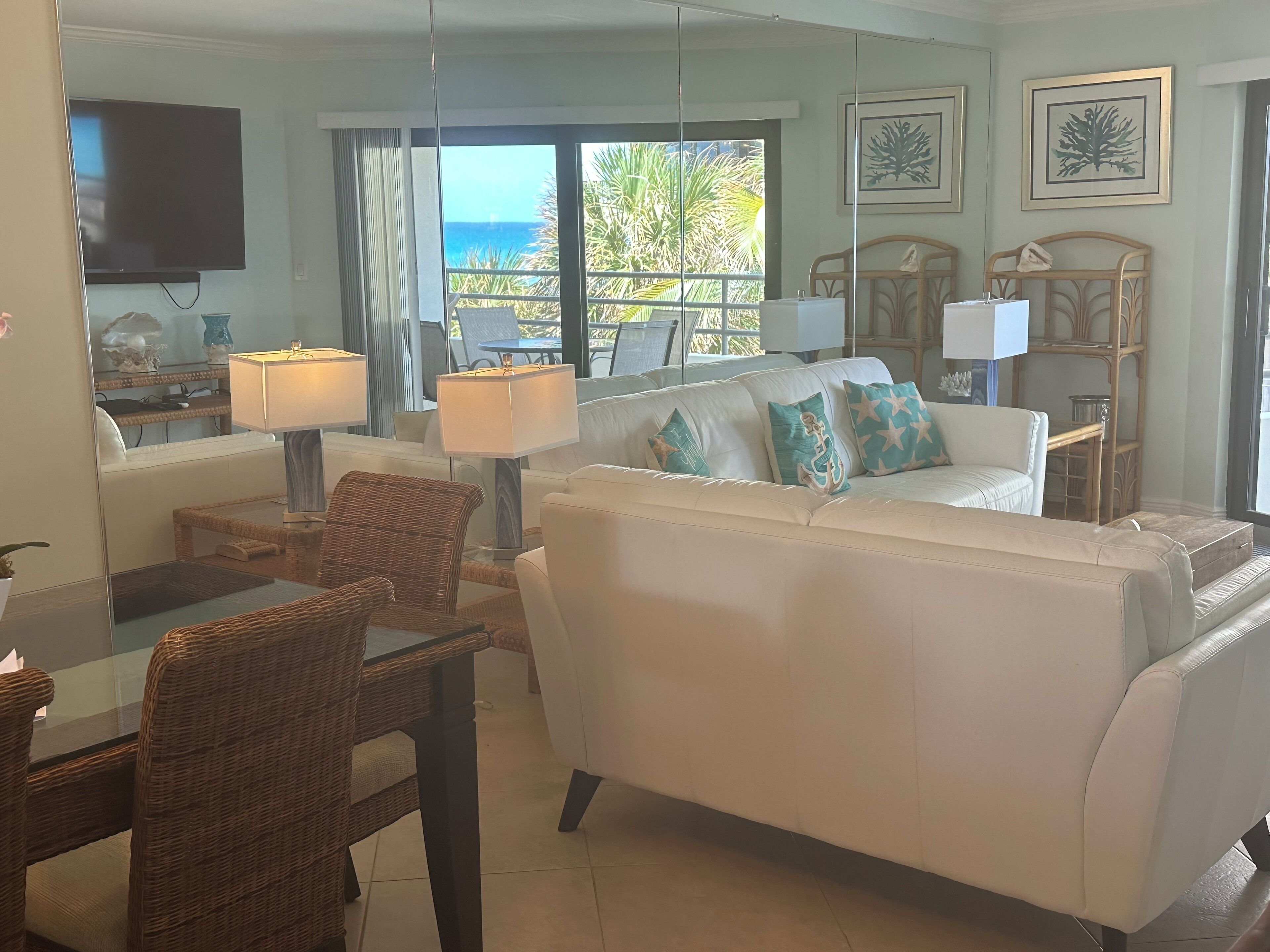Juno Beach Oceanfront Condo 2 bed 2 ba Heated pool-Hot tub - sleeps 6 - Beautiful Oceanfront condo directly on the Beach. Boutique building. Enjoy 2 bedrooms 2 baths extremely clean, renovated, condo with beautiful ocean and beach views! New sofa and loveseat, new 65”Flatscreen tv, dining seats 6 and 2 bar stools. King master suite excellent new mattresses. For every 30 day rental we provide all new linens, pillows, quilts, blankets, towels and bathmats. New Kitchen and fully equipped, brand new refrigerator with ice maker, newly painted, guest bedroom has 2 queen beds. You’ll love it here and Juno Beach has been Voted top beach in world. You can walk 24/7 on the beach, enjoy sunrise, sunsets, heated pool, hot tub, Surf, snorkel, jet ski, paddleboard, best boating, fishing and championship golf courses. plenty of parking. Walk to the famous Juno Beach Pier, collect shells, best restaurants Juno/Jupiter walk to great restaurants, shops or just relax on your private beach.. 20 min. To PBI airport, Worth Ave. We are located between Jupiter and Palm beach gardens. A few minutes either way. Our guests never want to leave.. come enjoy your vacation in the best and safest town in Florida. Excellent vacation for Families. Couples, Singles, Business trips, Friends and a Great place for healing. Text owner for any questions. Sleeps 6. Uber to PBI airport, sunset cruises, Lion country safari close, loggerhead marina, Worth Ave, Peanut Island, Singer Island, Jupiter all within minutes. Disney World 3 hours away, Miami 2 hours, Florida Keys 4-5 hours or hop a cruise to The Bahamas! Or relax hanging out on the beach! Immaculately kept. Large balcony with new glass table with 4 chairs and high top with 2 chairs. Listen and watch the waves so soothing and peaceful while enjoying your morning coffee, meals or sipping wine. Great for entertaining. Juno is so safe, ride your bikes, walk around the lake, excellent happy hours and small gym within walking distance. Come enjoy your vacation with us.. Available Seasonally, Annually or message for specials. If you book 6 months season $10k mo. We do monthly rentals also.