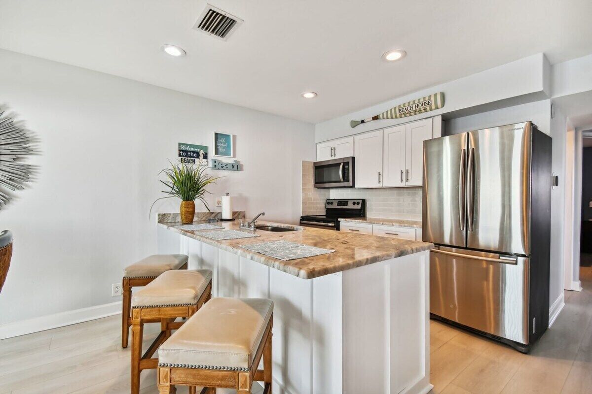 End of Summer Sale! 3BR-Oceanfront Beach Condo Summary:Situated on a rare private beach, just 12 steps between you and the sand below. This oceanfront condo offers stunning and unobstructed views of The Gulf of Mexico with the most beautiful sunsets in the world, dolphins, marine life, and all of nature's beauty from inside or out of this 3 bedroom condo. Add to this the calm Intracoastal Waterway and you can say you've finally located Paradise on Earth!The Space:Enjoy morning coffee with unobstructed views of the beautiful waters of The Gulf of Mexico. Take a deep breath and relish the peaceful start to another beautiful day in Paradise. There is so much to experience on or near the barrier islands. Perhaps instead, you'll choose to take those few steps down to the beach for a day of pure relaxation and rays. Don't miss our sunsets, considered among the best anywhere. Enjoy your favorite cocktail as dolphins frolic and feast just off shore right in front of your eyes!The unit features one King bedroom, one Queen bedroom, and one Twin Trundle bedroom [sleeps 2], fully remodeled and stocked kitchen, dining area, table, bar seating, living room with large sliding glass doors overlooking the ocean. Full bathroom, updated furnishings throughout, covered balcony [with shared walkway], very large ground-level deck, on-site laundry facilities, and so much more! Offering a casual feel, this is the ideal space for up to six guests. Please note all TVs are equipped with ROKU or similar streaming services. Locals channels subject to availability.Enjoy luxury linens, towels, and toiletries for your stay along with an initial supply of kitchen paper and detergents to get you settled. Coin-operated laundry is available on-site for guest use. Several charcoal and gas grills are available for your convenience. Enjoy the exclusive use reserved parking on site, and free street parking for your convenience. An ample supply of beach chairs, umbrellas, coolers, and even children's toys are available for your use.Be it a staycation or world vacation you're embarking on, this condo brings new meaning to staying "on the beach". The unbeatable, breathtaking views will be the backdrop for memories created to last a lifetime.Guest Access:Guests have exclusive use of this unit, on-site and easy access to reserved parking, along with shared access to the balcony, walkway, laundry room [2 washers / 2 dryers], beach supplies room, gas grills, and all other common areas.The Neighborhood:On arrival to the unit you will find a reference and welcome guide which highlights key property information and rules of the road. Additionally, you will find many local favorites and recommendations on dining and nightlife options.Indian Rocks Beach is a quaint and welcoming community centrally located between Clearwater & St. Pete. One of the most popular of the barrier islands along this stretch, Indian Rocks provides countless dining, nightlife, and a host of other entertainment options await you. You're within walking distance to several dining and shopping options just north on Gulf Boulevard, including: Villa Gallace [Italian +++++], Crabby Bills Seafood [++++], VIP Mexican [++++], souvenir shops, CVS, and many others. Just approximately two miles south, enjoy the entire region's best culinary experience available at famed Salt Rock Grill, where the seafood menu is built daily and depends entirely on the haul of their private fishing fleet at the close of each fishing day. Around town, John's Pass, our county's busiest tourist attraction is 6 miles south on Gulf Boulevard. Restaurants of all flavors and price ranges line Gulf Blvd. in both directions between St. Pete Beach to the south [20 min.] and Clearwater Beach to the north [20 min.]. Additional attractions within 30 minutes include: The Clearwater Aquarium, featuring Winter the Dolphin from the acclaimed Dolphin Tales, the beautiful Dali Museum and revitalized, vibrant downtown St. Petersburg and new Pier, and home of the Tampa Bay Rays Tropicana Field just to name a few. Just a 35-45 minute drive will take you to Tampa, where you'll want to make a stop in Ybor City, the CruisePort, International Plaza, Busch Gardens Amusement Park, Lowry Zoo, and countless other points of interest. Even a quick diversion to Disney World and all Orlando has to offer are just an hour east of Tampa.Getting Around:Getting around is simple, with around-the-clock rideshare availability, and our very own “Jolly Trolley" offering bus service every 30 minutes at all points between Clearwater Beach and St. Pete Beach!Other Things to Note:On the Rocks #10 is strictly non-smoking. Evidence of smoking inside or outside a unit will result in assessment of a $500 deep cleaning fee. There is a designated smoking area on the SE corner of the complex by the street. Must be 21 years of age or older with valid credit card to book, and valid ID is required at check-in. Self check-in is available 24 hrs. a day. Please be respectful of the guests before and after you by adhering to published check-in time of 4:00 p.m. and check-out time of 10:00 a.m. NO PARTIAL REFUNDS FOR EARLY CHECK-OUTS. We will never charge a "resort" or management fee of any type. Total price of your stay includes cleaning and all applicable taxes. Please note the insurance damage waiver, if purchased, is for accidental breakage or loss of items inside the unit only. Intentional or negligent actions will not be covered. Negligent, intentional, or fees such as those for excessively soiled or missing linens and towels from the unit, excessive cleaning charges, smoking, pet, and over-stay charges are not covered by the waiver and will be charged against the credit card on file used for this transaction. Guest authorizes us to charge this card in the event any of the above charges are assessed.Interaction with Guests:Help is just a phone call away 24X7X365. Details included with your check-in information.